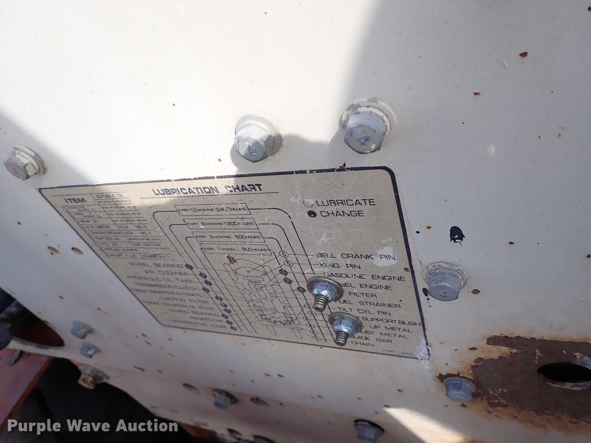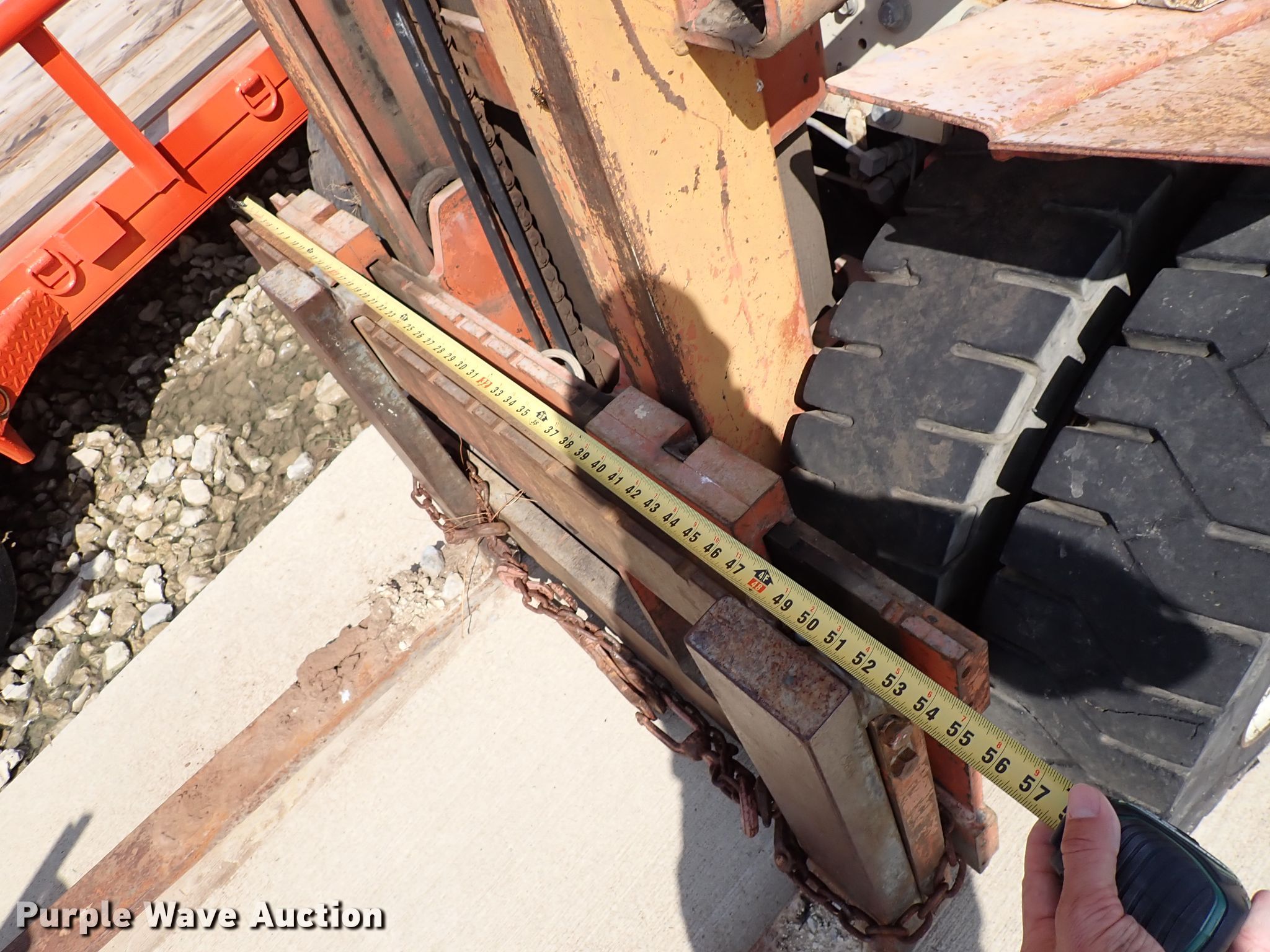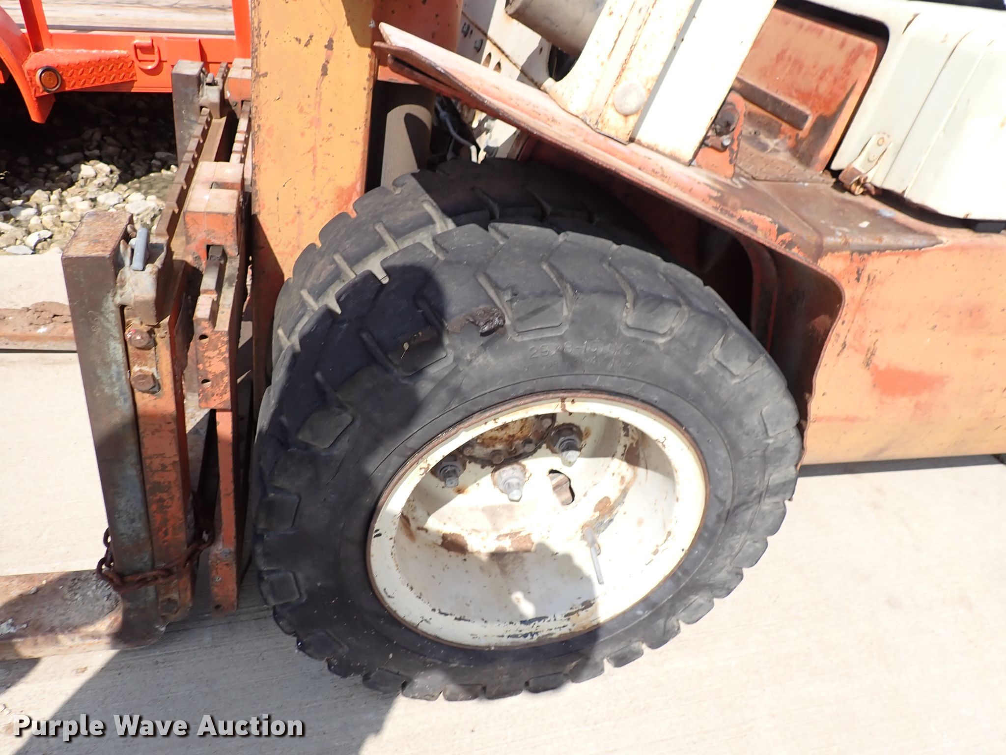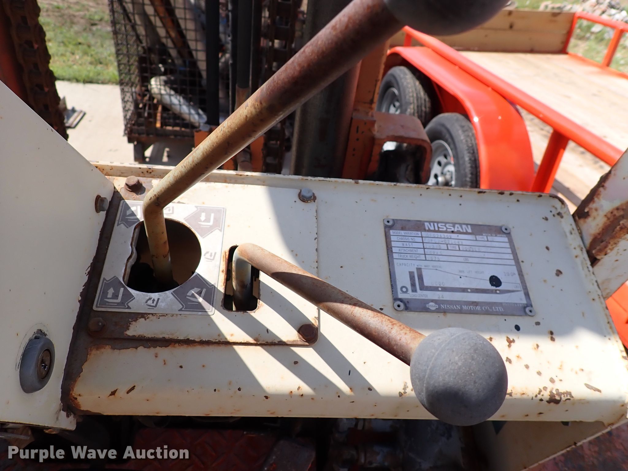 Nissan 6000 forklift. 2,257 hours on meter, Serial: PGF02-021088. Engine Nissan, Cylinders: 4, Fuel type: Gas. Transmission Powershift. Operators station OROPS. Operational Maximum lift capacity: 6,000 lbs, Maximum lift height: 130", Mast tilt, Fork length: 48". Tires Front: 29x8-15, Rear: 6.50x10. Notes Transmission issues. Mayer Services, LLC. 831 E Industrial St. Goddard, KS 67052