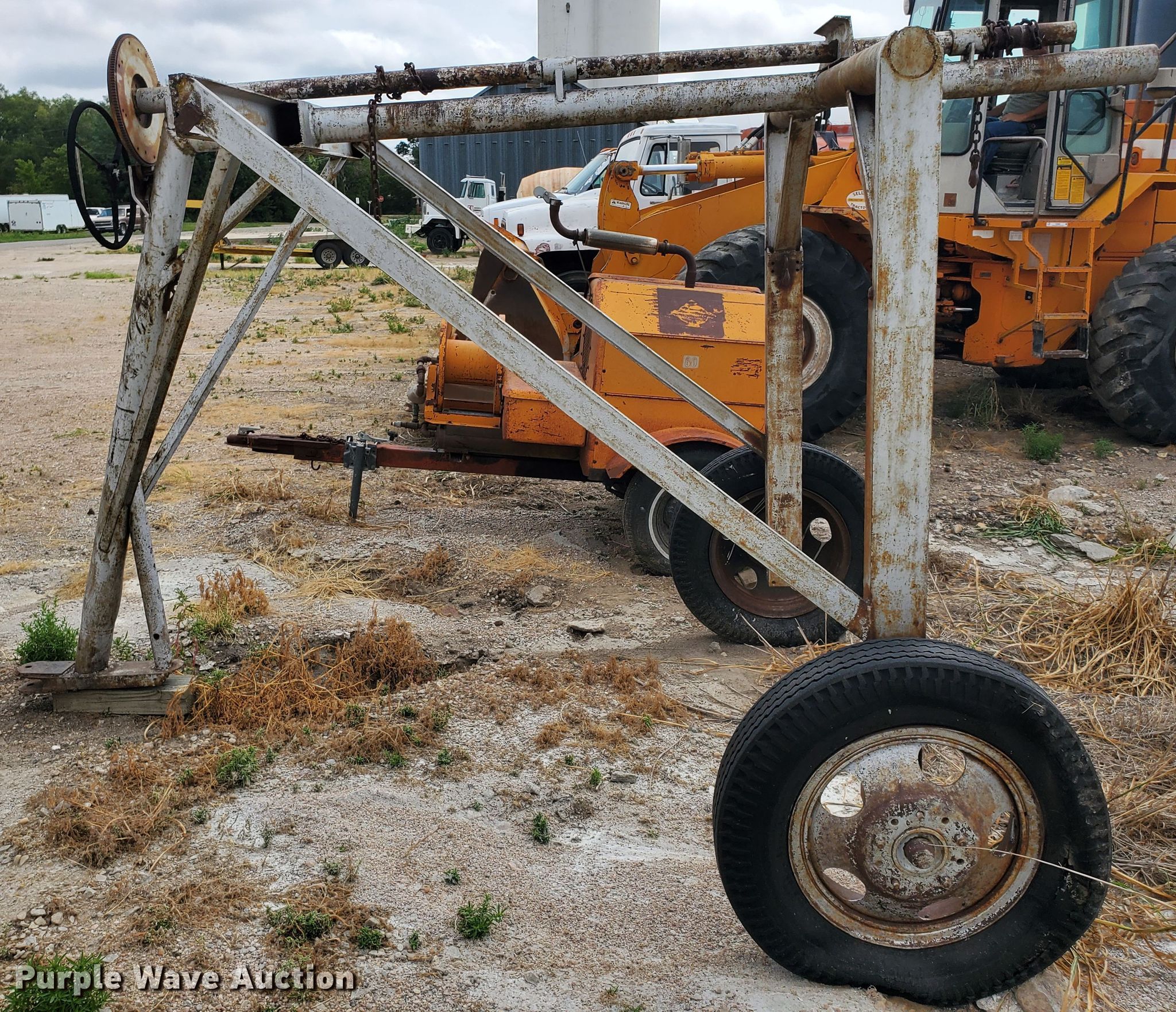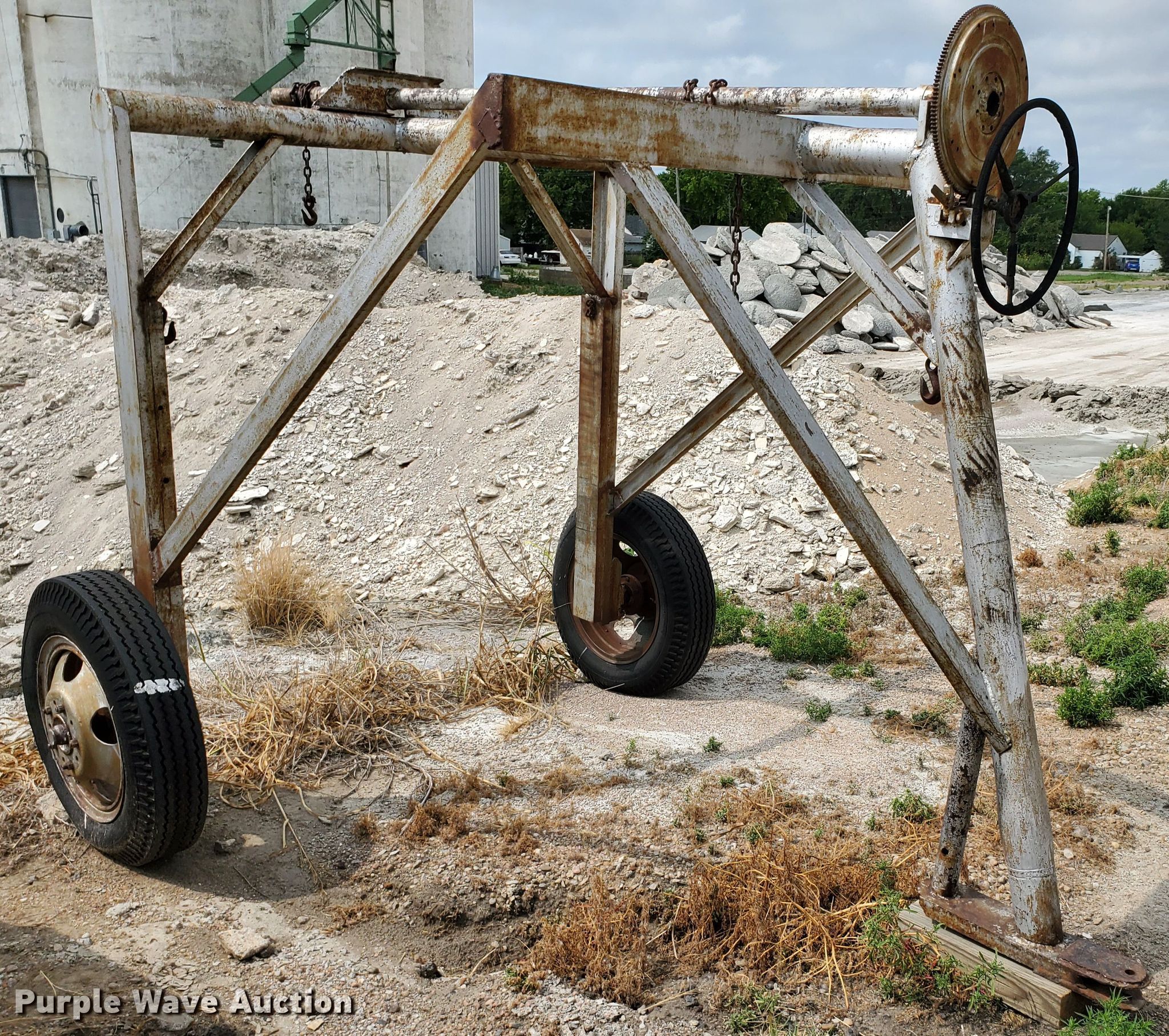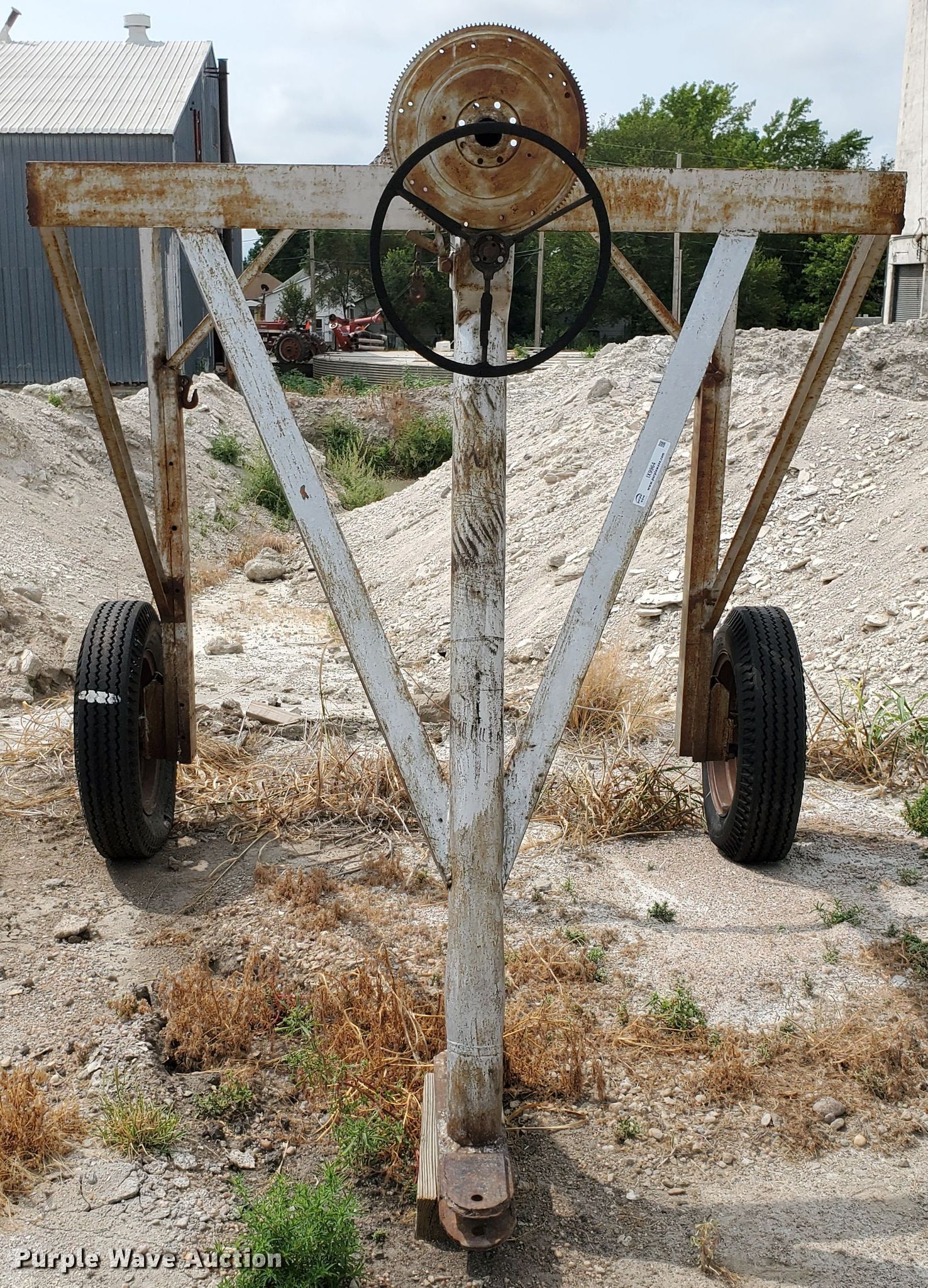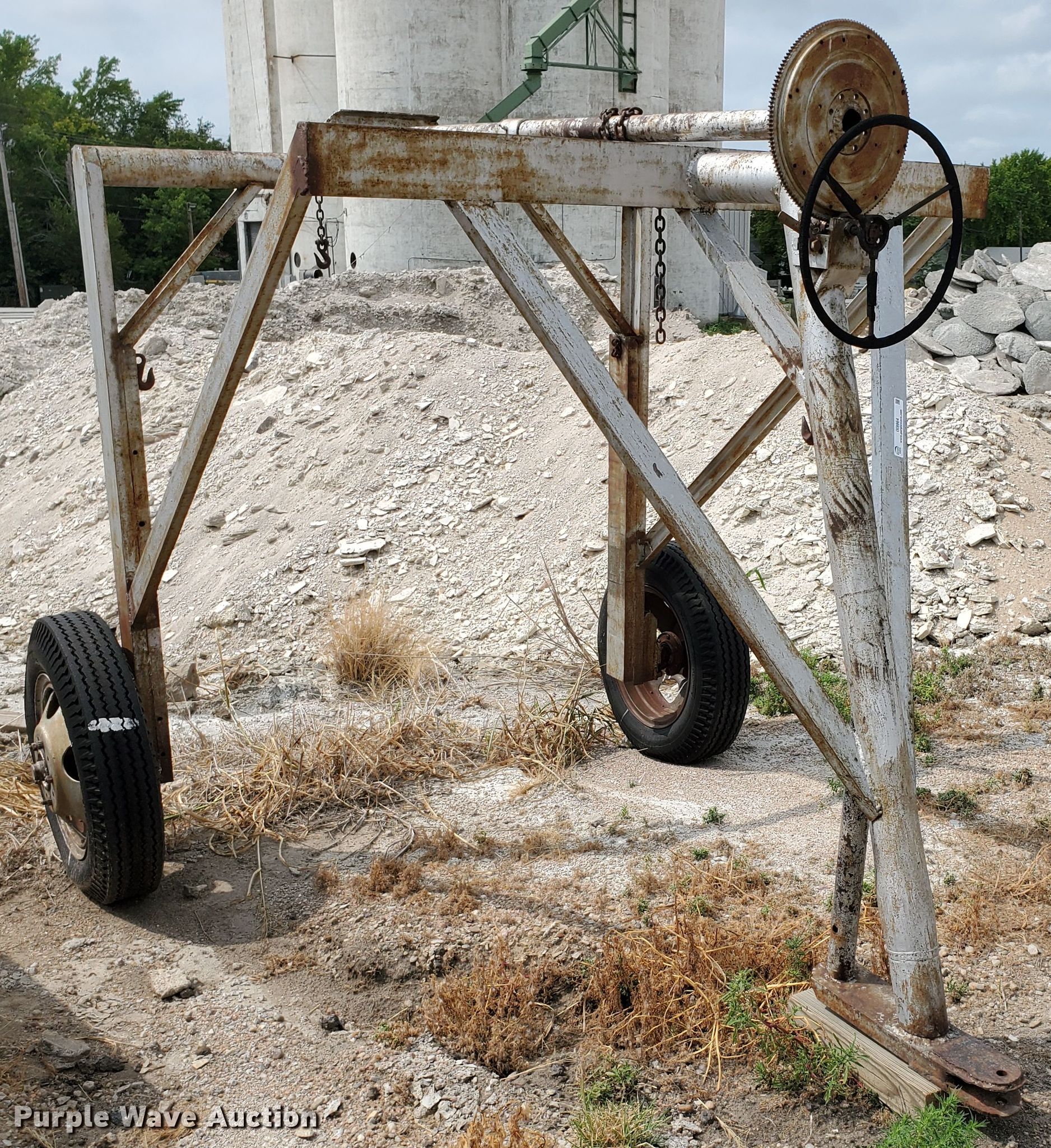 Purple Wave is selling a used Tools in Kansas. This item is a Shop built tank carrier with the following: 12'L x 92"W, Manual crank hoist, 7.50-20 tires