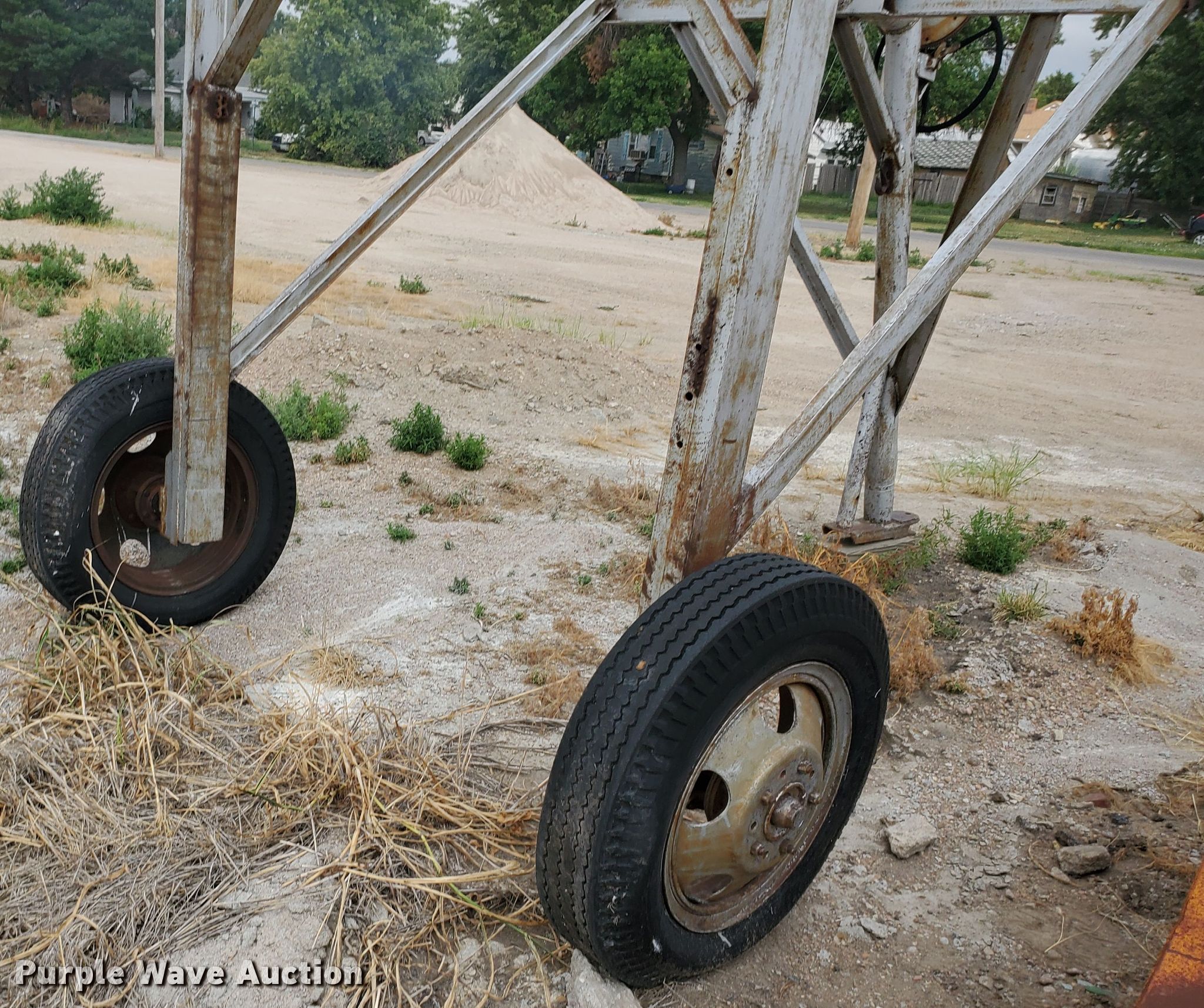 Shop built tank carrier. 12'L x 92"W, Manual crank hoist, 7.50-20 tires. PRO-CON, Inc. 206 N Jones Ave. Norton, KS 67654
