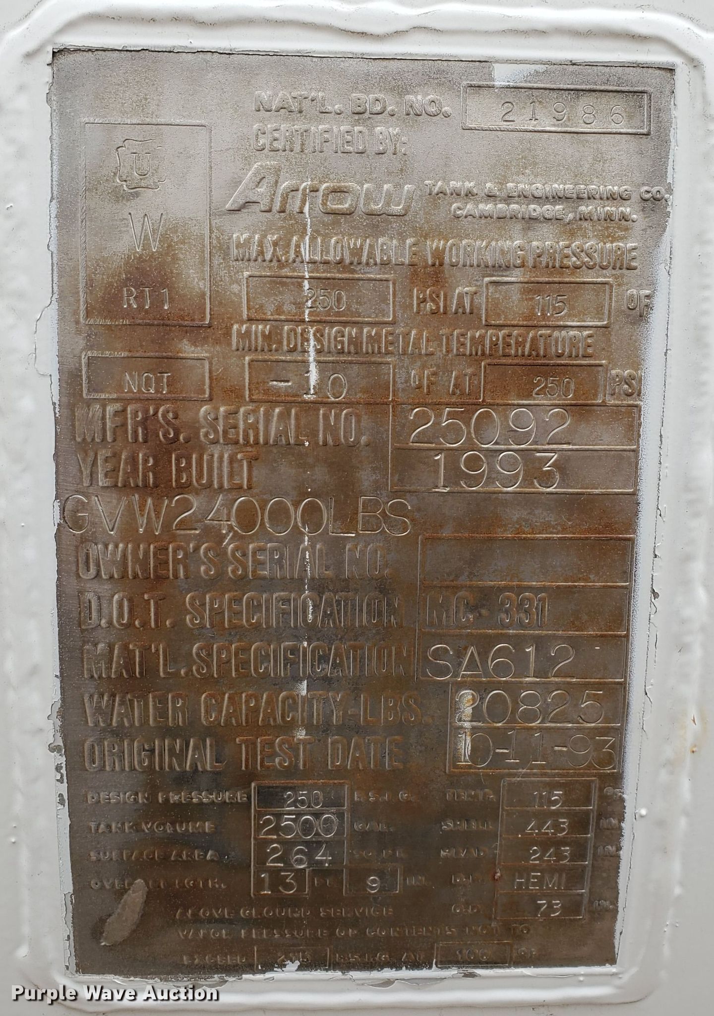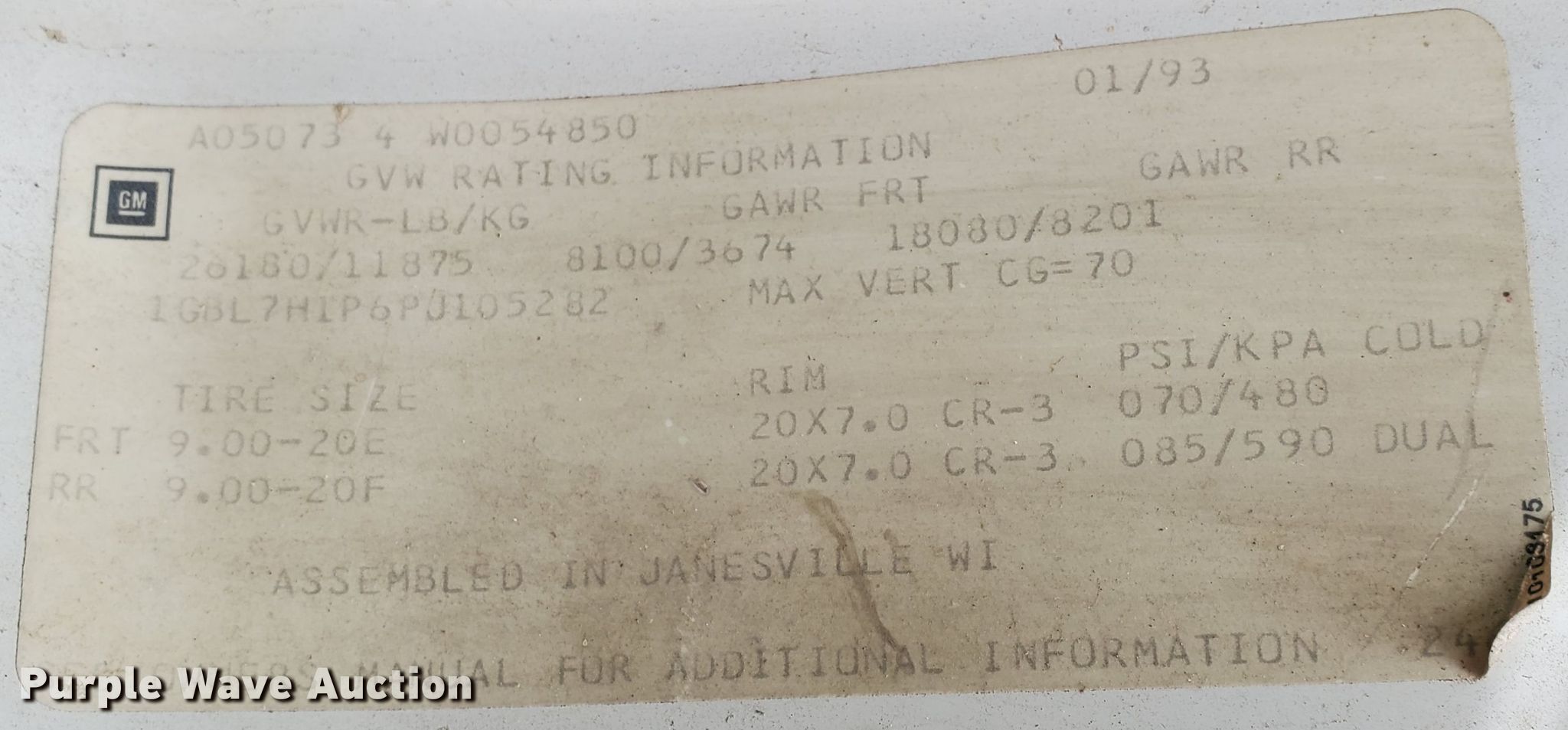 1993 Chevrolet Kodiak propane truck. 153,018 miles on odometer. Engine GM, Displacement: 6.0L, Cylinders: 8, Fuel type: LPG. Transmission Manual, Speed: 5, plus 2. Chassis Axles: Single, Suspension: Spring, Brakes: Air, PTO, GVWR: 26,180 lbs. Interior Heat. Operational Bed / tank Arrow, Serial: 25092, Capacity: 2,500 gallons, Fuel Compartments: 1, Hose reels: 1, Metered pumps: 1 Make: Neptune.. Tires Size: 11R22.5. Notes Dash warning indicator: Brake, Dash warning indicator: Check gauges. Kansas title. 1GBL7H1P6PJ105282. PRO-CON, Inc. 206 N Jones Ave. Norton, KS 67654