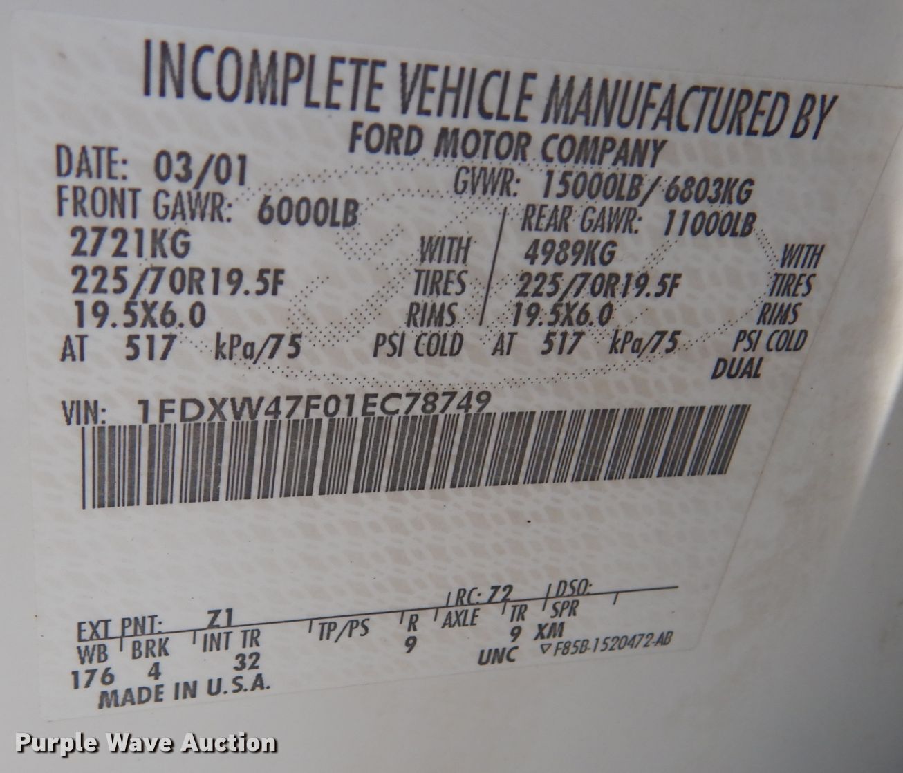2001 Ford F450 Super Duty XLT utility / service truck. 199,496 miles on odometer. Engine Displacement: 7.3L V8 OHV 16V, Cylinders: 8, Fuel type: Diesel. Transmission Automatic, Four wheel drive. Interior AC, Heat, Seat: Power driver, Power windows, Power locks, Cruise control. Operational Utility bed Stahl, 9' L x 94" W, Warn winch 12,000 lbs capacity.. Tires Size: 225/75R19.5. California title. Seller is a Missouri licensed motor vehicle dealer. Title will be assigned and distributed by the dealer. Please contact the seller for distribution questions. Title distribution may be delayed up to 30 days from verification of funds. 1FDXW47F01EC78749. Fruendly Auto Source, Inc.. 2177 W Outer Hwy 61. Moscow Mills, MO 63362