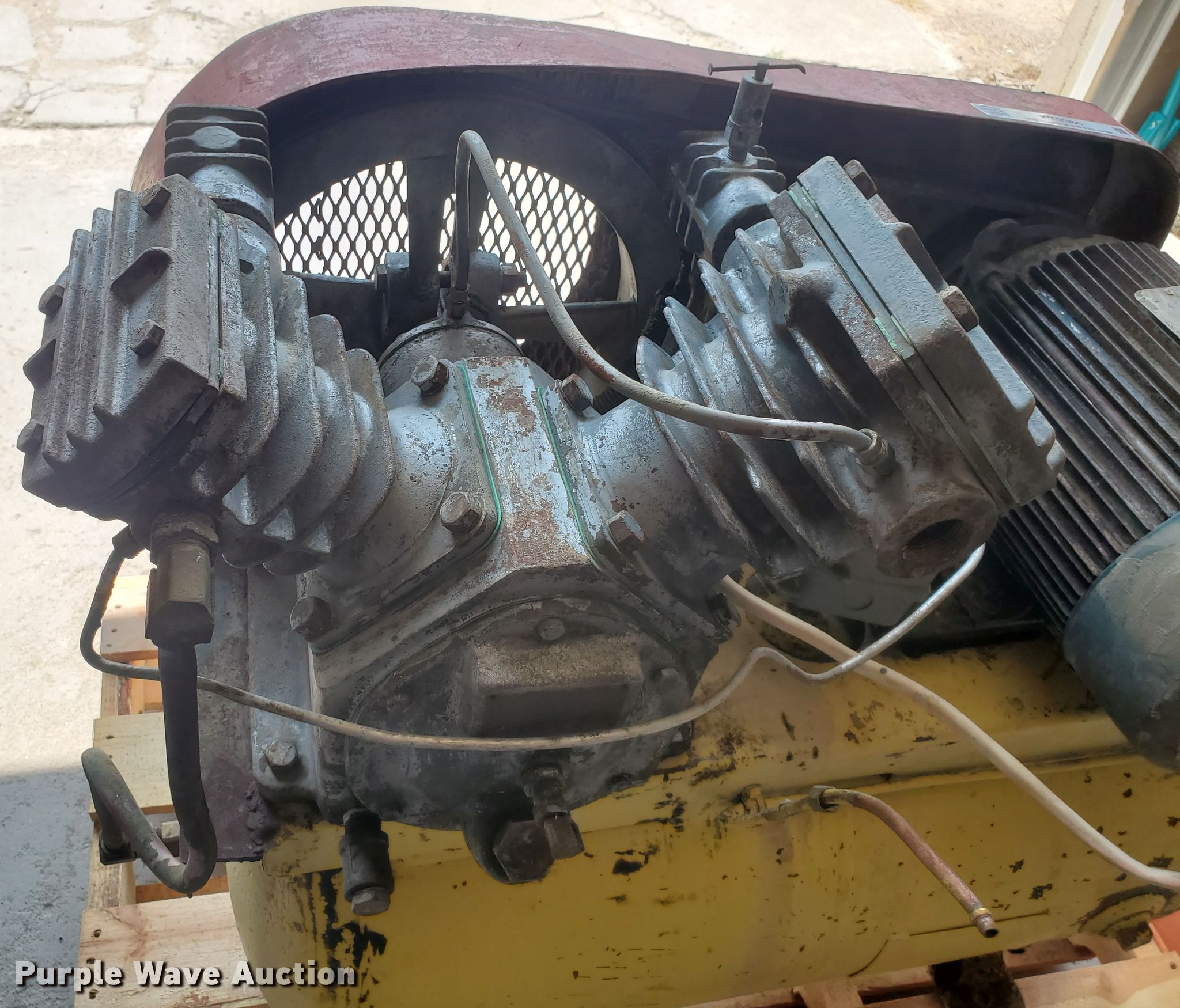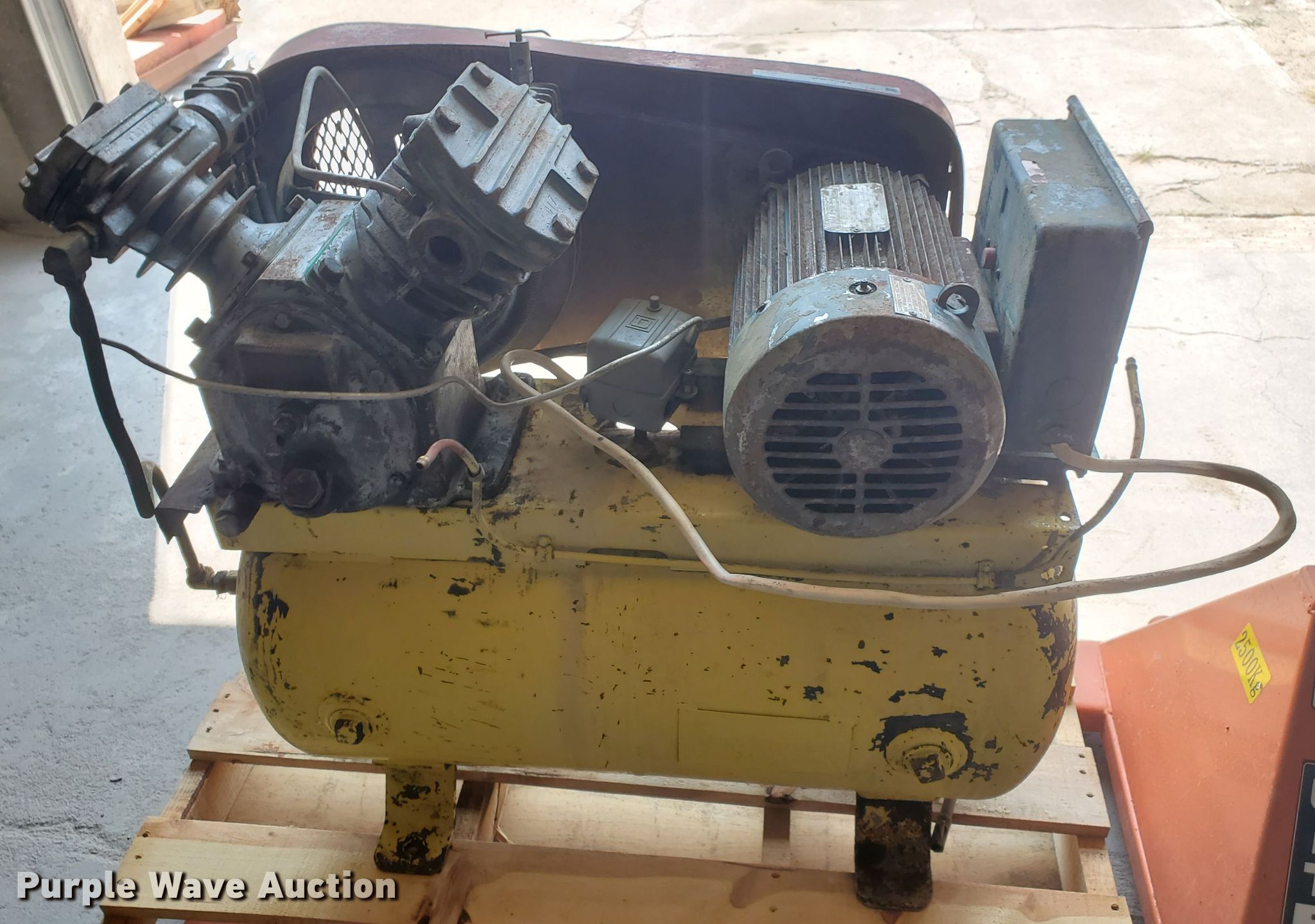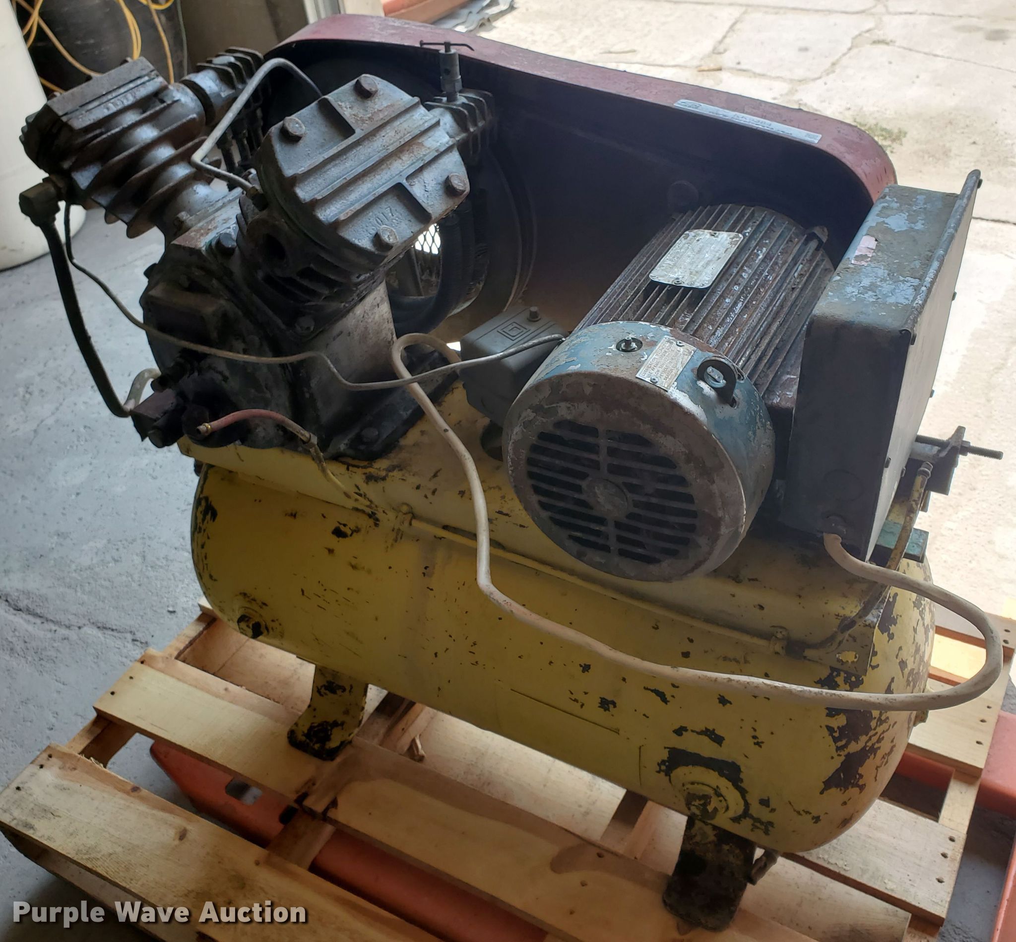 Purple Wave is selling a used Air Compressor in Kansas. This item is a Pressed Steel Company air compressor with the following: HP: 5, Volts: 230, Phase: Single