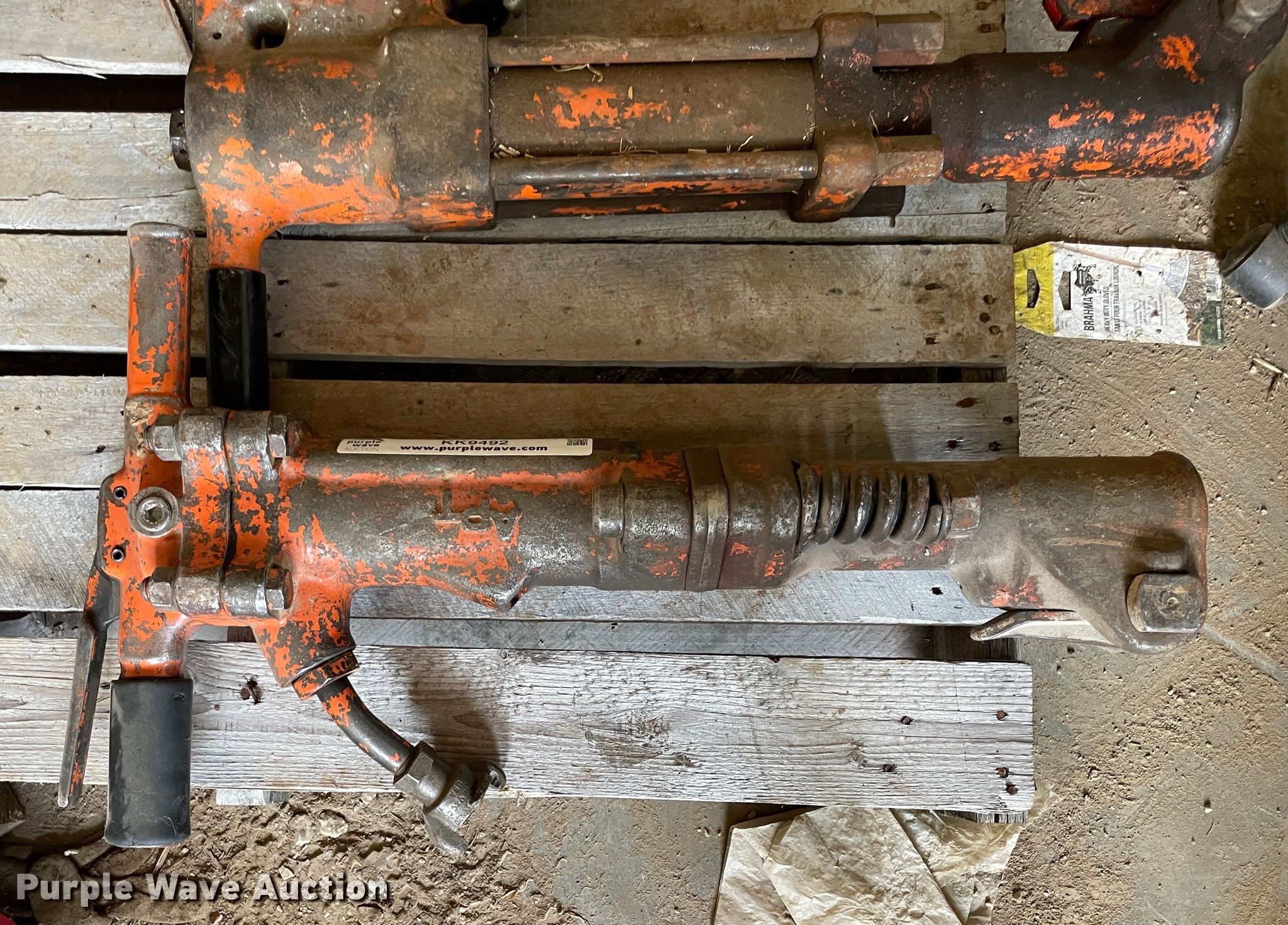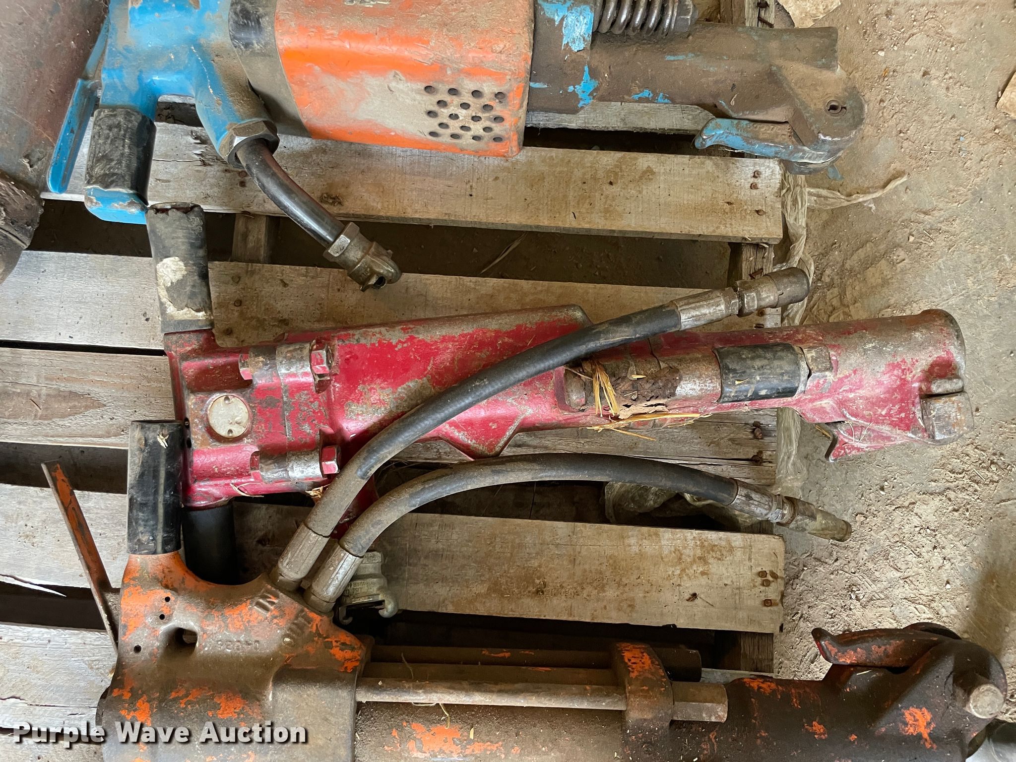 Purple Wave is selling a used Tools in Missouri. This item is a Tools with the following: (4) jack hammers, (3) pneumatic, Hydraulic, Pneumatic ground tamper