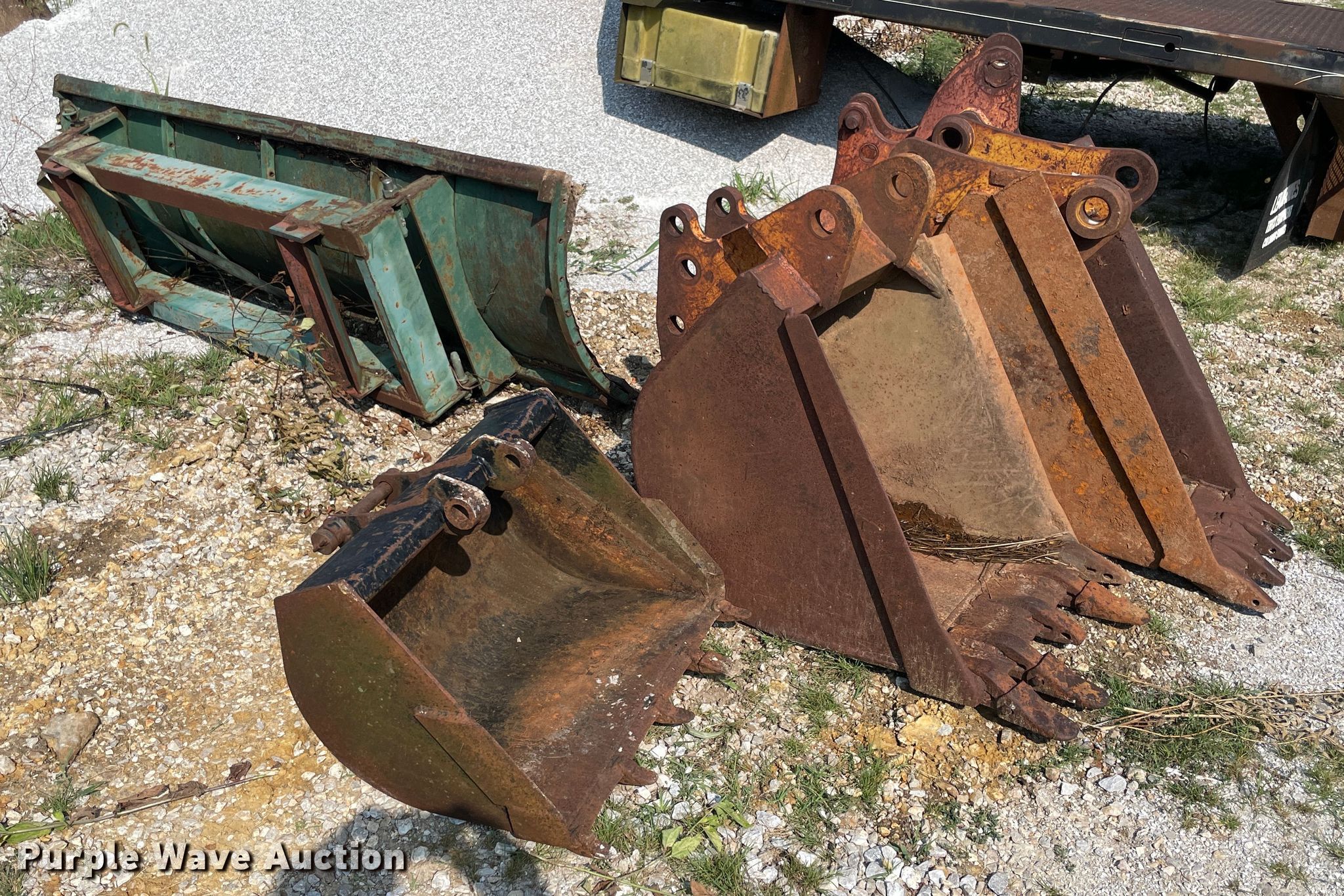 Purple Wave is selling a used Excavator Attach. in Missouri. This item is a (4) excavator buckets with the following: 16"W, Teeth: 4, 21"W, Teeth: 4, 24"W, Teeth: 5, 28"W, Teeth: 5