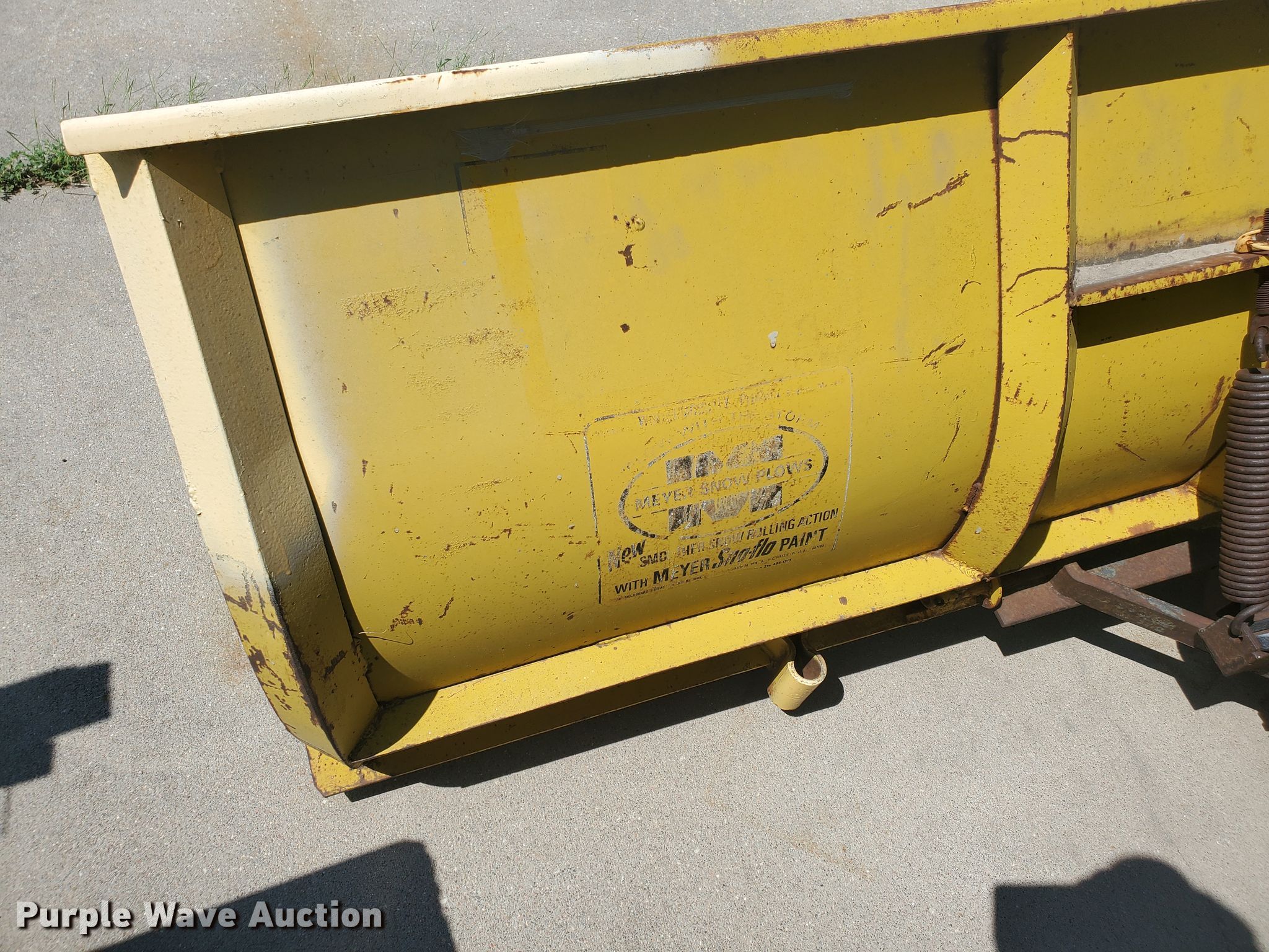 Purple Wave is selling a used Ag Tractor Loader or Attach. in Kansas. This item is a Meyer 10'W snow plow with the following: Hitch: Three point