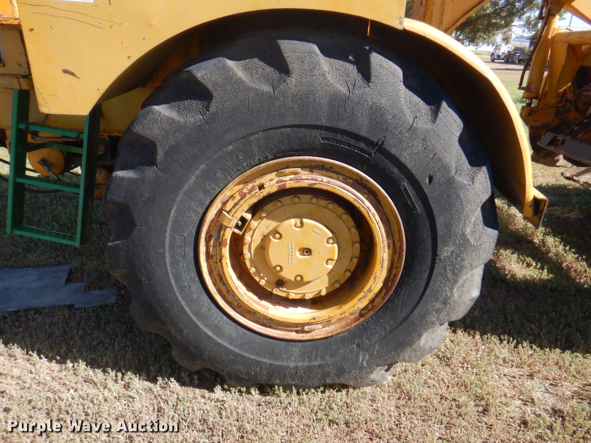 1975 International 412 elevating scraper. 2,842 hours on meter Hours may vary, unit still in use, Serial: 5420003J015458. Engine Cylinders: 6, Fuel type: Diesel. Transmission Powershift, 4F - 1R. Chassis Brakes: Air. Operators station Enclosed cab, Heat. Operational Bowl capacity: 11 cu.yd., Elevator reverse, Hydraulic lift, Scraper controls: Lever controls No. of controls: 3. Tires Size: 23.5-25. Tribune, KS 67879