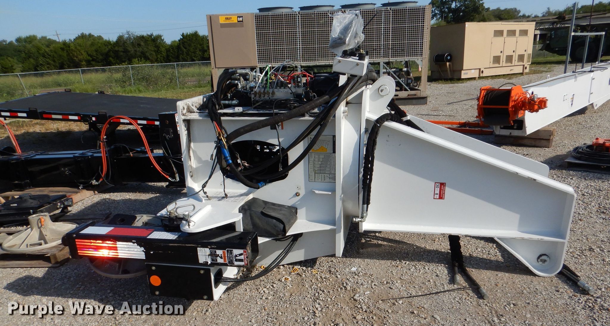 Purple Wave is selling a used Truck Mounted Crane in Kansas. This item is a 2018 Altec AC28-103B O/D crane with the following: Serial: 1018EH0321, Boom length: 103', Braden winch, Capacity: 56,000 lbs, McKissik crane block, Capacity: 30 ton, Dual operator stations, Altec flatbed, 24'L x 8', Structural support section, 29"L x 40"W, (2) Buyers toolboxes, 24" x 18" x 18", (2) Buyers toolboxes, 48" x 18" x 18", Power inverter, Manuals, Generators not included