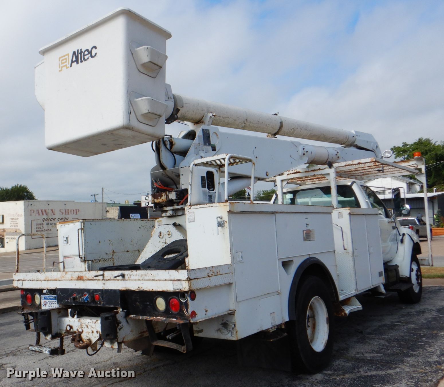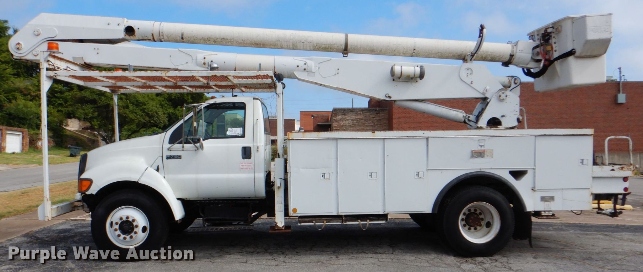 Purple Wave is selling a used Bucket Truck in Oklahoma. This item is a 2004 Ford F750 Super Duty XL bucket truck with the following: 92,930 miles on odometer