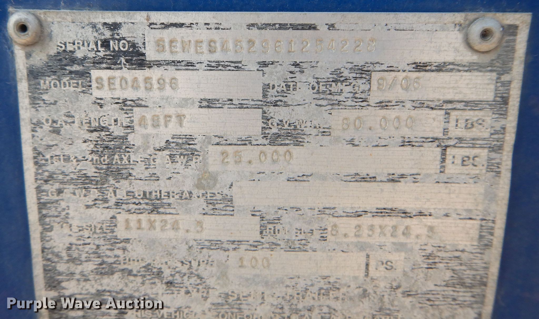 2006 Steco SE045 ejection trailer. Dimensions. Overall: 45' L x 102" W, Side height: 8'. Chassis Landing gear: Dual, Suspension: Spring over walking beam, Axles: Tandem, GVWR: 80,000 lbs. Tires Size: 11R24.5. Kansas title. Title distribution may be delayed up to 14 days from verification of funds. 5EWES452961254228. State Tractor. 4101 Powell Dr. Shawnee, KS 66226