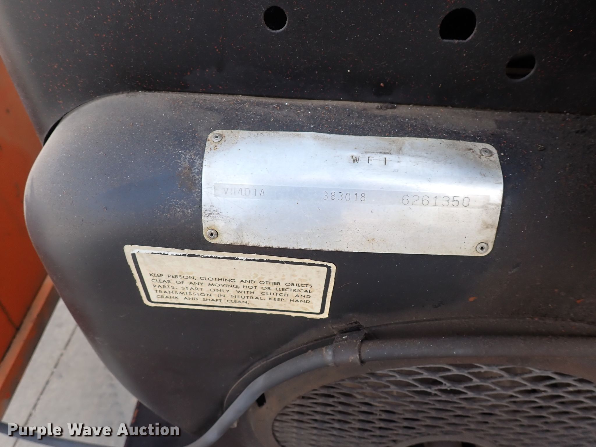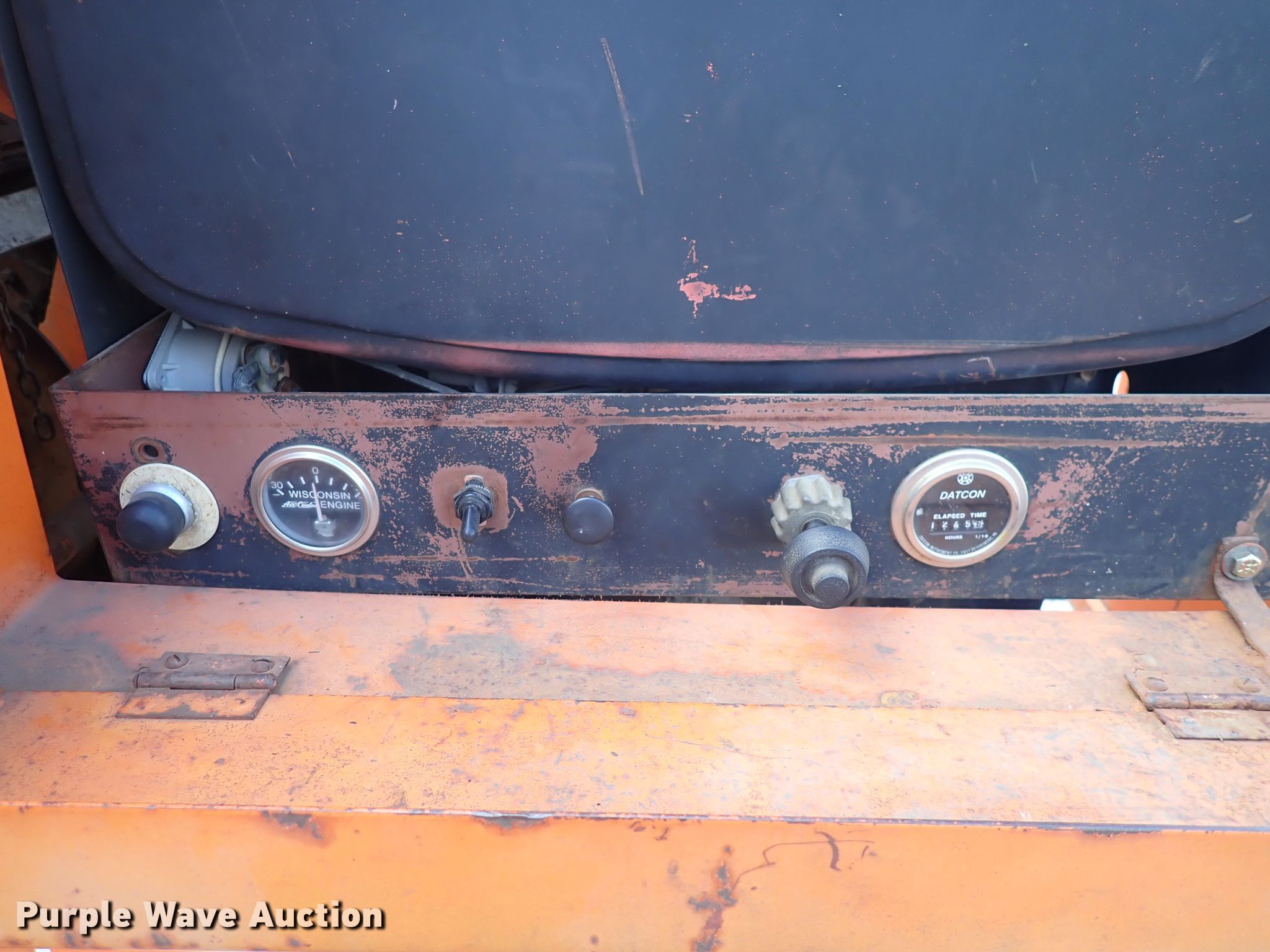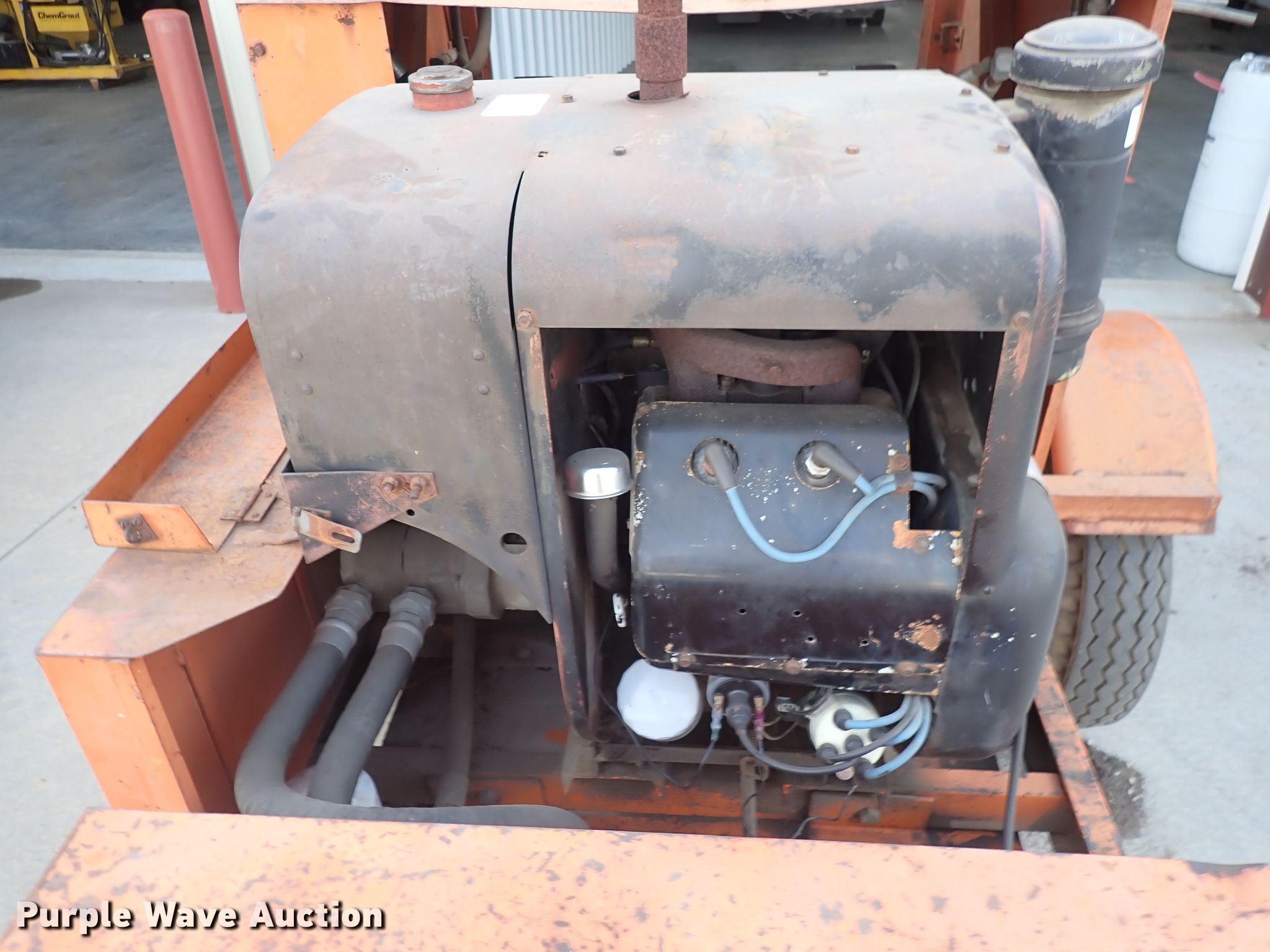 Pull-in bucket machine. 1,245 hours on meter, Serial: 6261350. Dimensions 115" x 60". Engine Wisconsin, Cylinders: 4, Fuel type: Gas. Operational Winch. Chassis Hitch: Pintle, Suspension: Spring. Tires 7.00-15. Notes No cable. This is worksite support equipment and will not come with a title. Transfer of ownership documentation will be a bill of sale. 6261350. Mayer Services, LLC. 831 E Industrial St. Goddard, KS 67052