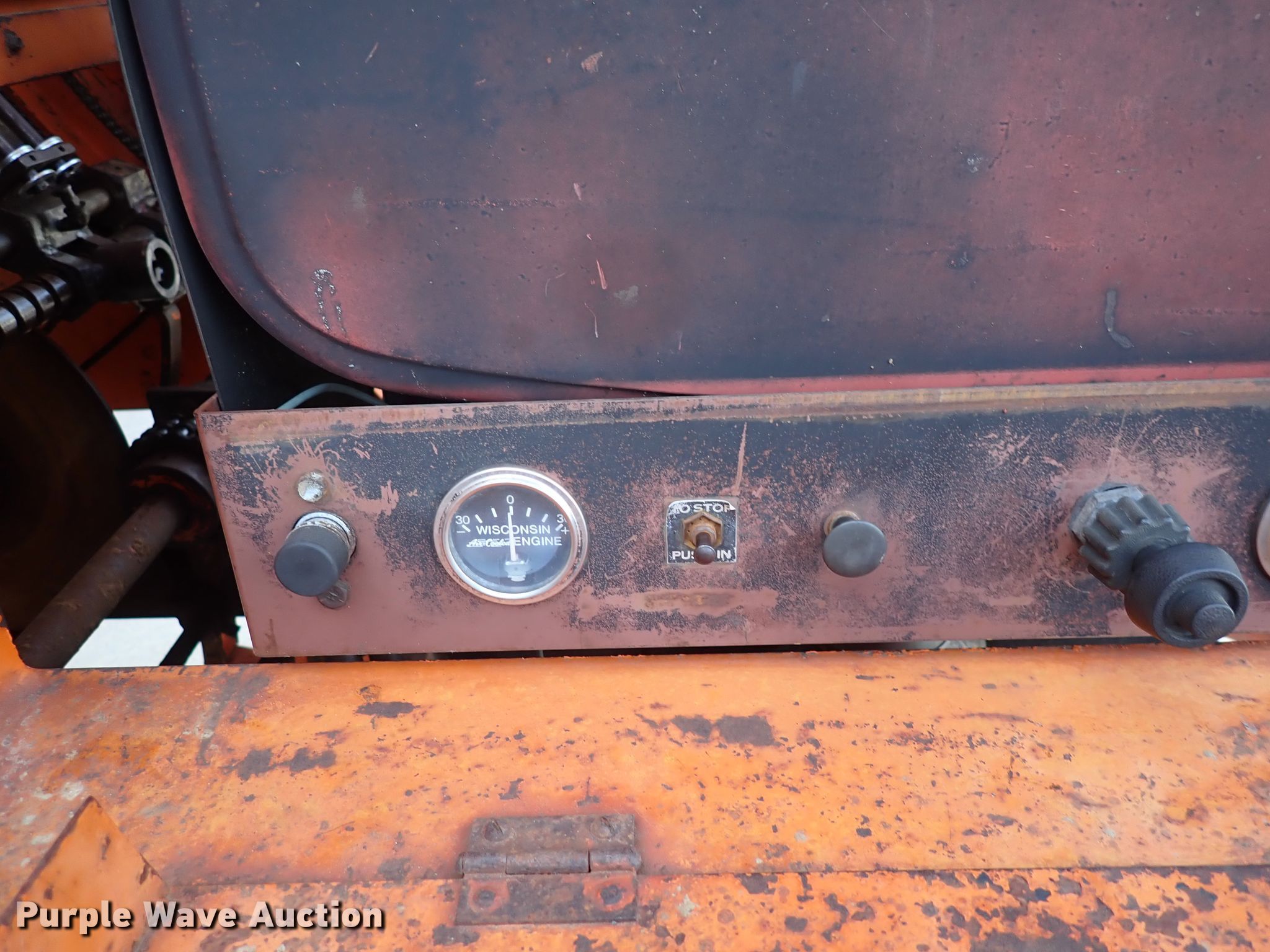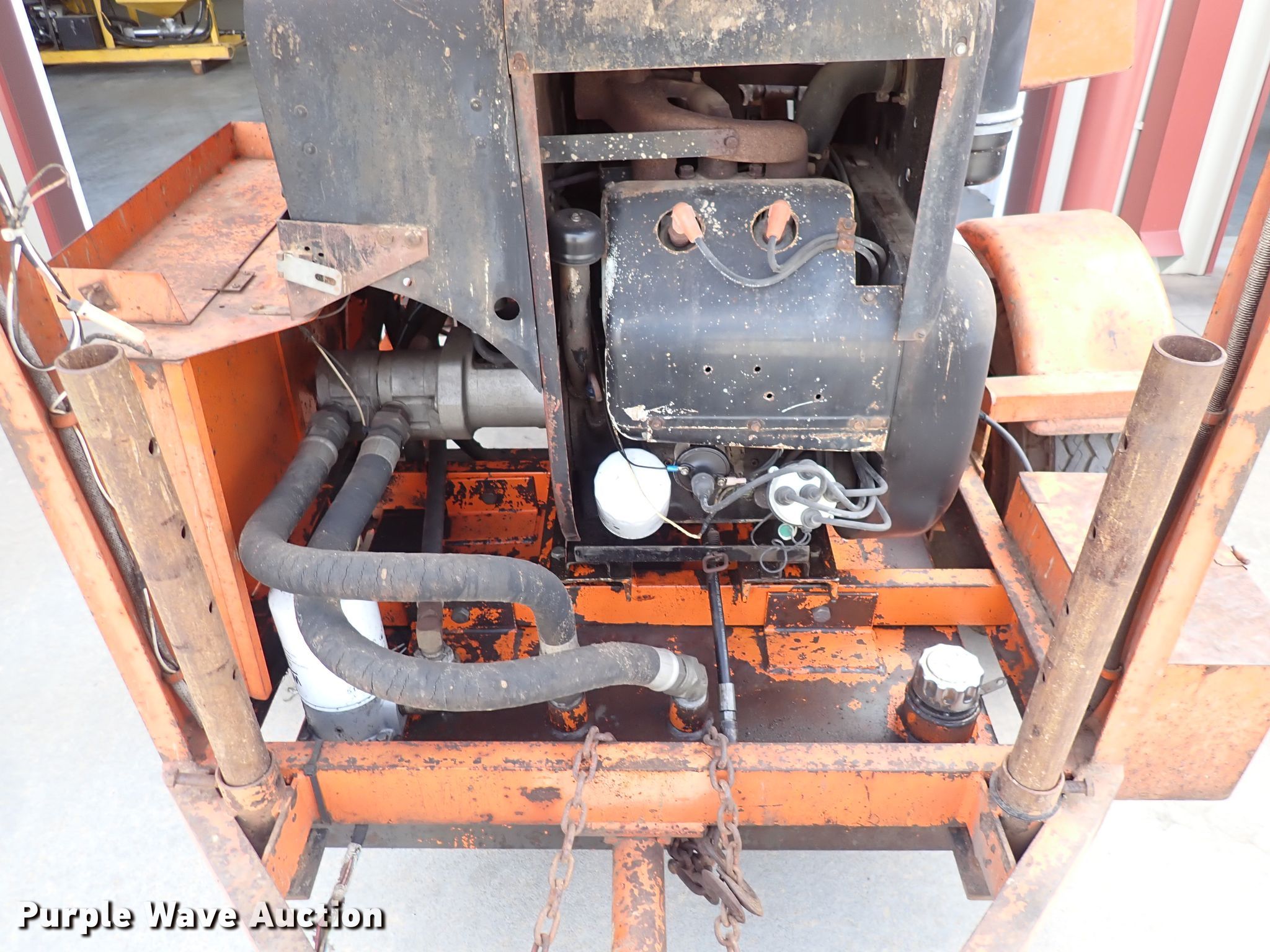 Pull-in bucket machine. Serial: 6261356. Dimensions 115" x 60". Engine Wisconsin VH4D1A, Cylinders: 4, Fuel type: Gas. Operational Winch. Chassis Hitch: Pintle, Suspension: Spring. Tires 7.00-15. Notes No cable. This is worksite support equipment and will not come with a title. Transfer of ownership documentation will be a bill of sale. 6261356. Mayer Services, LLC. 831 E Industrial St. Goddard, KS 67052