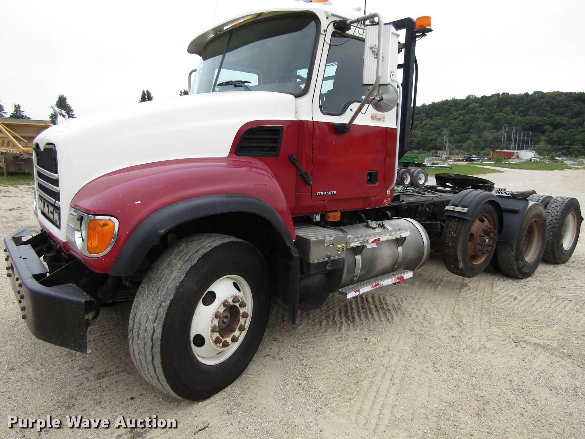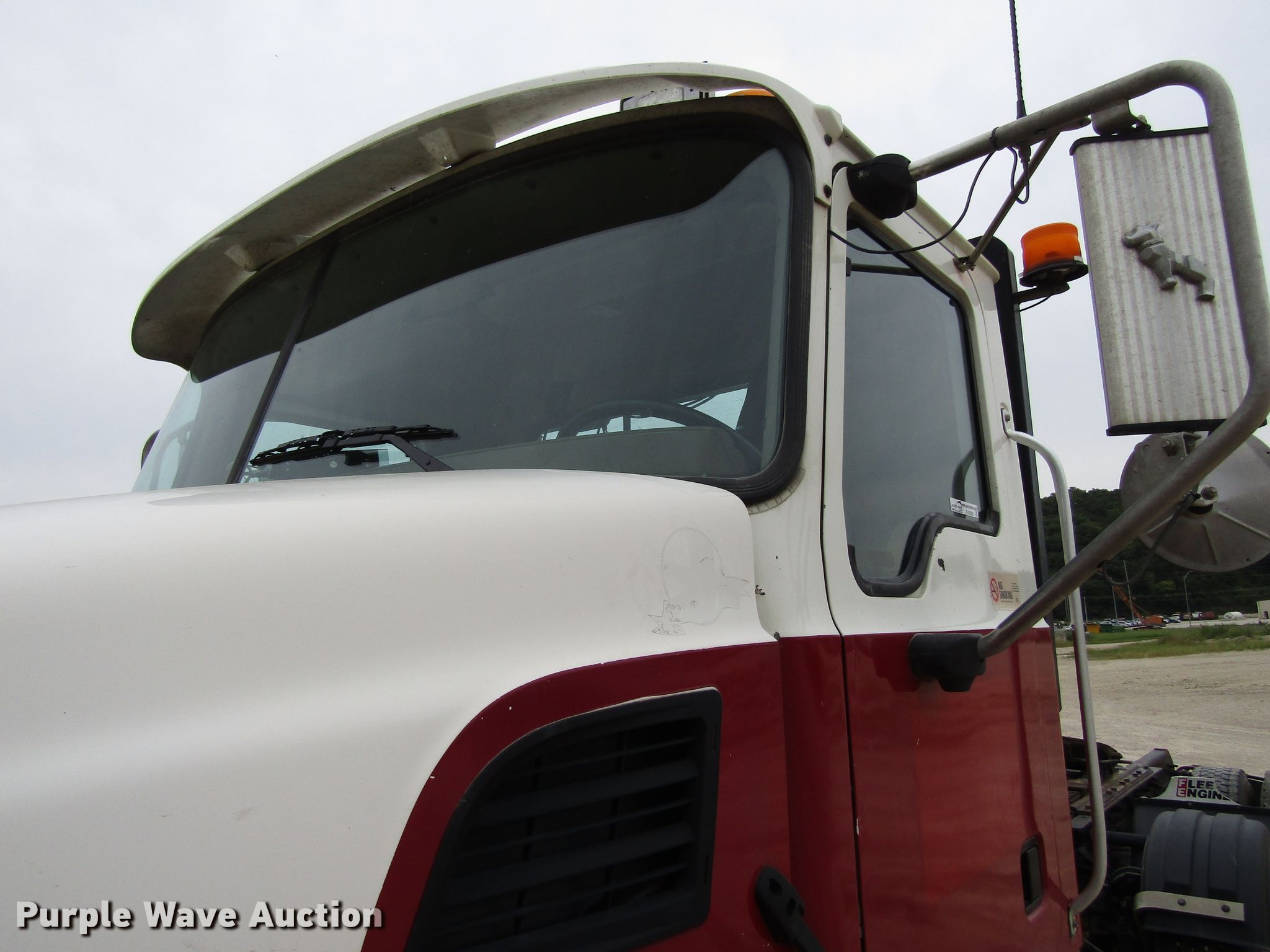 2005 Mack CV713 semi truck. 933,272 miles on odometer, Engine hours: 29,780. Engine Mack AMI, Displacement: 12.0L, Cylinders: 6, Fuel type: Diesel. Transmission Maxitorque ES, Manual, Speed: 18. Chassis Axles: Triple, Pusher axle, Differential lock: Inter-axle, Suspension: Air, Brakes: Air, PTO, Truck chassis: 16', GVWR: 62,000 lbs, Wheelbase: 208". Interior AC, Heat, Heated mirrors, Cruise control. Operational Deck plate: Steel, Fifth wheel type: Sliding, Fuel tank: Dual. Tires Front: 315/80R22.5, Rear: 11R22.5, Pusher 255/70R22.5. Notes Hydraulic tank not included. Iowa title. 1M1AG10YX5M029470. Bruening Rock Products Inc.. 900 Montgomery St. Decorah, IA 52101