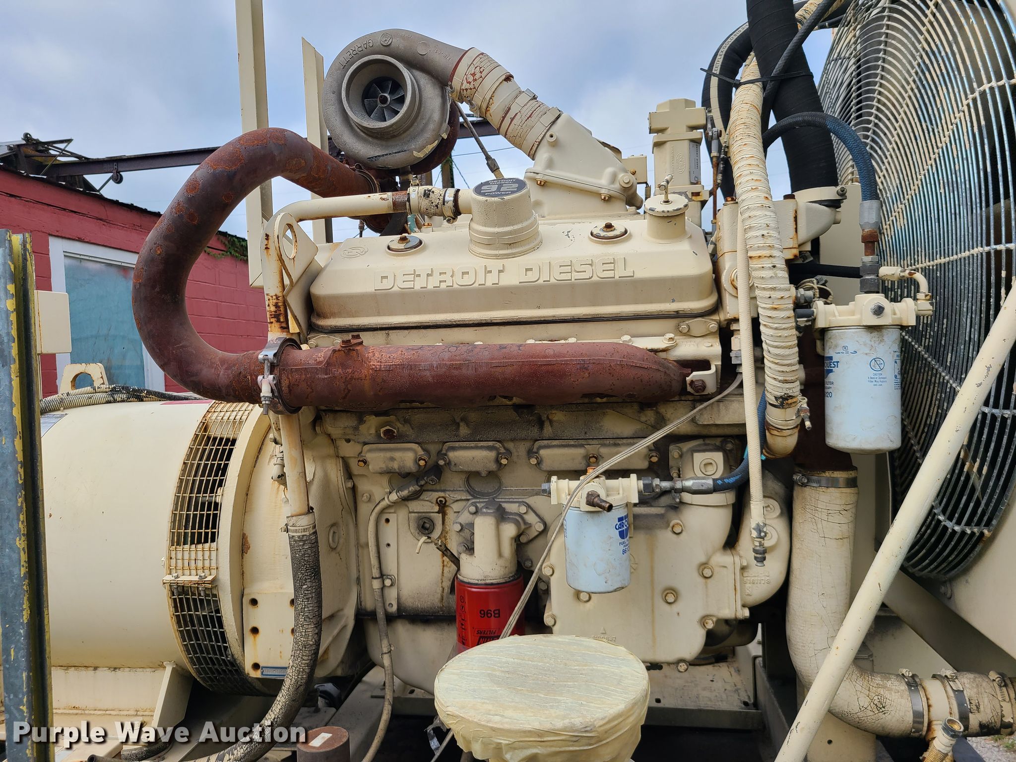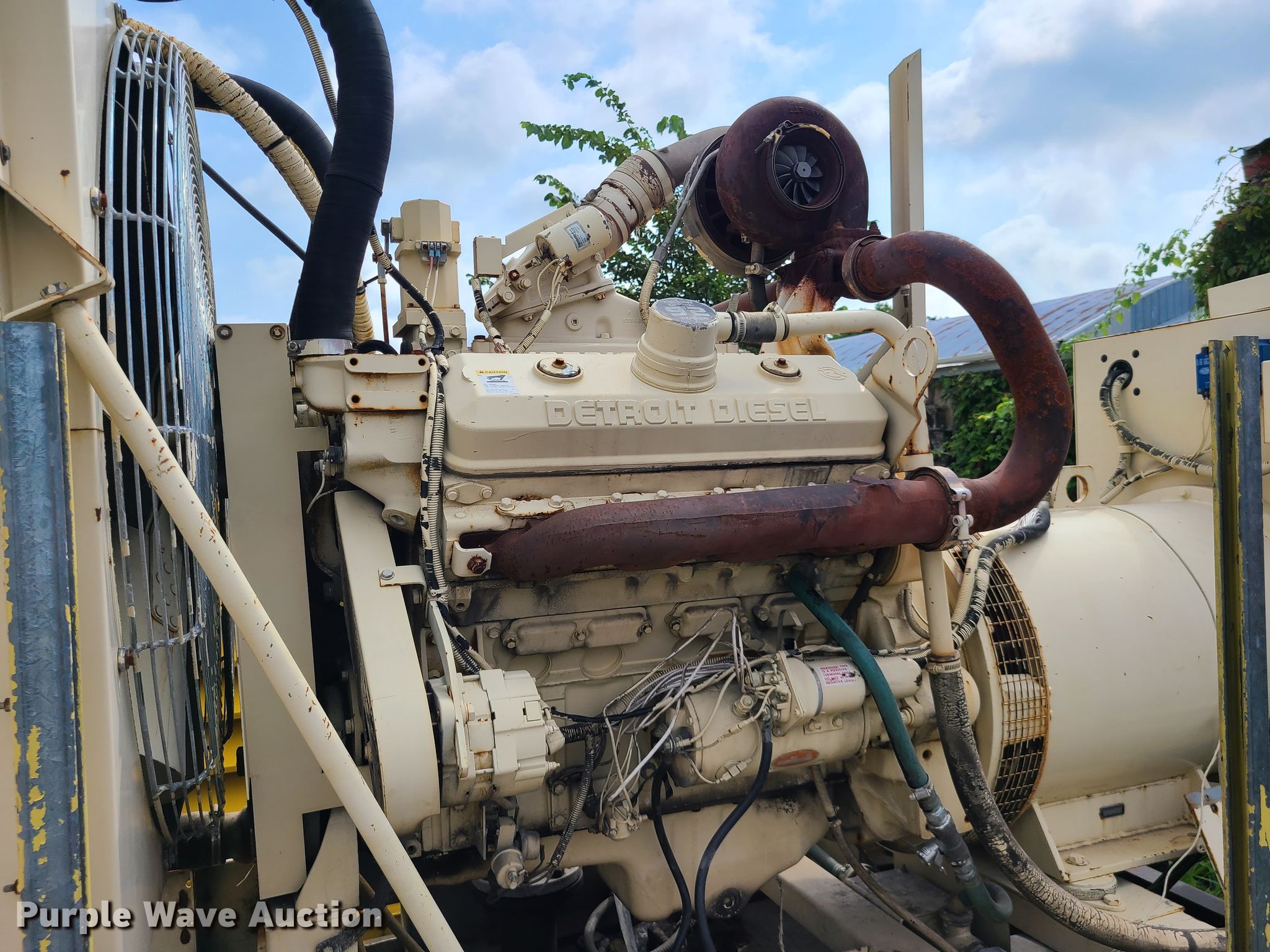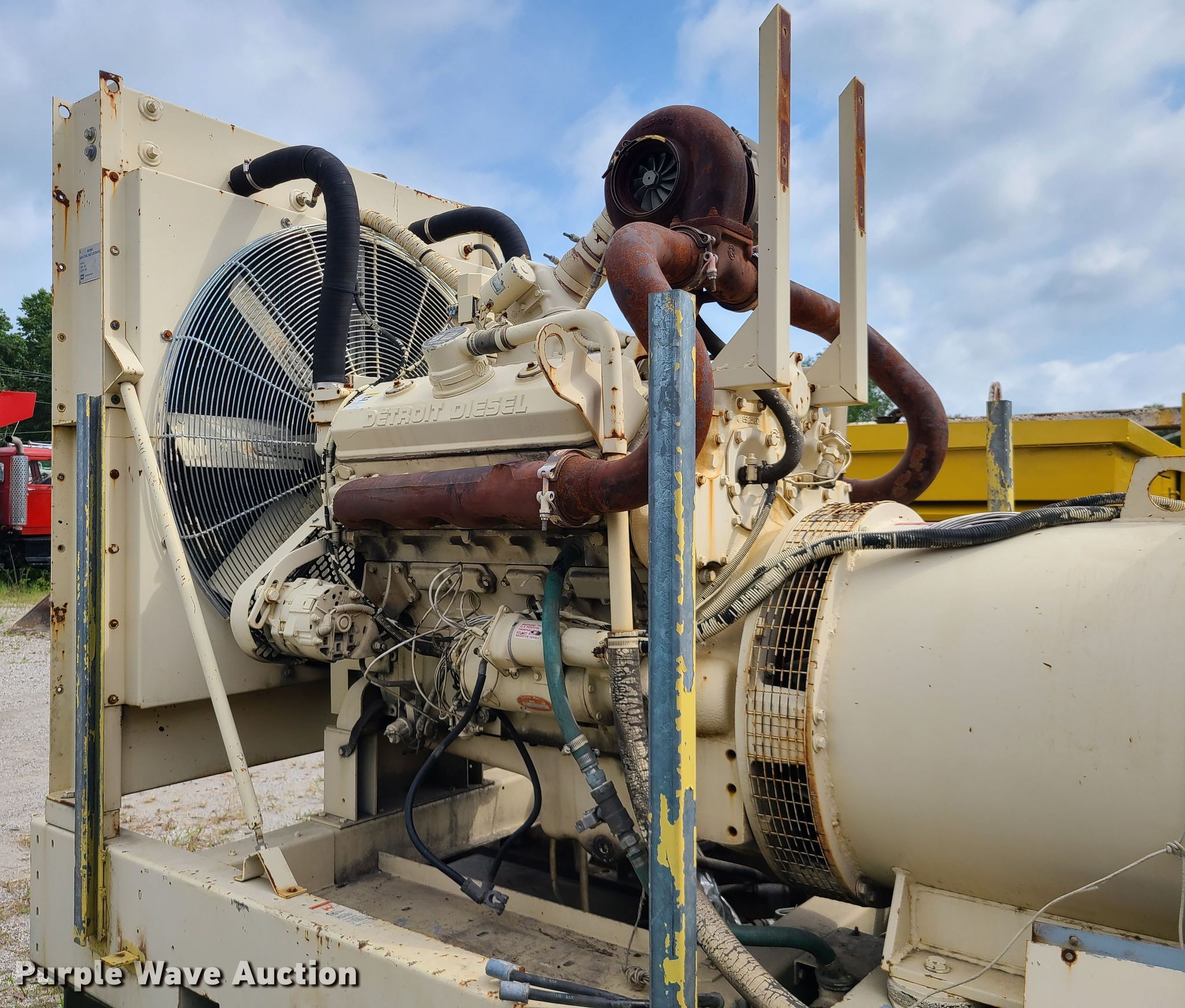 Kohler generator. Serial: 324117. Engine Detroit Diesel, Cylinders: 8, Fuel type: Diesel. Operational Generator kVA: 519, kW: 416, Phase: Three, Skid mounted. Shelton & Sons LLC. 1201 N Independence Street. Harrisonville, MO 64701