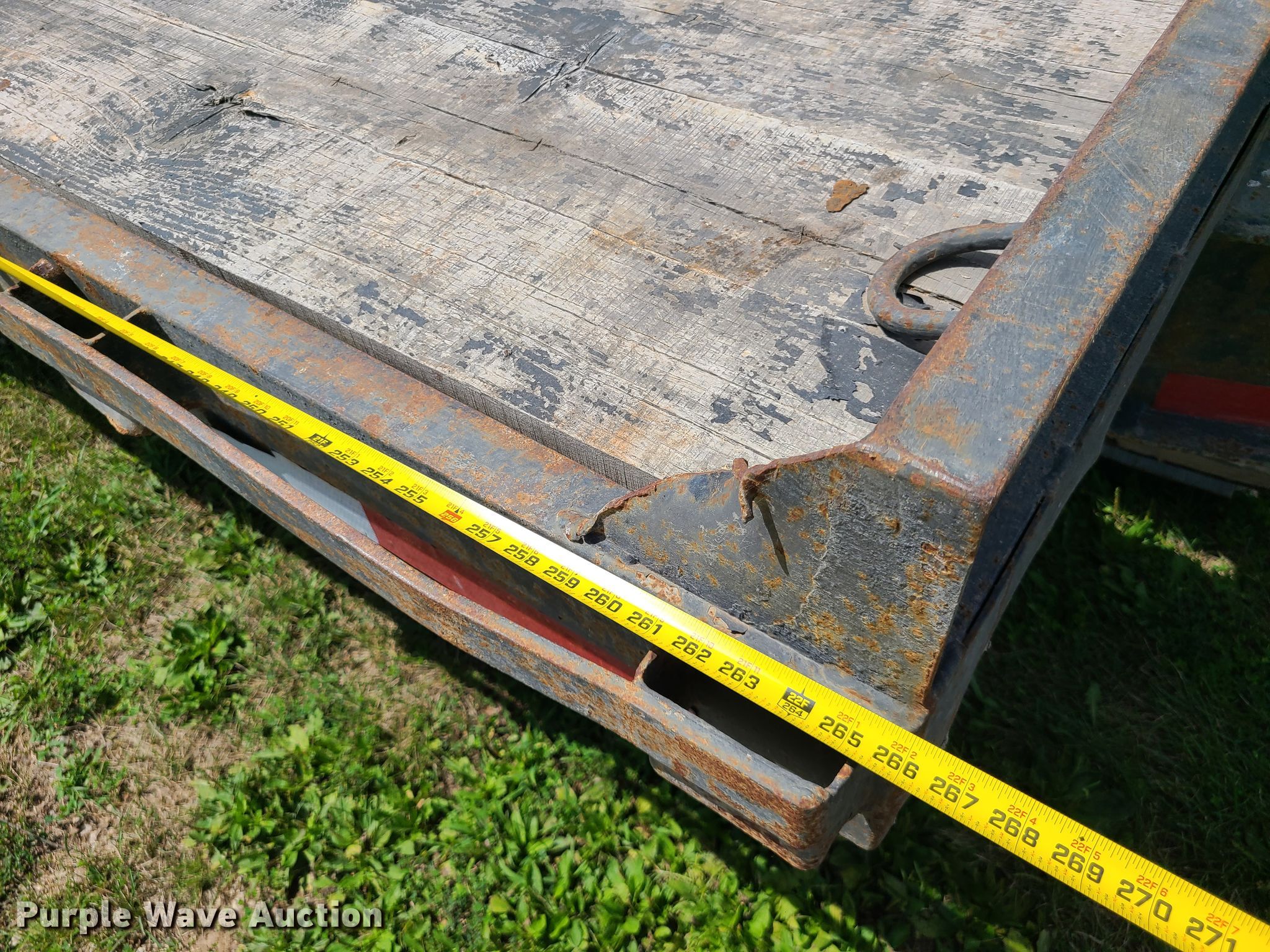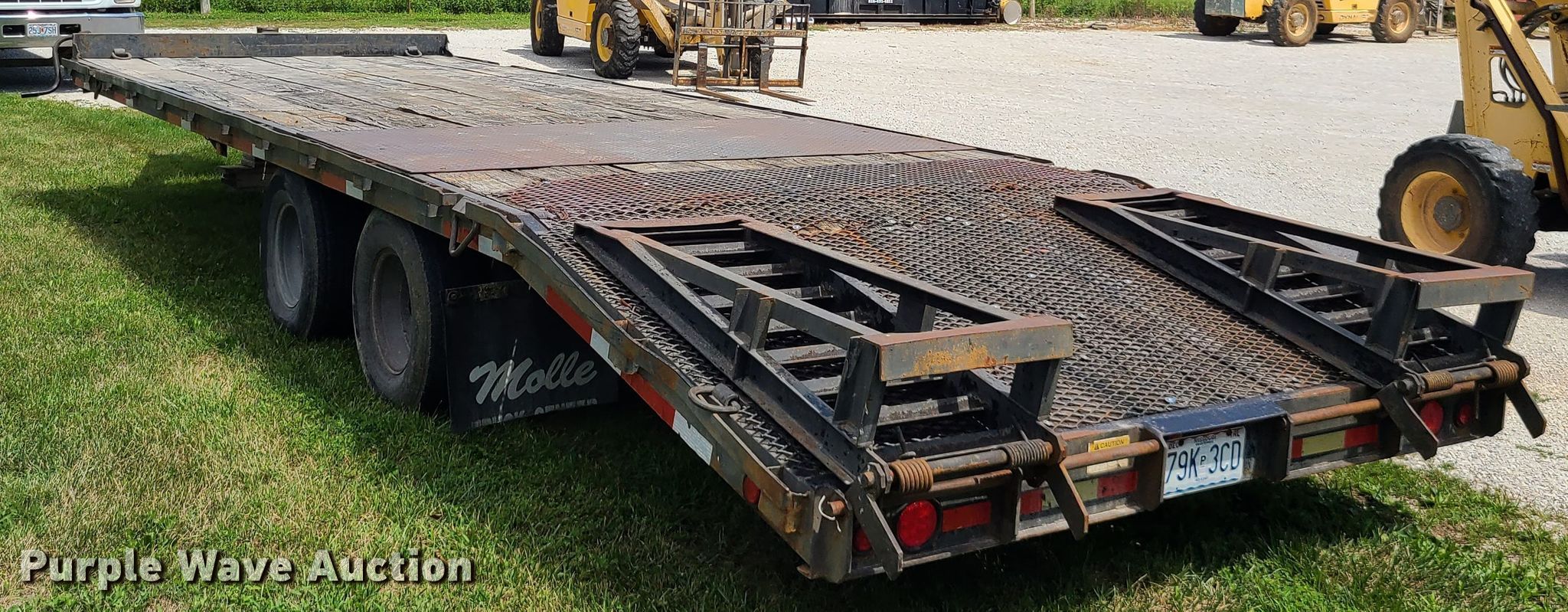 Purple Wave is selling a used Equip. Trailer in Missouri. This item is a 1999 Hillsboro Industries Inc. S627-TD-BT equipment trailer with the following: Overall: 33' L x 100" W, Deck: 22' L x 100" W, Ramps: Manual, Length: 54"