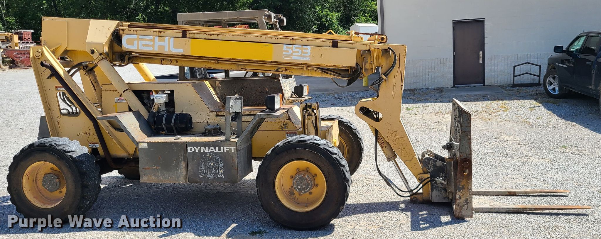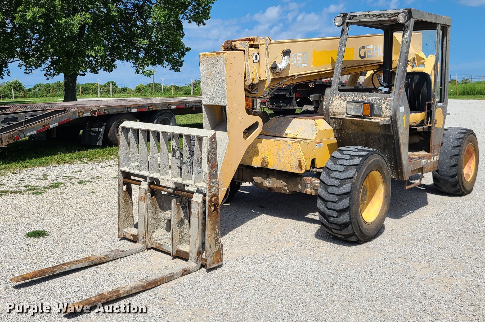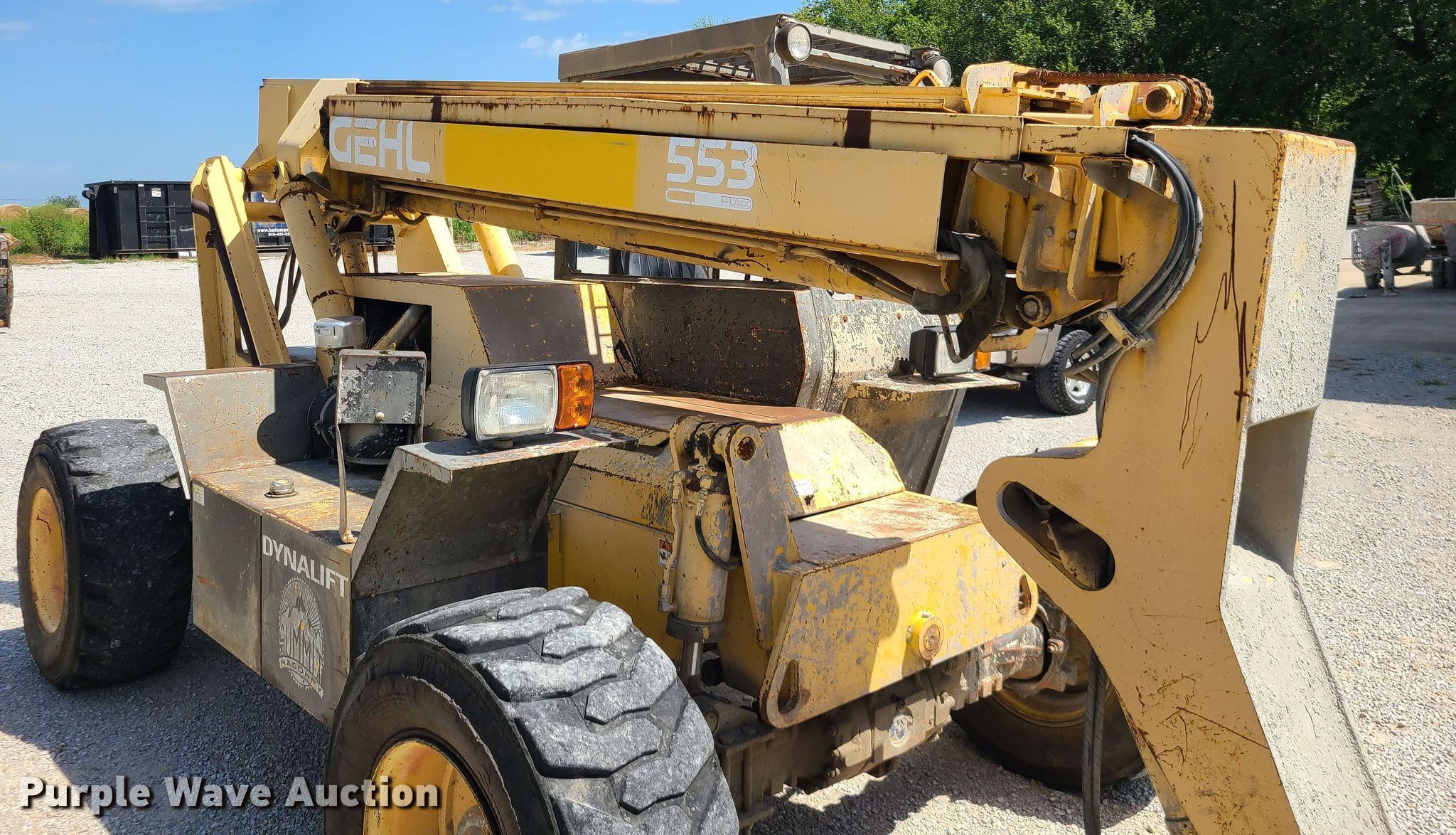 Purple Wave is selling a used Telehandler in Missouri. This item is a 1996 Gehl Dynalift 553 telehandler with the following: 8,374 hours on meter, Serial: JM013449
