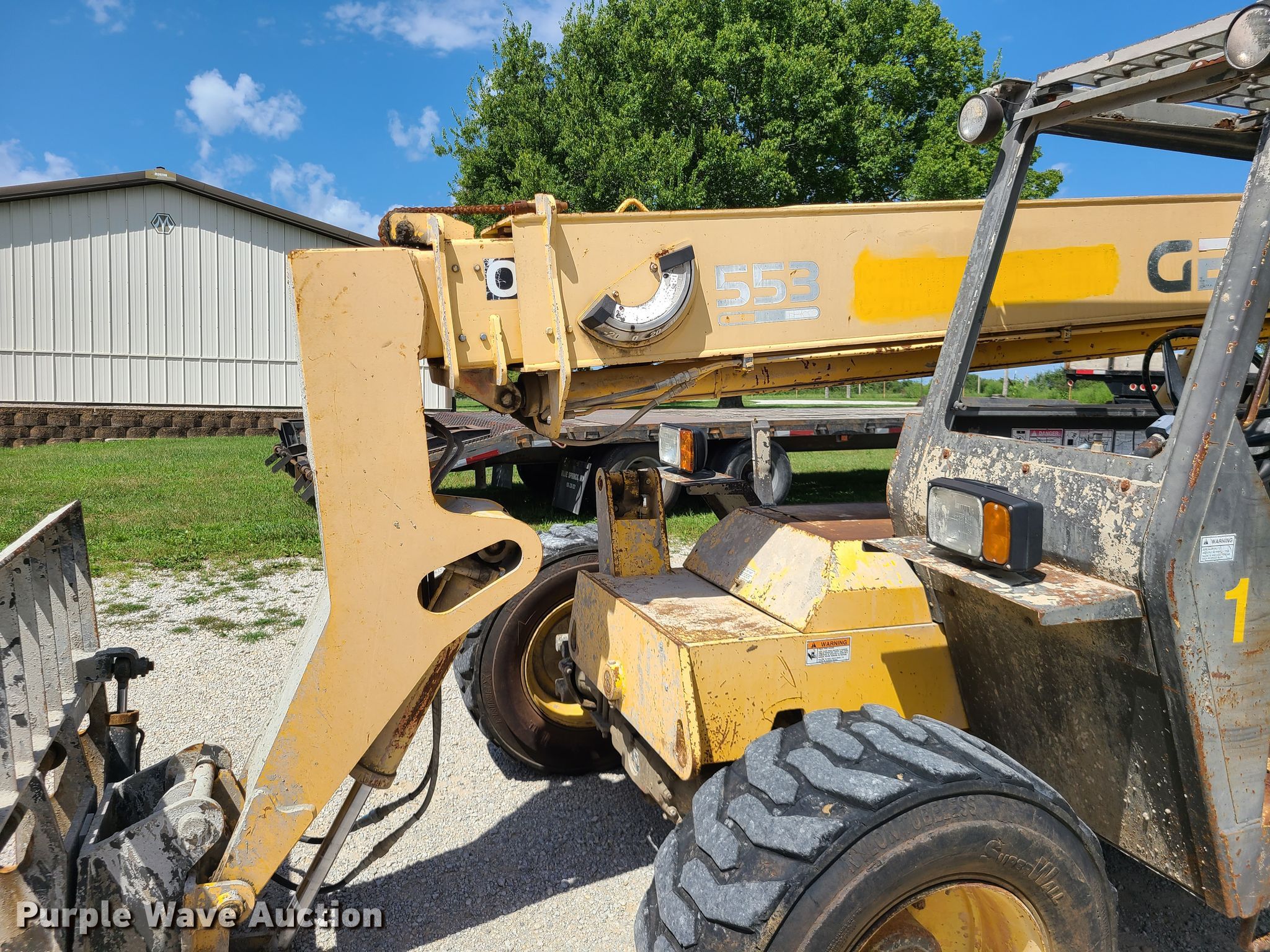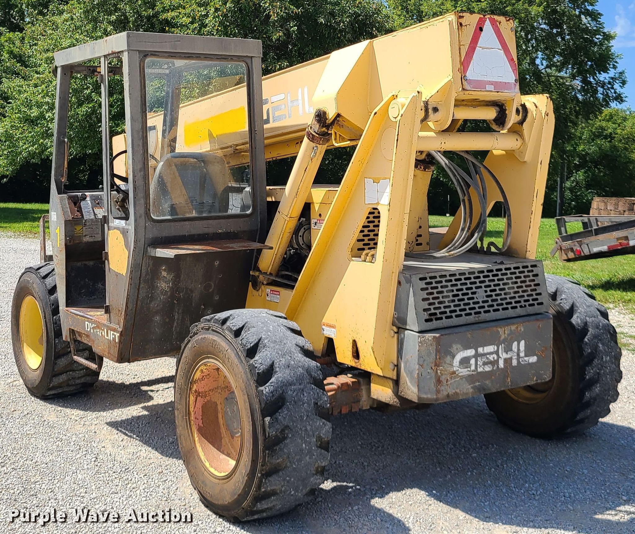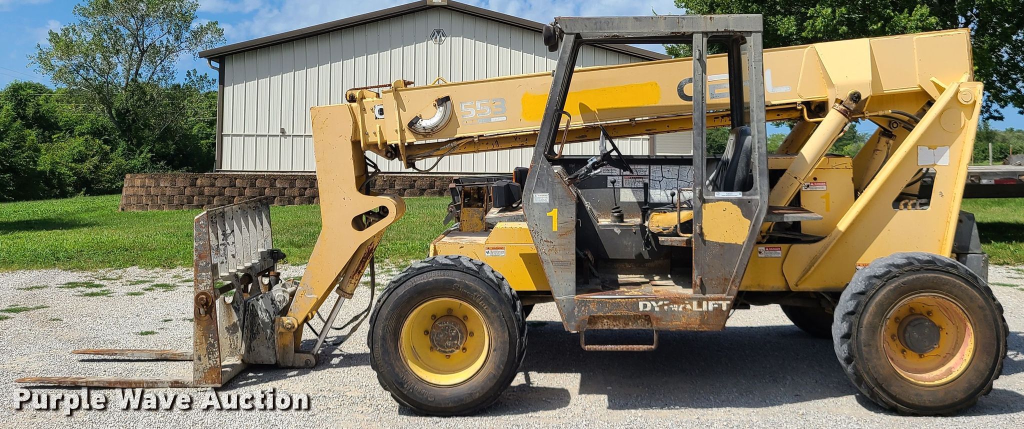 Purple Wave is selling a used Telehandler in Missouri. This item is a 1996 Gehl Dynalift 553 telehandler with the following: 8,374 hours on meter, Serial: JM013449