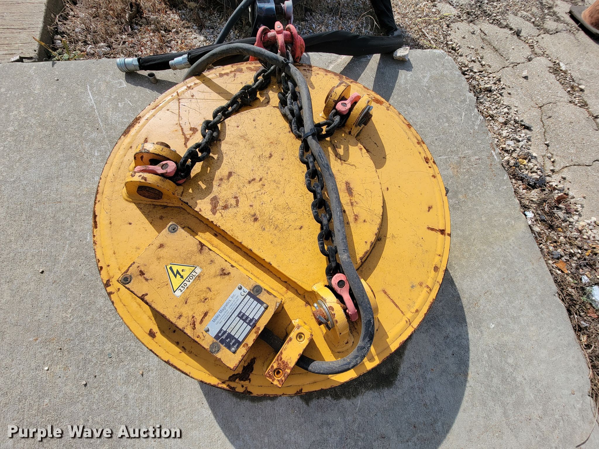 Purple Wave is selling a used Skid Steer Attach. in Missouri. This item is a Moley Magnetics ESM 30/200017 skid steer magnet with the following: 880 lbs capacity, Jem Tech G2075879 motor, 3,000 watts, 230V, 13 amps, Serial 18882