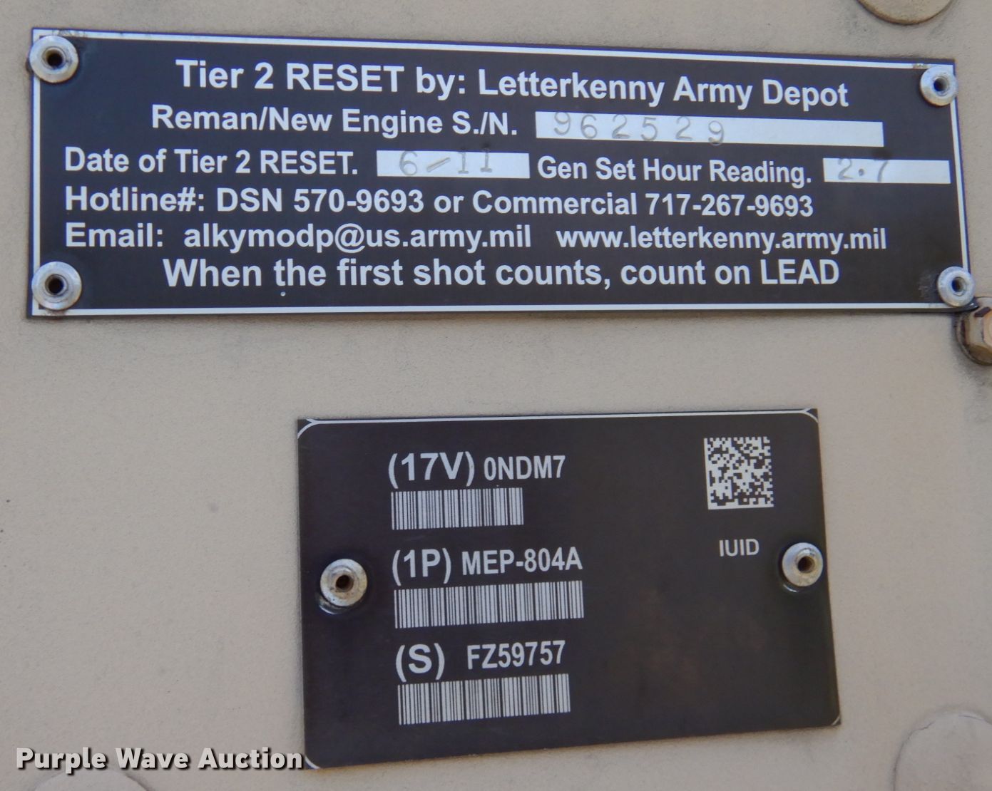 Purple Wave is selling a used Generator Set in Illinois. This item is a 2006 Fermont MEP-804A generator with the following: 683 hours on meter, Serial: FZ 59757