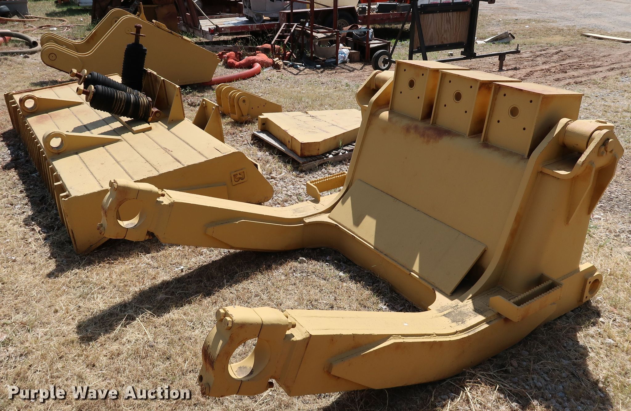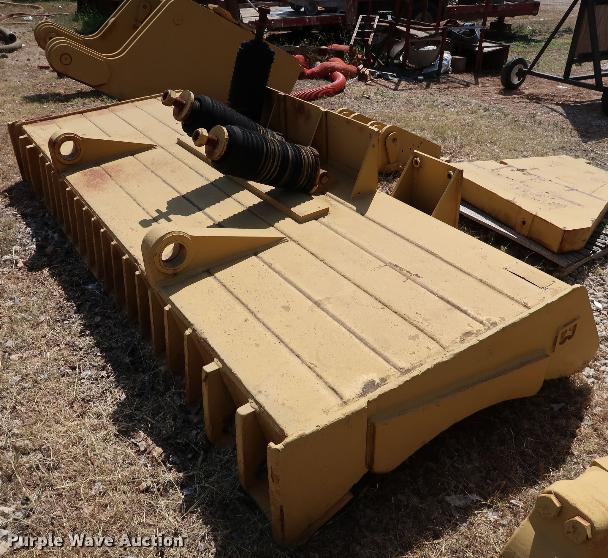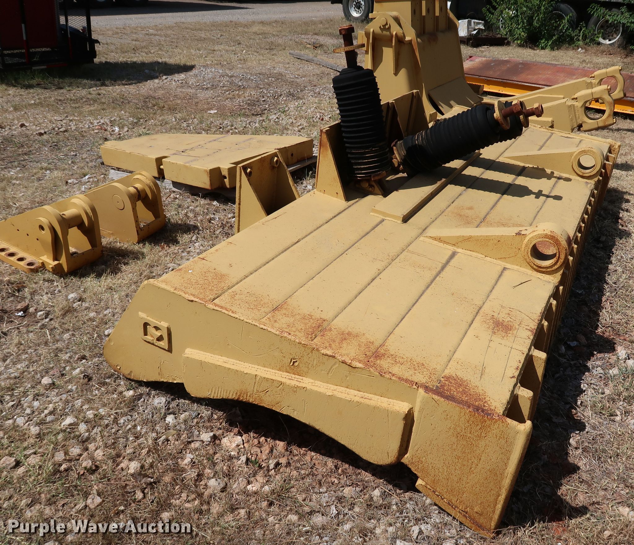 Purple Wave is selling a used Crawler Attach. in Oklahoma. This item is a Caterpillar D10N dozer blade and counter weights with the following: 11'6"W blade, Weight box, (5) weight slots, Mounting hardware, Rear weight