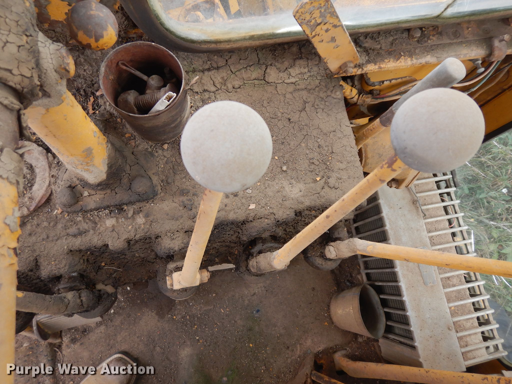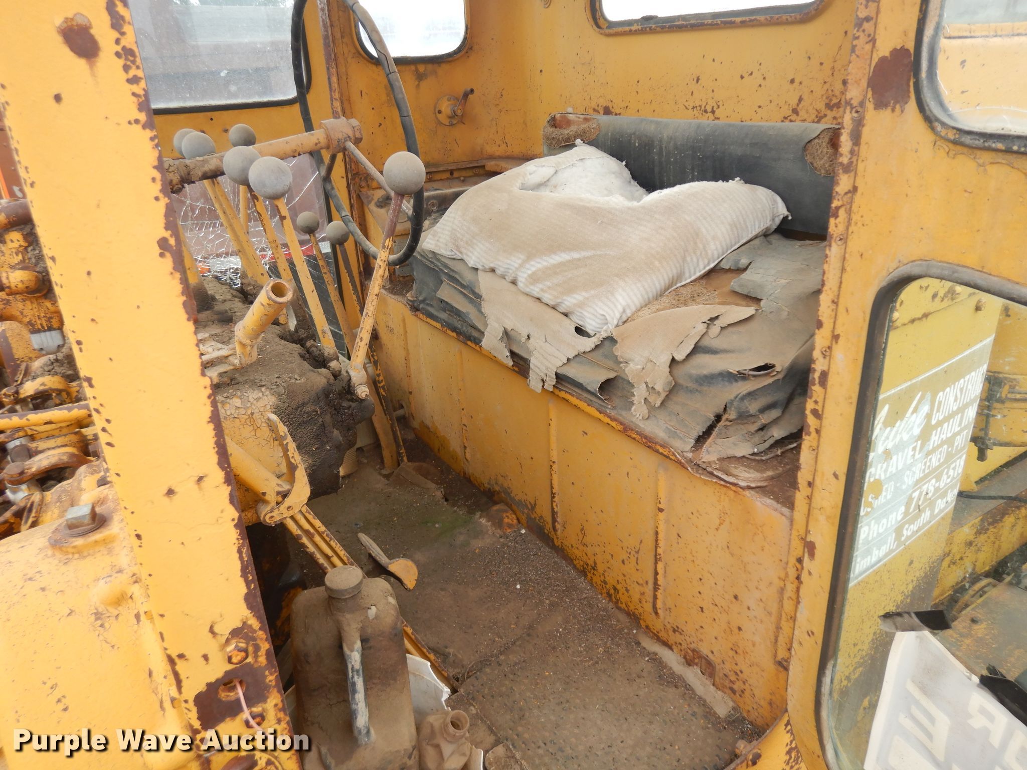 Caterpillar rigid frame motor grader. Unknown hours on meter, Serial: 8T18481. Engine Caterpillar, Cylinders: 6, Fuel type: Diesel. Transmission Direct-drive, 6F - 2R. Operators station Enclosed cab, Hydraulic control valves: 6. Operational Moldboard: Side shift, Moldboard total length: 14', Scarifier Scarifier type: Mid Mounted Teeth: 5.. Tires Size: 14.00-24. Notes Glass cracked, Dead battery, Unknown operating condition. Kimball, SD 57355