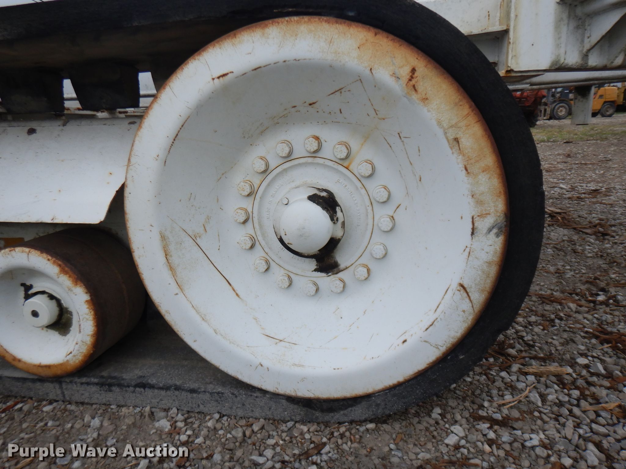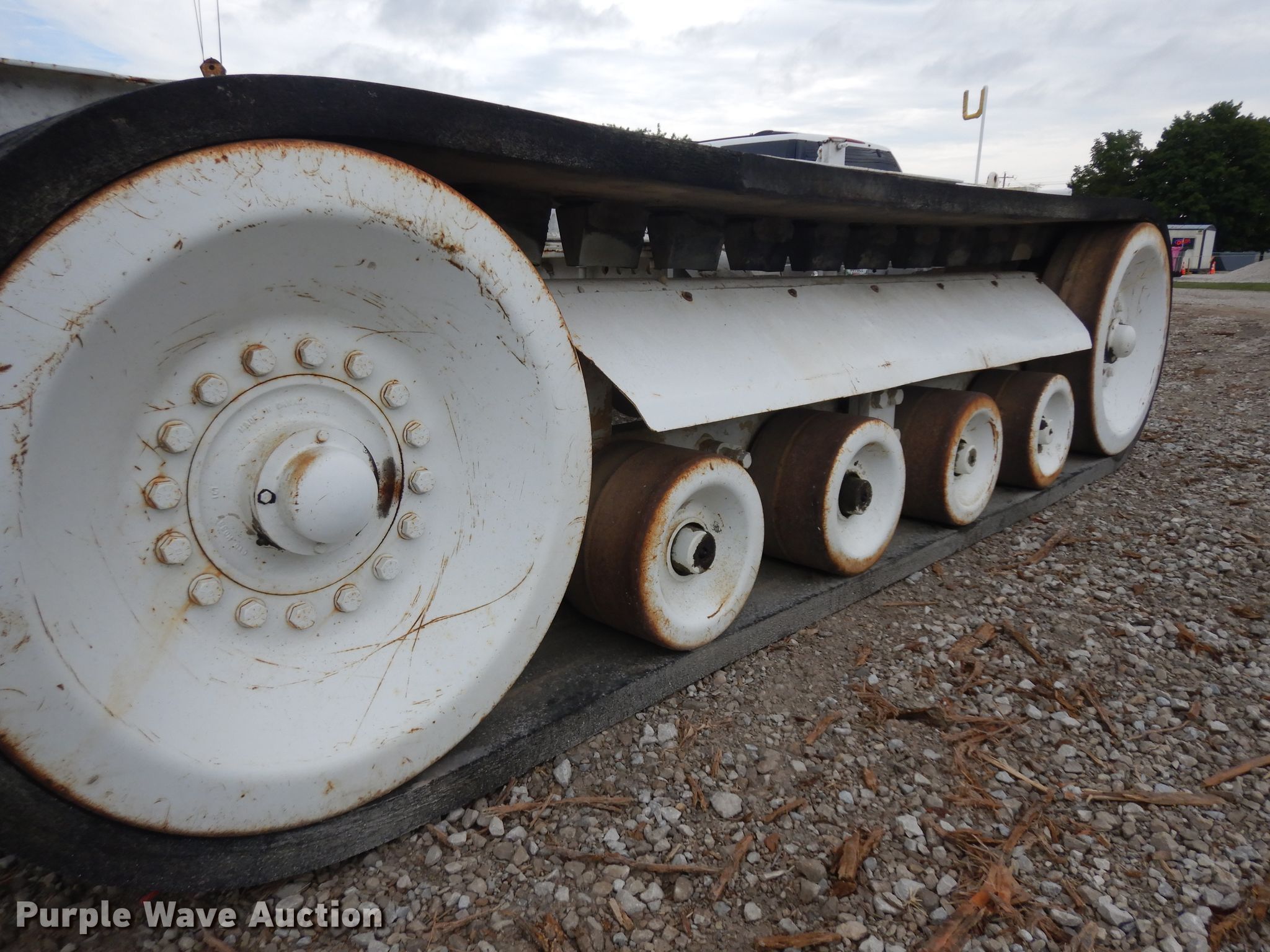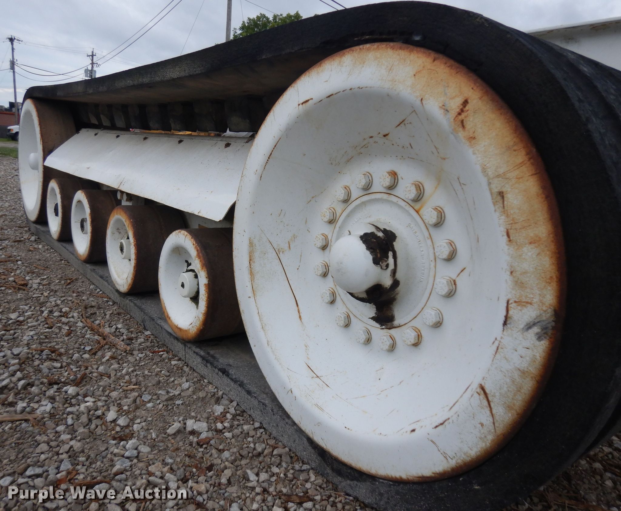 Tracked trailer. Dimensions. Overall: 22' x 118" W, Deck: 14' x 58" W. Chassis Hitch: Pin, Landing gear: Single. Tracks Width: 24", Rubber. Dubois Excavating. 714 W Morgan St. Spencer, IN 47460