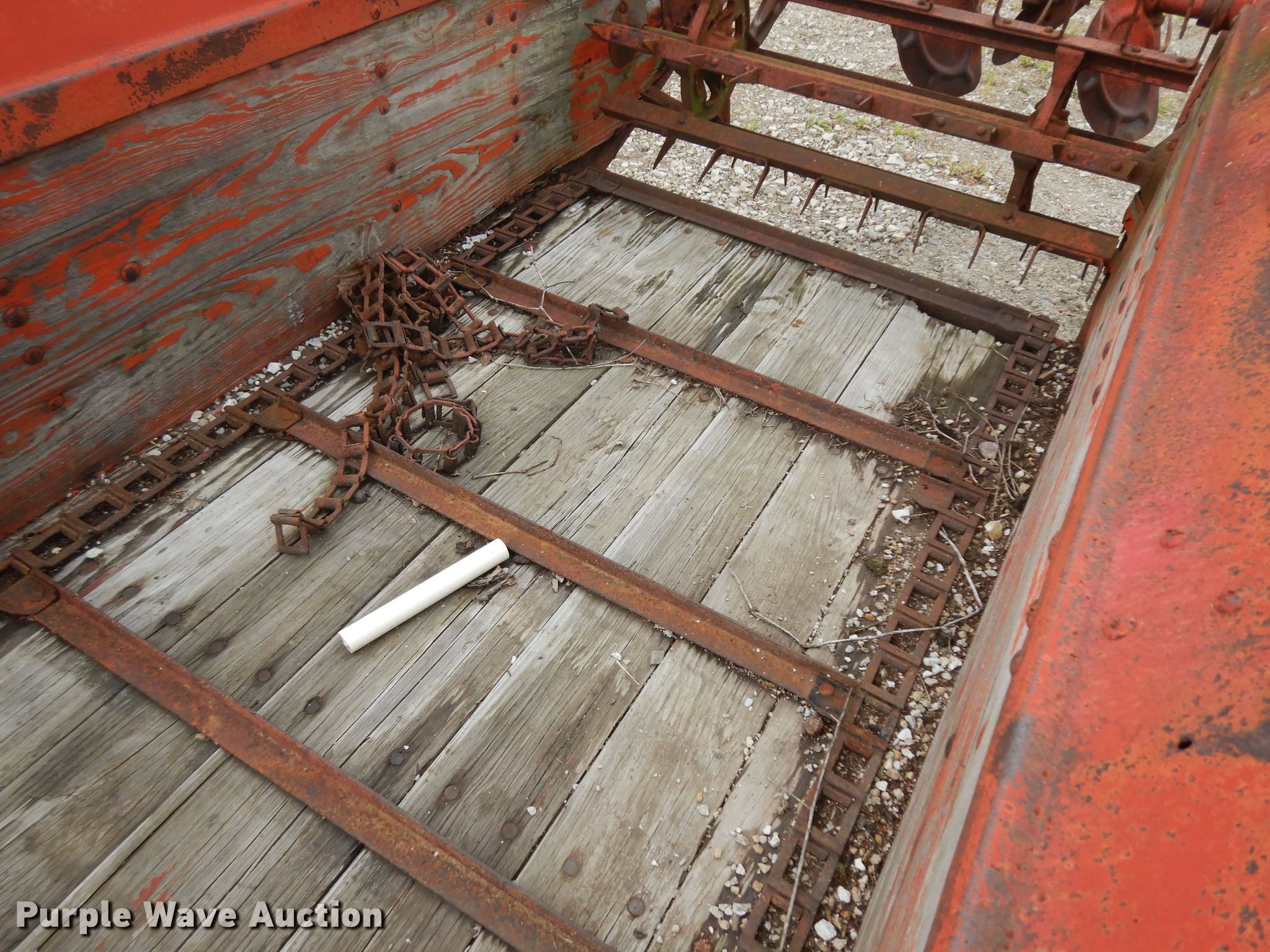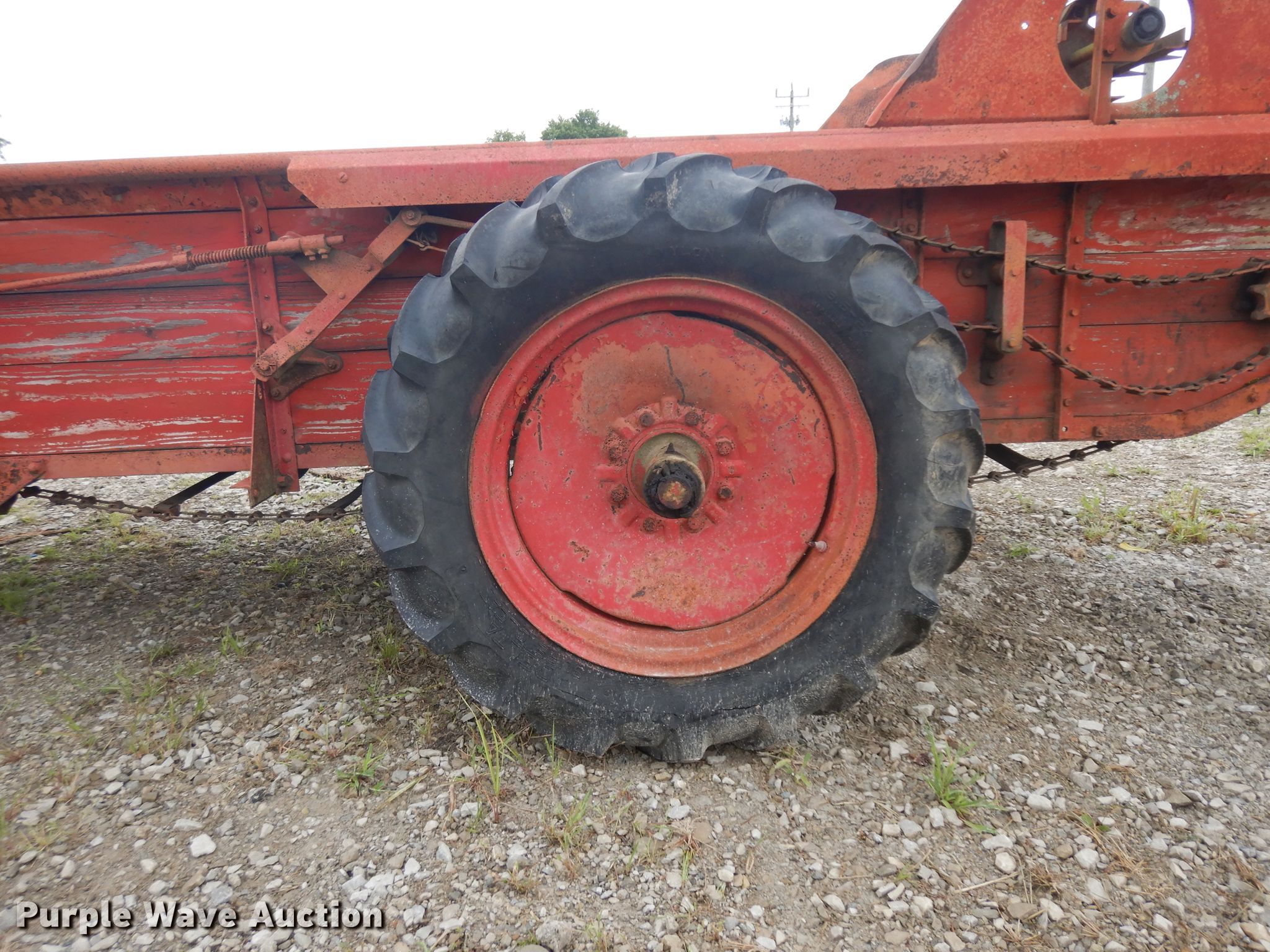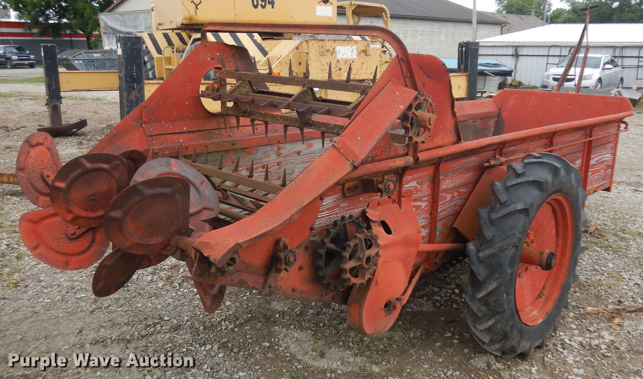 Purple Wave is selling a used Manure Spreader in Indiana. This item is a Manure spreader with the following: 9' 6" L x 38" W, Side height: 21", Chain driven floor, Rear beaters: Horizontal, Quantity: 3