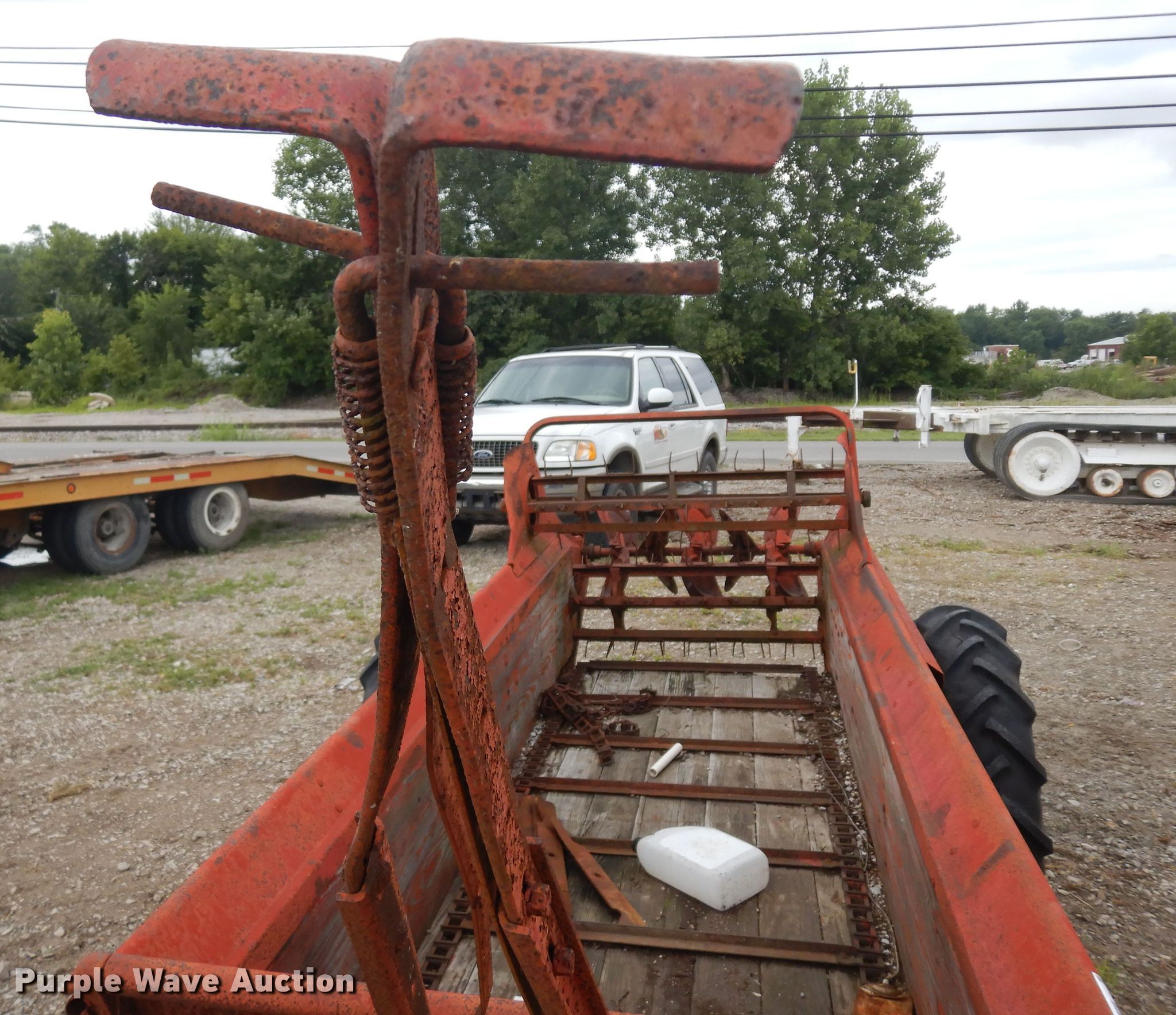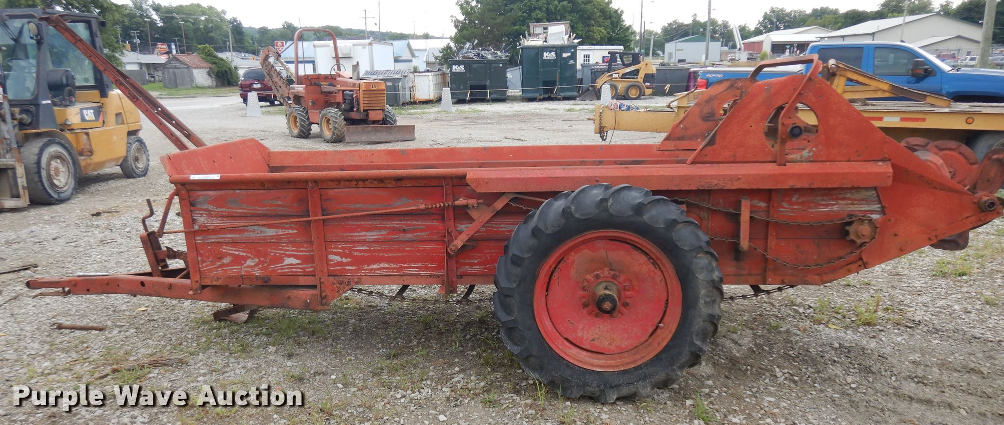 Manure spreader. Operational. 9' 6" L x 38" W, Side height: 21", Chain driven floor, Rear beaters: Horizontal Quantity: 3. Tires Size: 9.5-24. Dubois Excavating. 714 W Morgan St. Spencer, IN 47460
