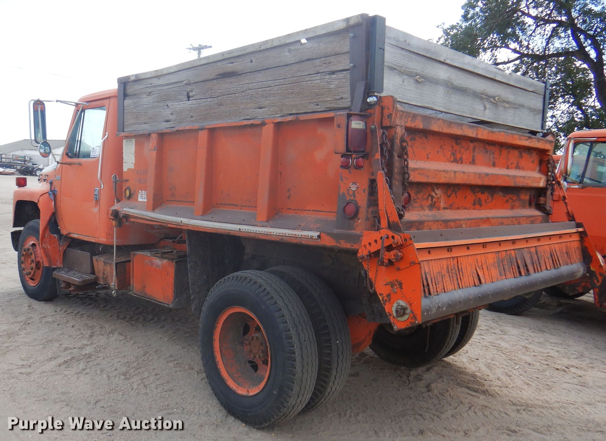 1980 International 1754 dump truck. 214,126 miles on odometer, Engine hours: 8,442. Engine Cylinders: 8, Fuel type: Diesel. Transmission Automatic. Chassis Axles: Single, Suspension: Spring, Brakes: Hydraulic, PTO. Interior Heat. Operational Dump bed Fontaine J400 9X7, Capacity: 5 cu.yd., 9' L x 8' W, Side height: 28", Side board height: 18", Bed type: Steel, Ram: Single , End gate: Manual, Spreader Model: TG-500. Tires Size: 9.00-20. Notes Unknown operating condition. Kansas title. AA175JHA27811. City of Syracuse. 102 Bentley St. Syracuse, KS 67878