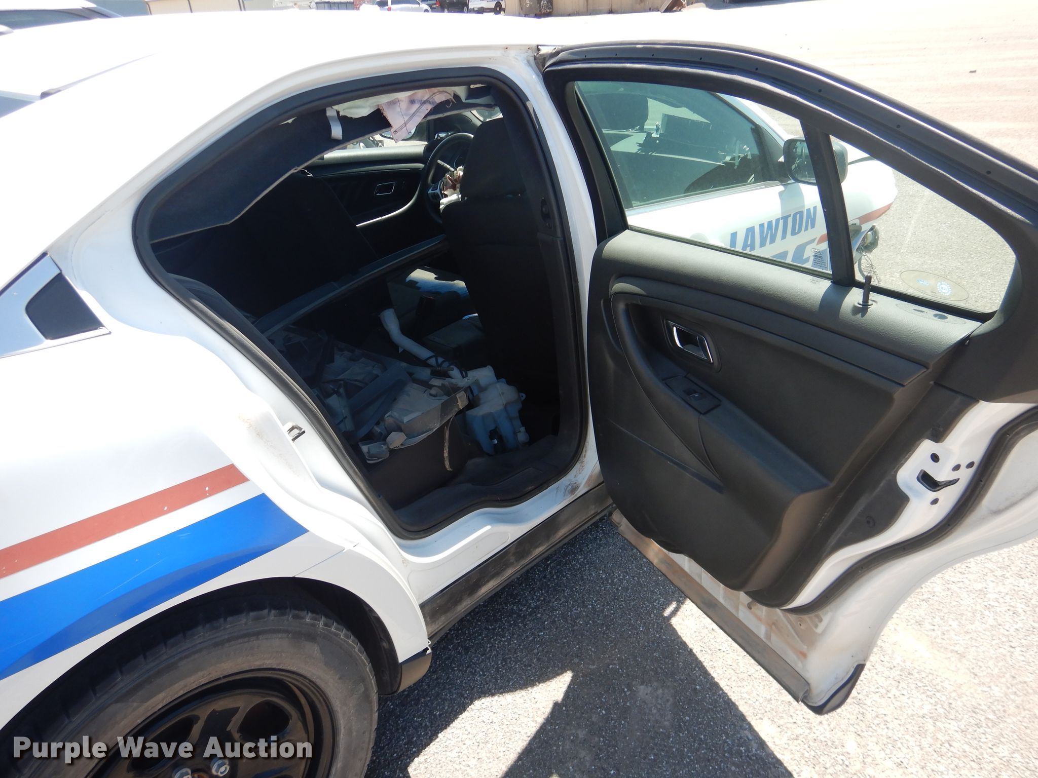 2015 Ford Taurus Police. Unknown miles on odometer. Engine No engine. Transmission No transmission. Interior Seat: Power driver, Power windows, Power locks, Cruise control. Tires Size: 245/55R18. Notes Vehicle wrecked, Tires missing, Non-operational unit. Oklahoma title. Seller is a government entity who will be assigning and distributing the title. Please contact the seller for distribution questions. Mileage has not been verified. Exempt will be written in the odometer disclosure on the title. 1FAHP2MK3FG195359. City of Lawton, OK. 2215 SW 3rd St. Lawton, OK 73501