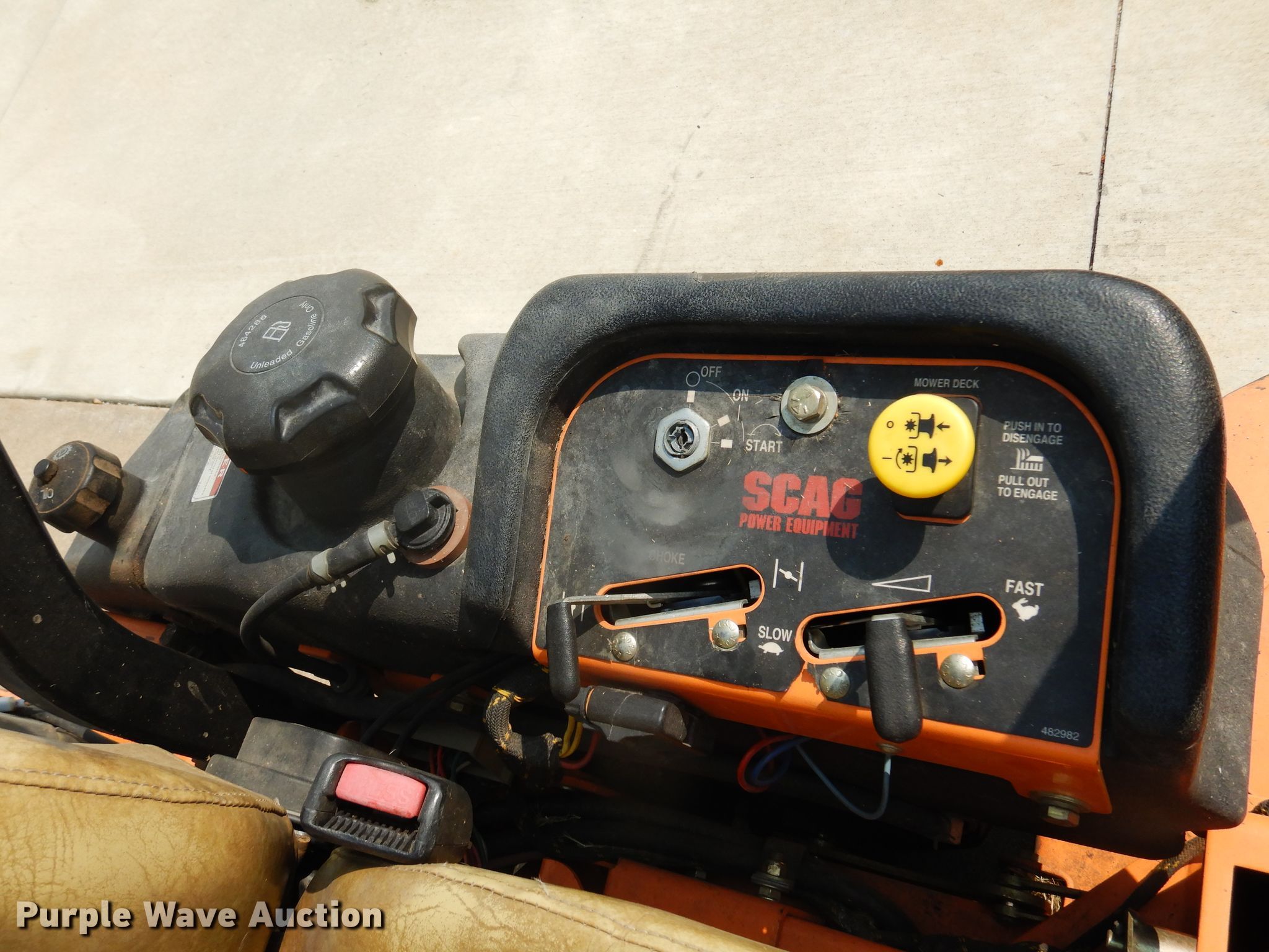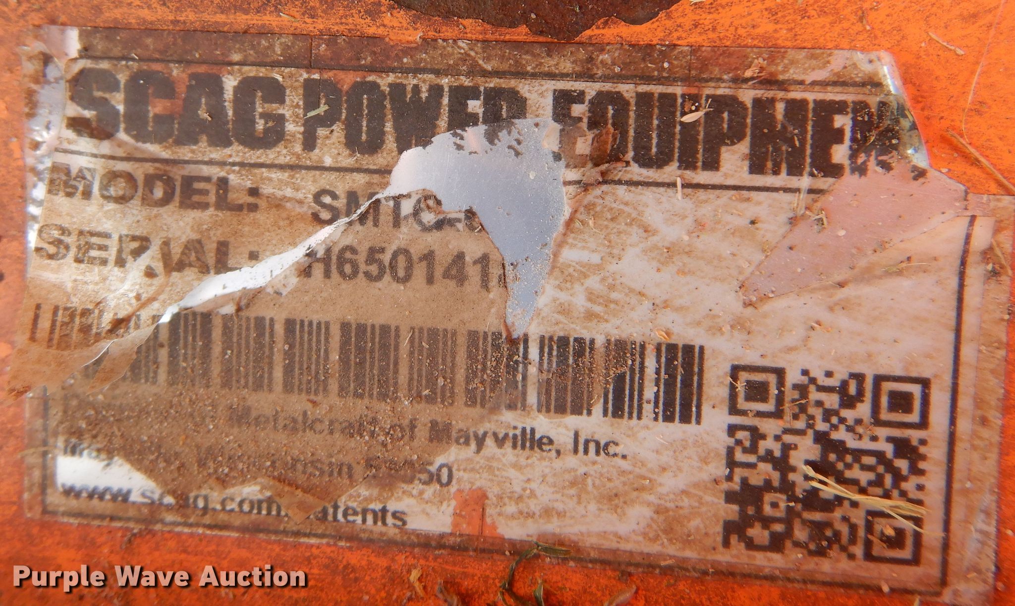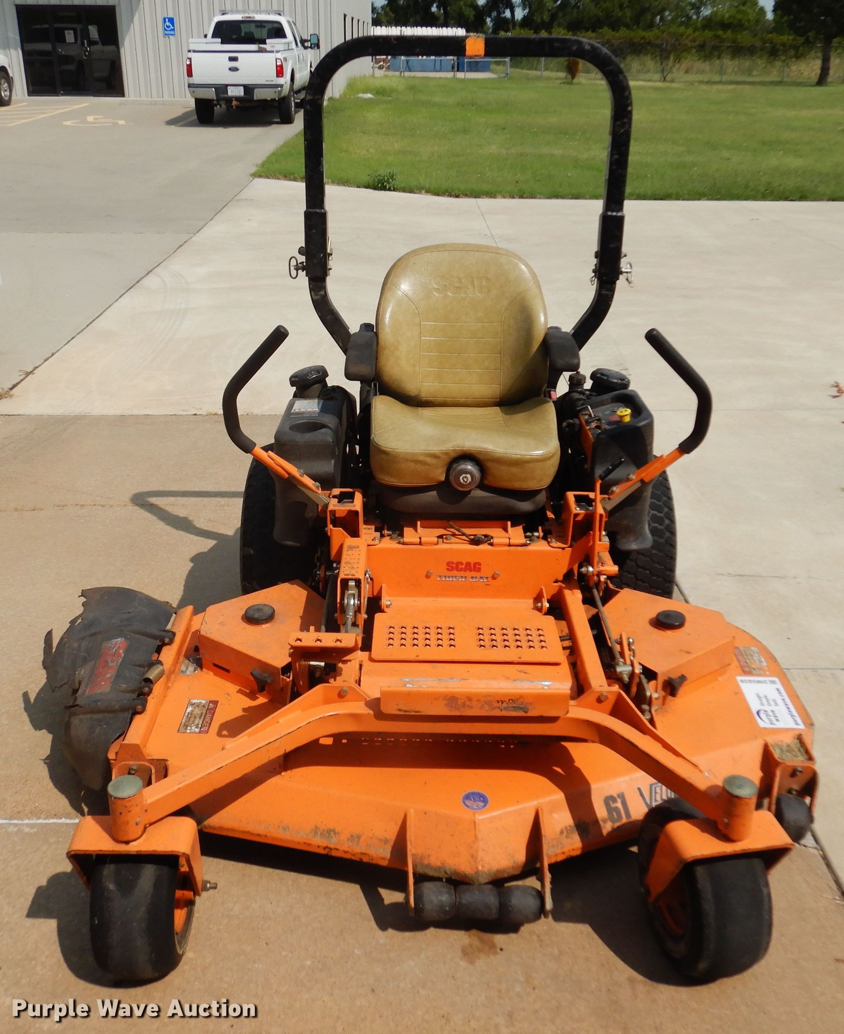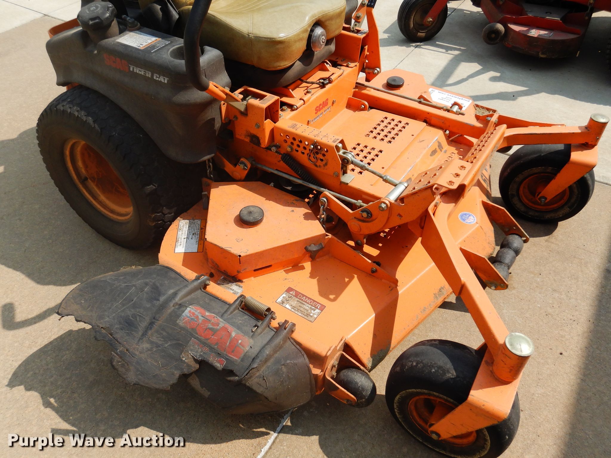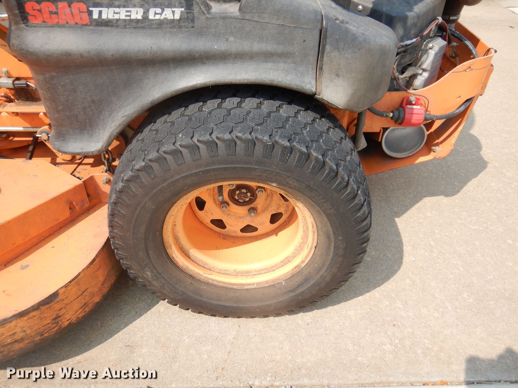 Purple Wave is selling a used Commercial Turf Mower in Kansas. This item is a Scag Tiger Cat ZTR lawn mower with the following: 127 hours on meter, Cutting width: 61", Serial: H6501414