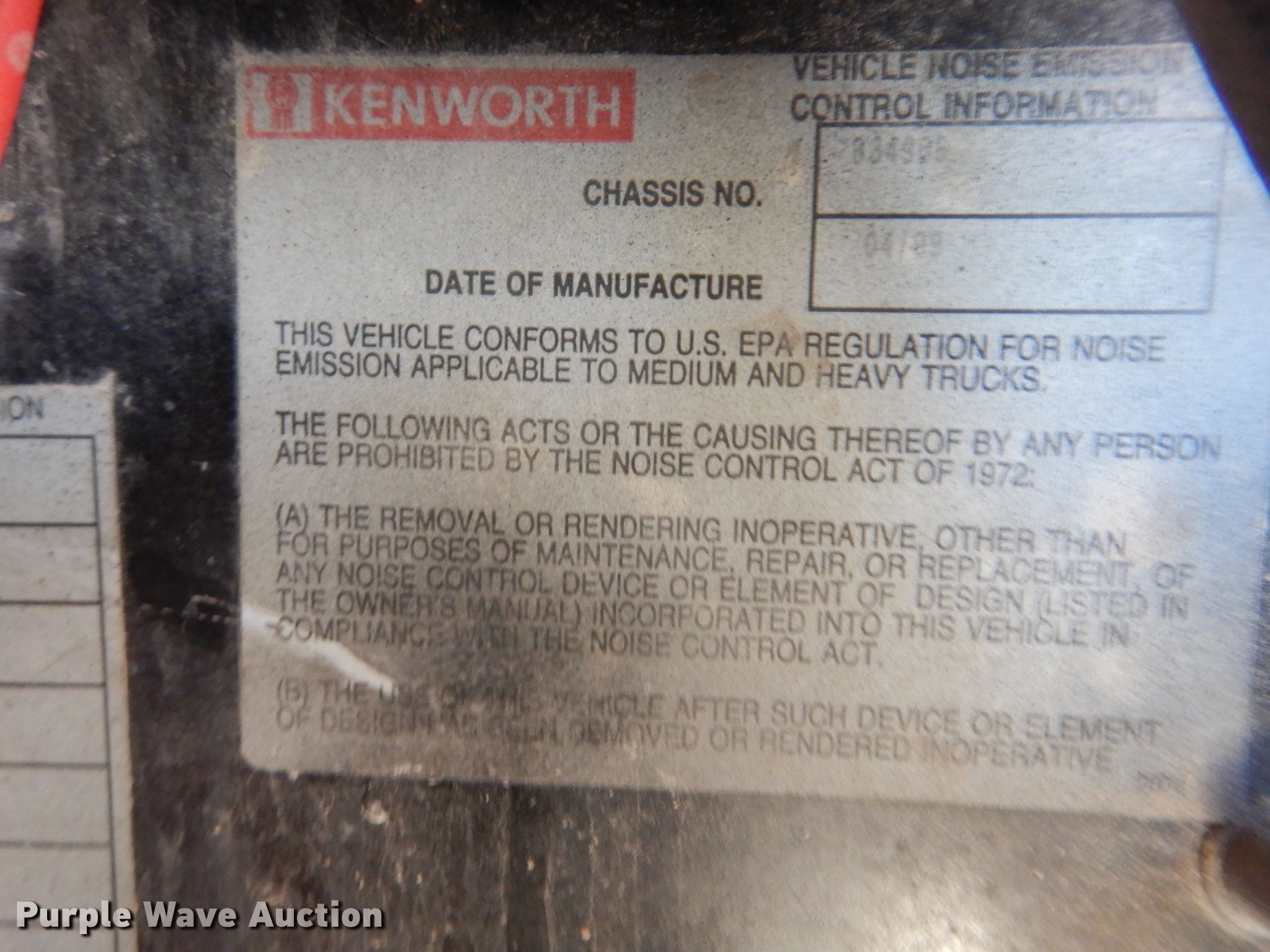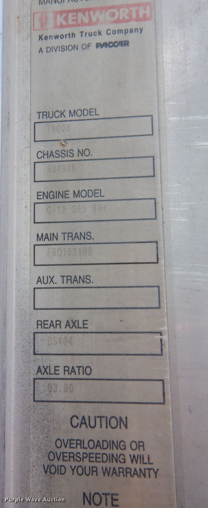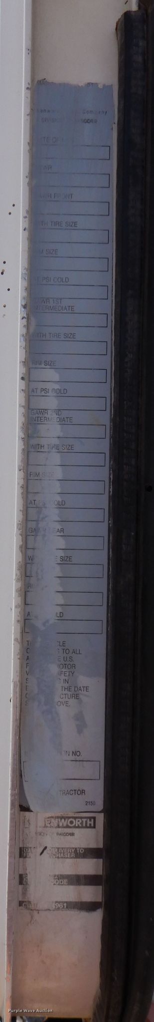 1999 Kenworth T800 water truck. 391,733 miles on odometer, Engine hours: 25,740. Engine Caterpillar C12, Cylinders: 6, Fuel type: Diesel. Transmission Manual, Speed: 10. Chassis Axles: Tandem, Differential lock: Inter-axle, Suspension: Air, Brakes: Air, PTO. Interior AC, Heat, Heated mirrors, Cruise control. Operational Bed / tank Art's Truck & Equip, 18' L x 7' 10" W, Water tank Spray bar: Front, Rear, Side discharge, Top fill, Rear drain: 2", Rear outlet: 3". Tires Size: 11R22.5. Notes Windshield chipped or cracked, Needs batteries, Unknown operating condition. Texas title. Title distribution may be delayed up to 14 days from verification of funds. 1XKDDU9X9XR834906. Upton County. 2548 Farm To Market Rd 305. Mc Camey, TX 79752