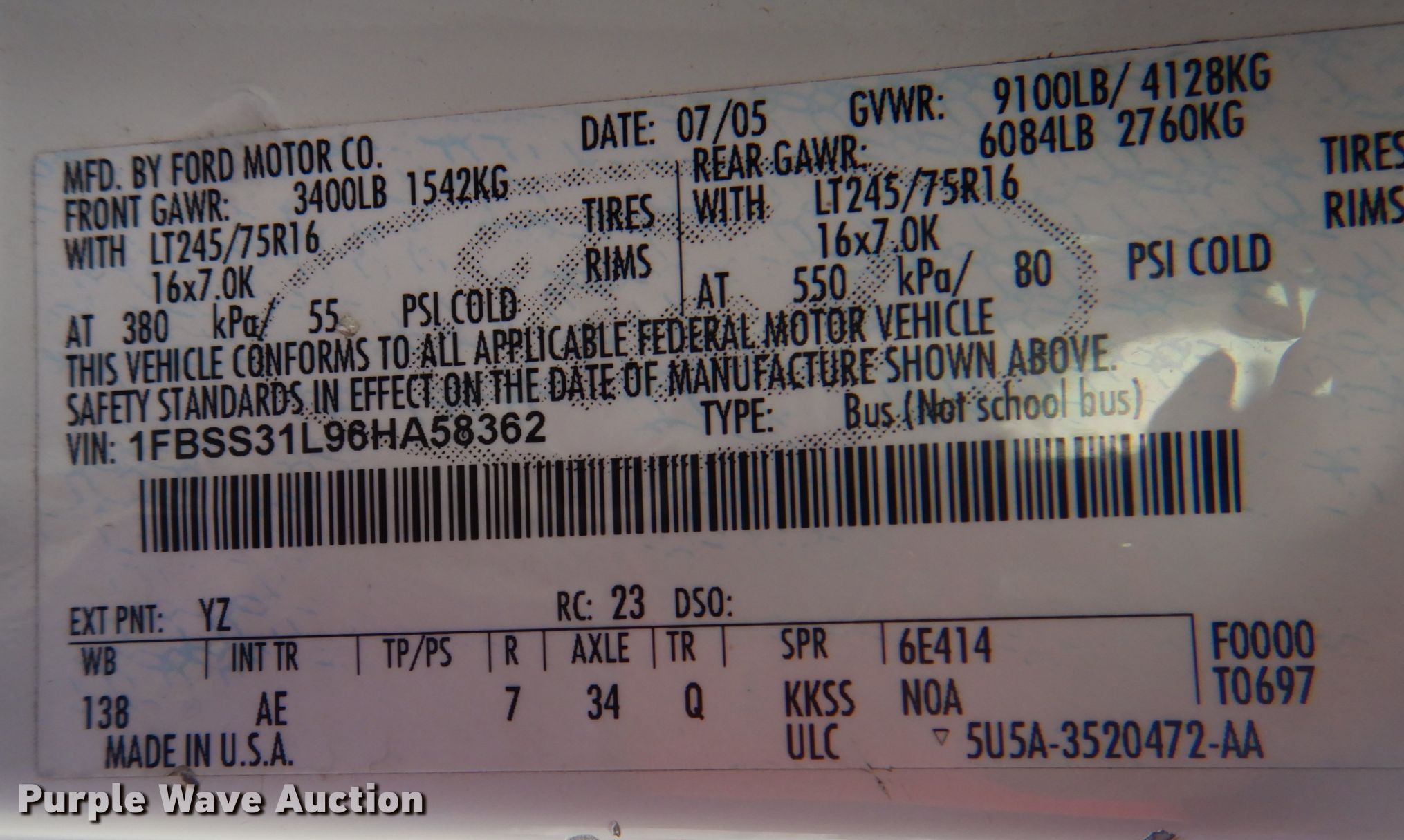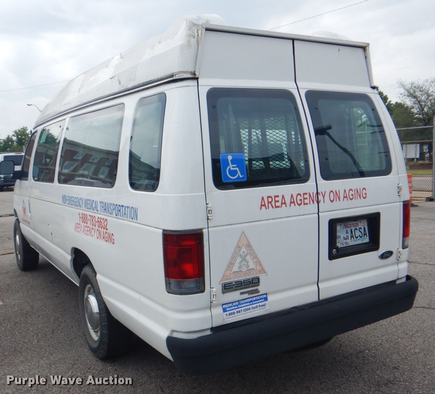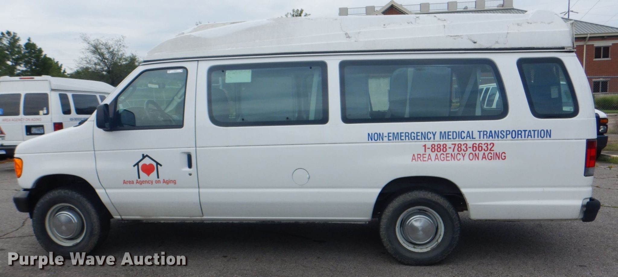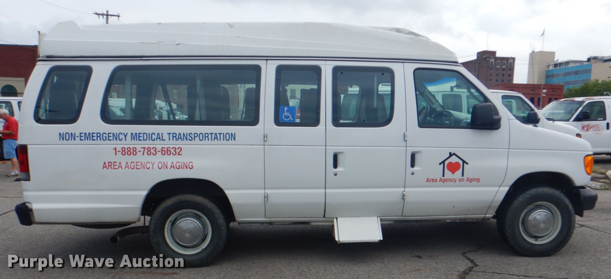 2006 Ford E350 Super Duty XL van. 345,747 miles on odometer. Engine Displacement: 5.4L V8 SOHC 16V, Cylinders: 8, Fuel type: Gas. Transmission Automatic. Interior AC, Heat, Cruise control. Tires Size: LT245/75R16. Notes Video Monitoring System will be removed prior to sale, Non-operational wheelchair lift. Arkansas title. 1FBSS31L96HA58362. Area Agency on Aging of Western Arkansas, Inc.. 524 Garrison Ave. Fort Smith, AR 72901