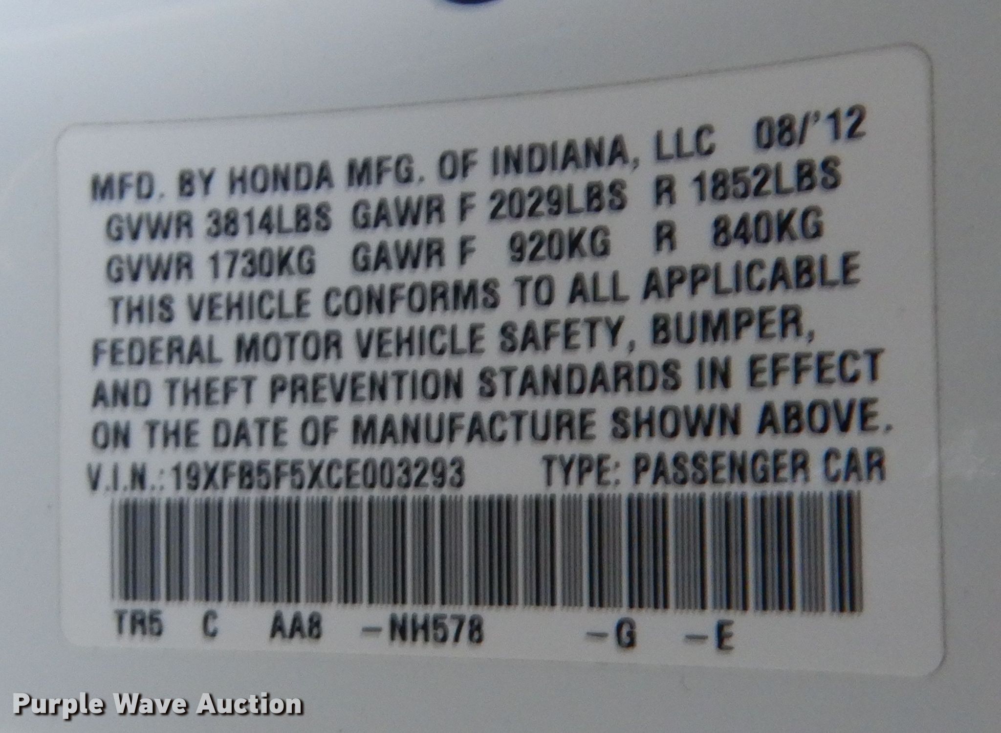 2012 Honda Civic | SOLD! Tuesday September 28 Government Auction