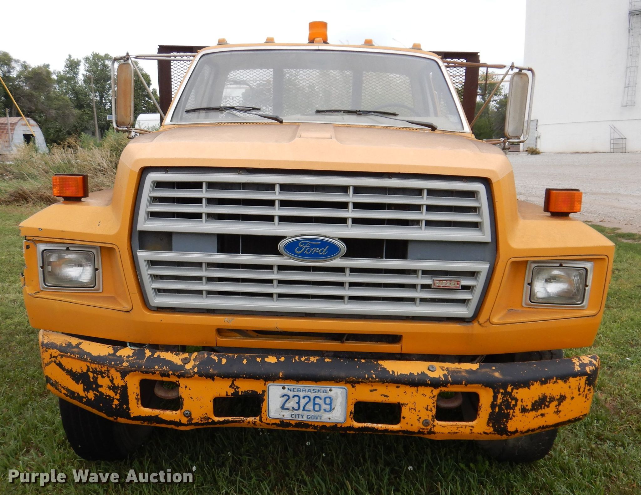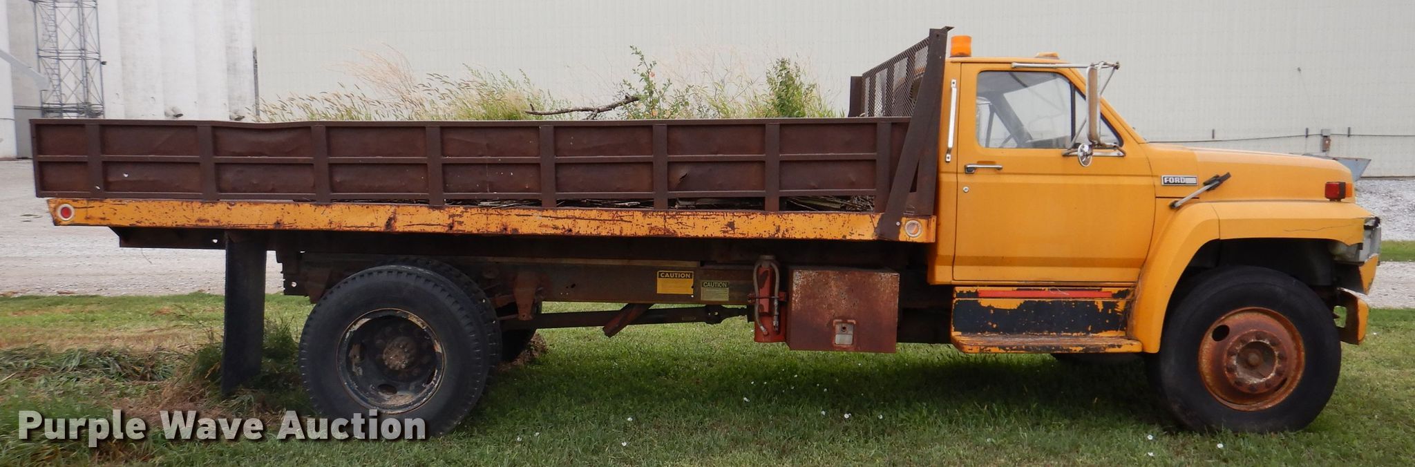 Purple Wave is selling a used Construction Dump Truck in Nebraska. This item is a 1985 Ford F700 dump flatbed truck with the following: 57,453 miles on odometer, Engine hours: 2,442