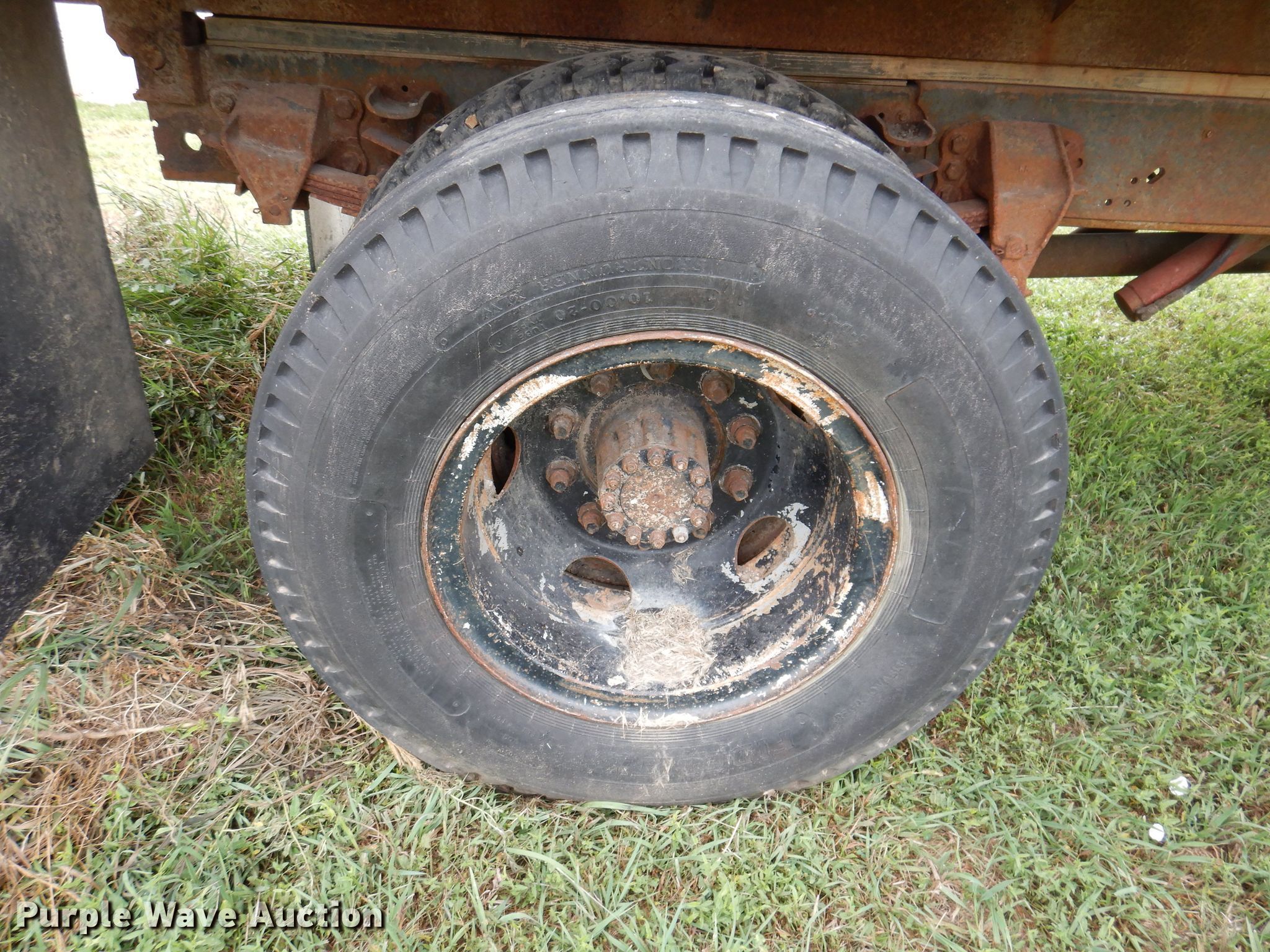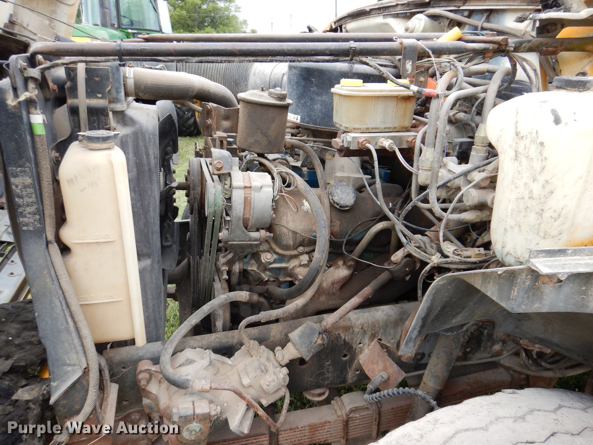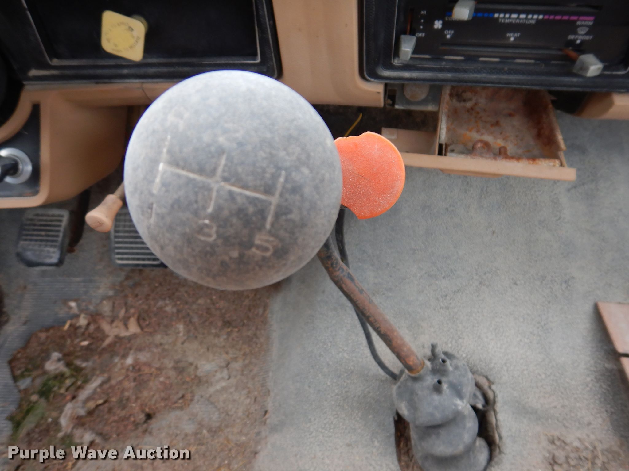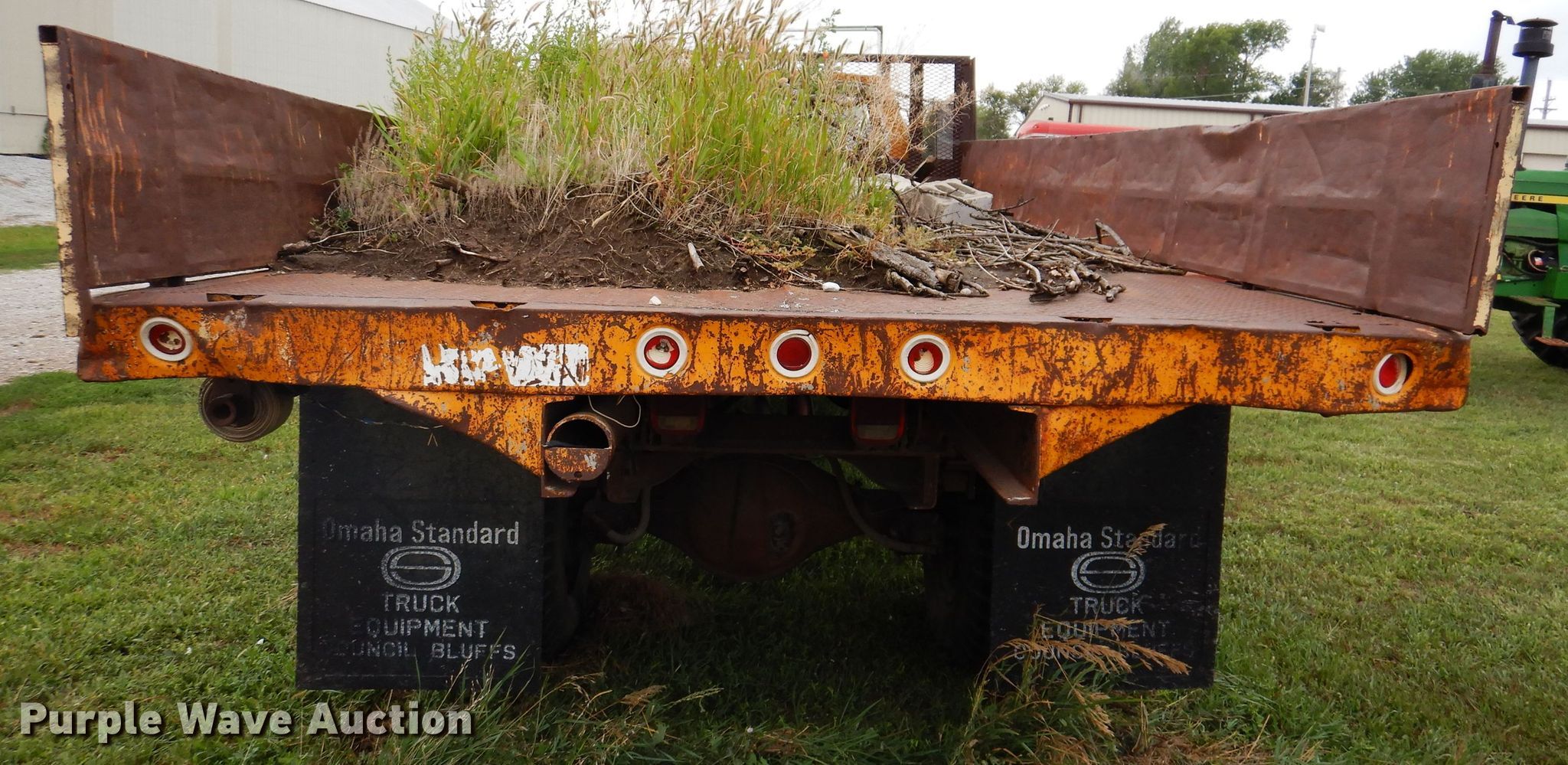 1985 Ford F700 dump flatbed truck. 57,453 miles on odometer, Engine hours: 2,442. Engine Detroit Diesel, Displacement: 8.2L, Cylinders: 8, Fuel type: Diesel. Transmission Manual, Speed: 5, plus 2. Chassis Axles: Single, Suspension: Spring, Brakes: Hydraulic, PTO, GVWR: 23,100 lbs, Wheelbase: 189". Interior AC, Heat, Brake controller. Operational Dump bed 16' L x 96" W, Side height: 17", Bed type: Steel, Ram: Single. Tires Front: 10R20, Rear: 10-20. Notes No battery, Brake issues, seized, Non-operational window crank, Windshield chipped or cracked, Unknown operating condition. Nebraska title. 1FDNK74N3FVA66547. Village of Mead. 220 E 4th St. Mead, NE 68041