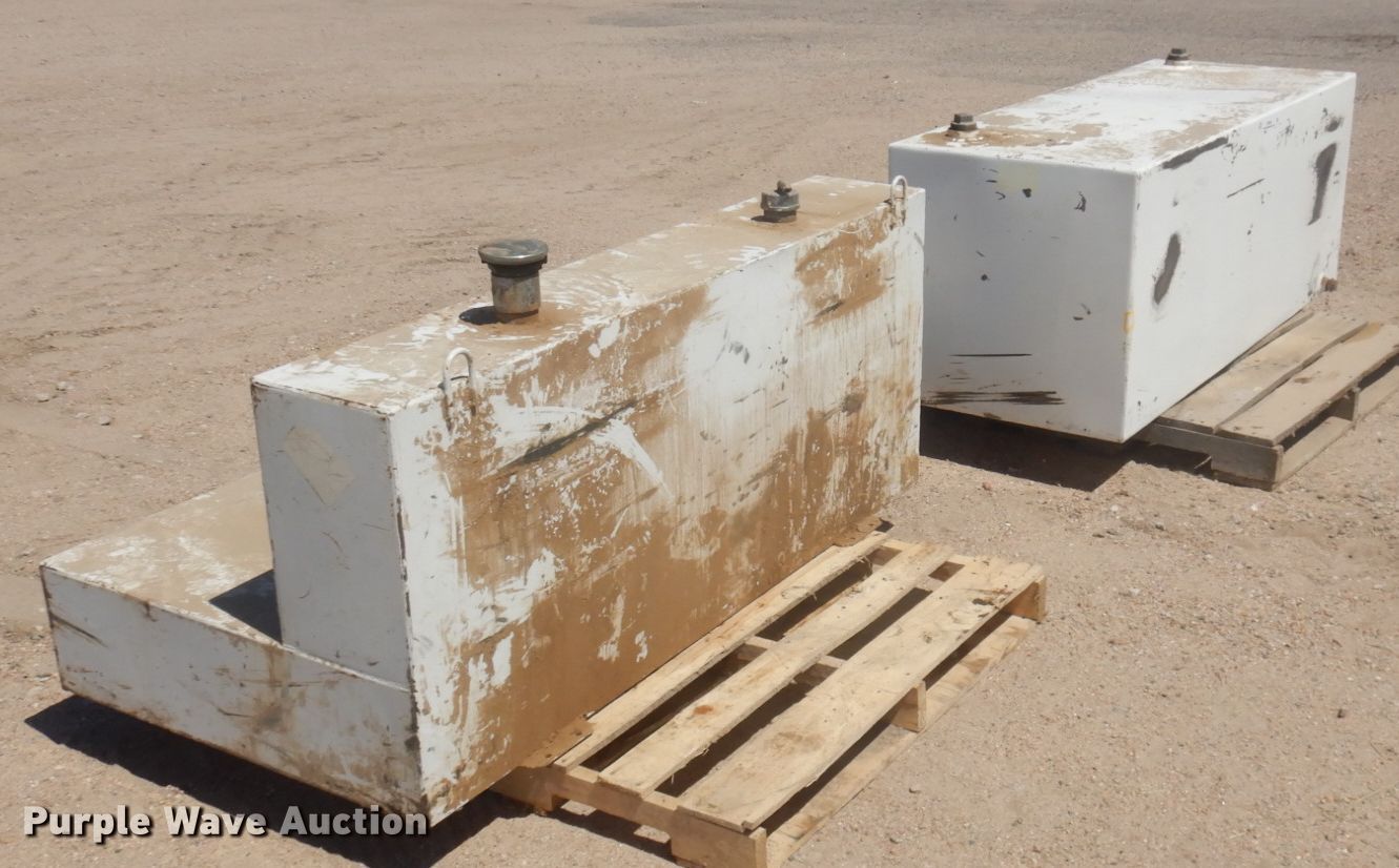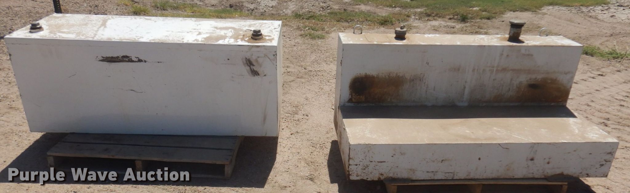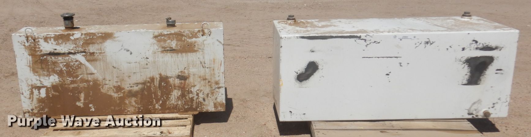 Purple Wave is selling a used Fuel and Lube in Kansas. This item is a (2) fuel tanks with the following: 2'L x 5'W x 2'H, Leaks, Model: 480000, 105 gallon capacity