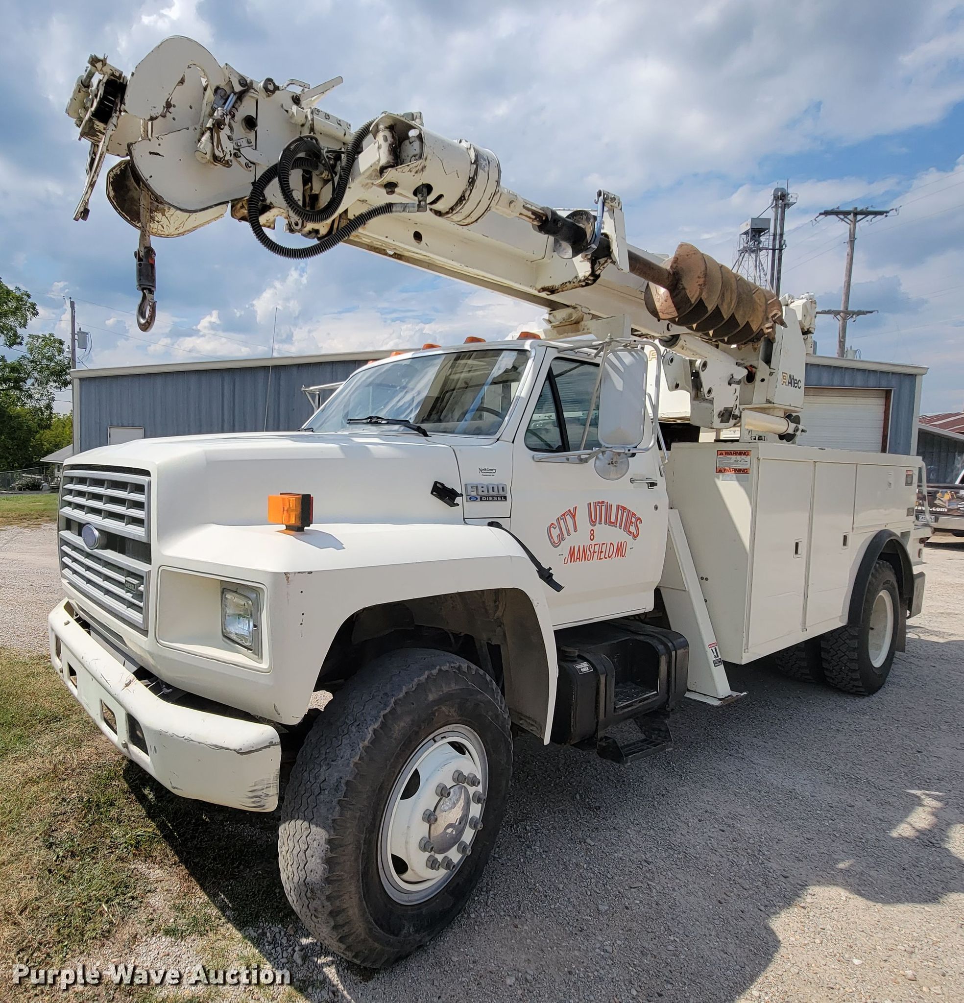 This 1993 Ford F800 digger derrick truck will sell to the highest bidder regardless of price.