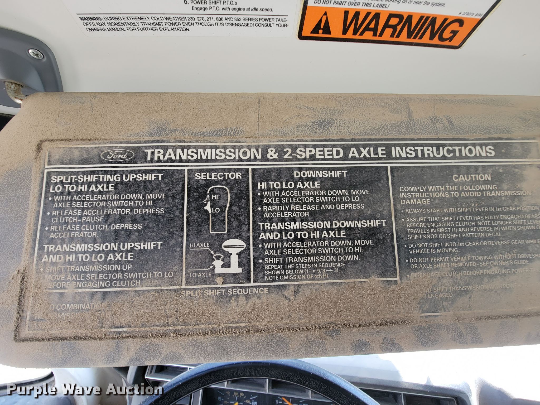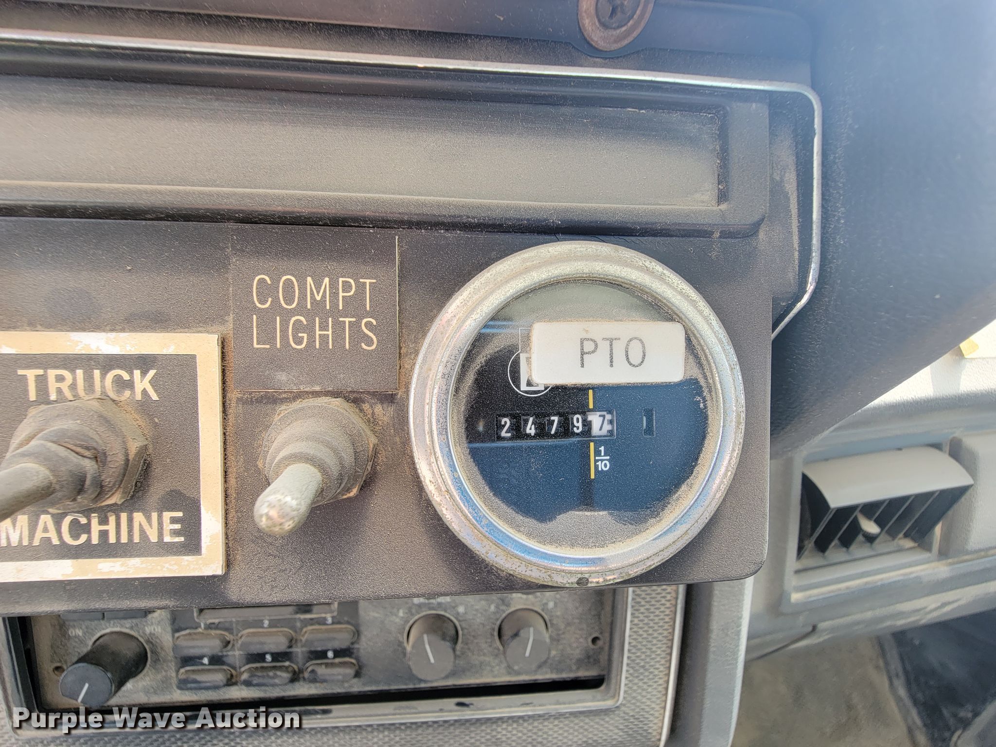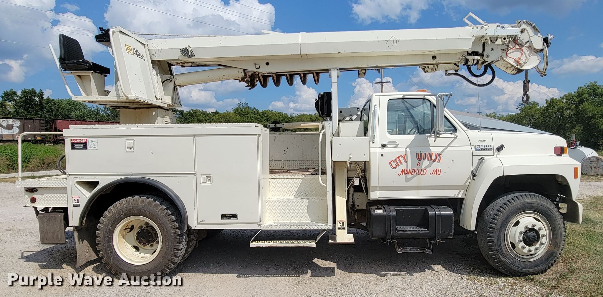 1993 Ford F800 digger derrick truck. 10,068 miles on odometer. Engine Displacement: 7.8L, Cylinders: 6, Fuel type: Diesel. Transmission Manual, Speed: 5, plus 2. Chassis Axles: Single, Suspension: Spring, Brakes: Hydraulic, PTO, GVWR: 33,000 lbs, Wheelbase: 178". Interior Heat. Operational Bed Altec, Serial: 37-63546, 12' 2" L x 93' W, Boom Altec D845-TR, Serial: 1292BE0234, Boom length: 15', Maximum lift capacity: 14,000 lbs, Maximum lift height: 44', Boom controls Ground, Platform/ basket, Material handler, Pole guide, Auger Diameter: 18".. Tires Size: 10.00-20. Notes Transmission issues, Non-operational high gears. Missouri title. 1FDXK84A8PVA00136. City of Mansfield. 308 E South st. Mansfield, MO 65704