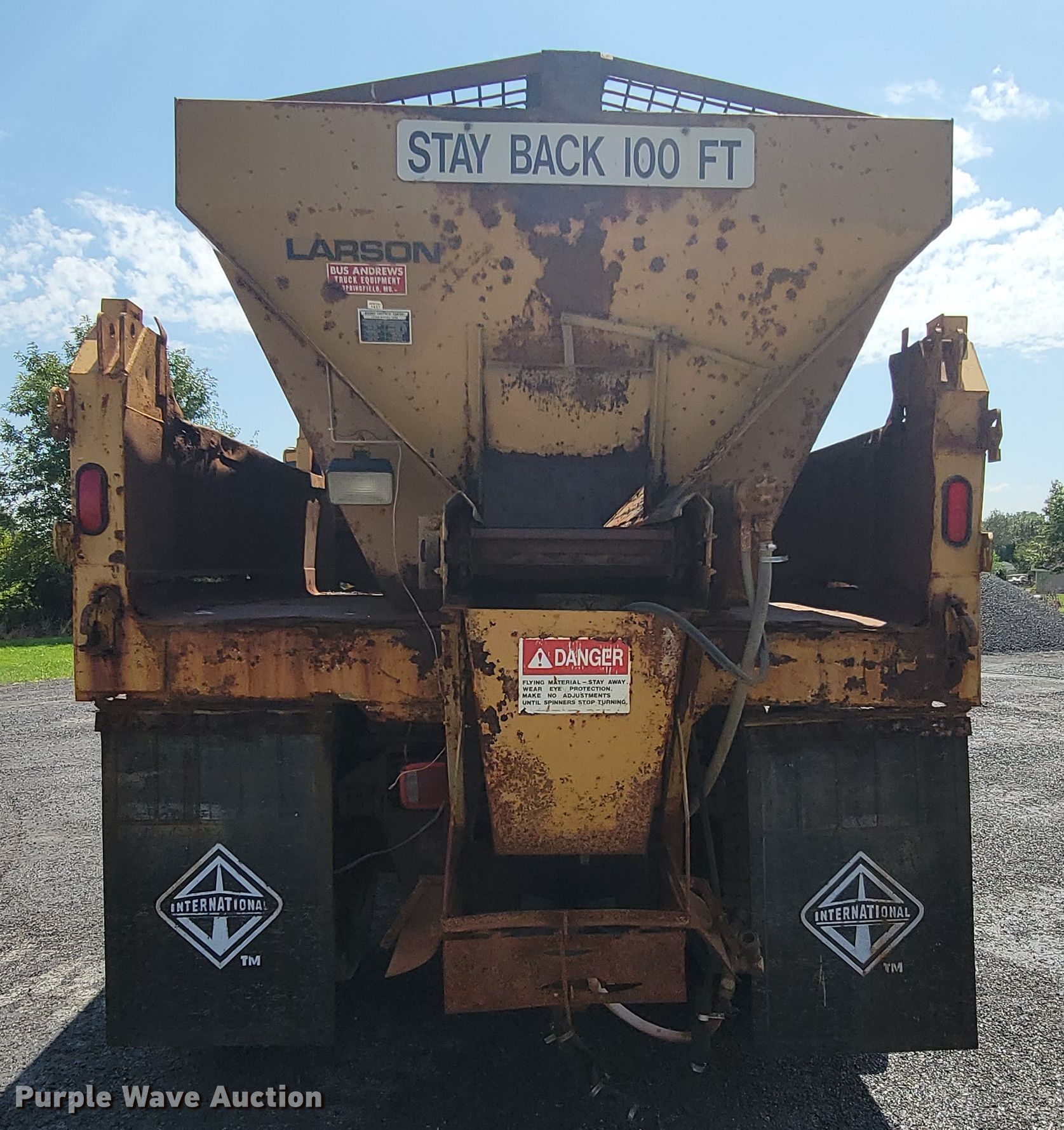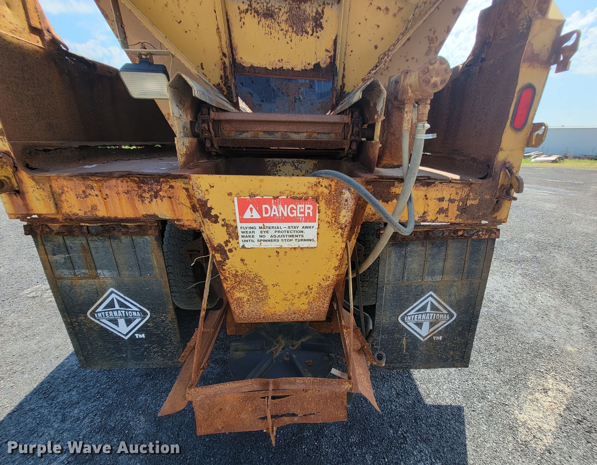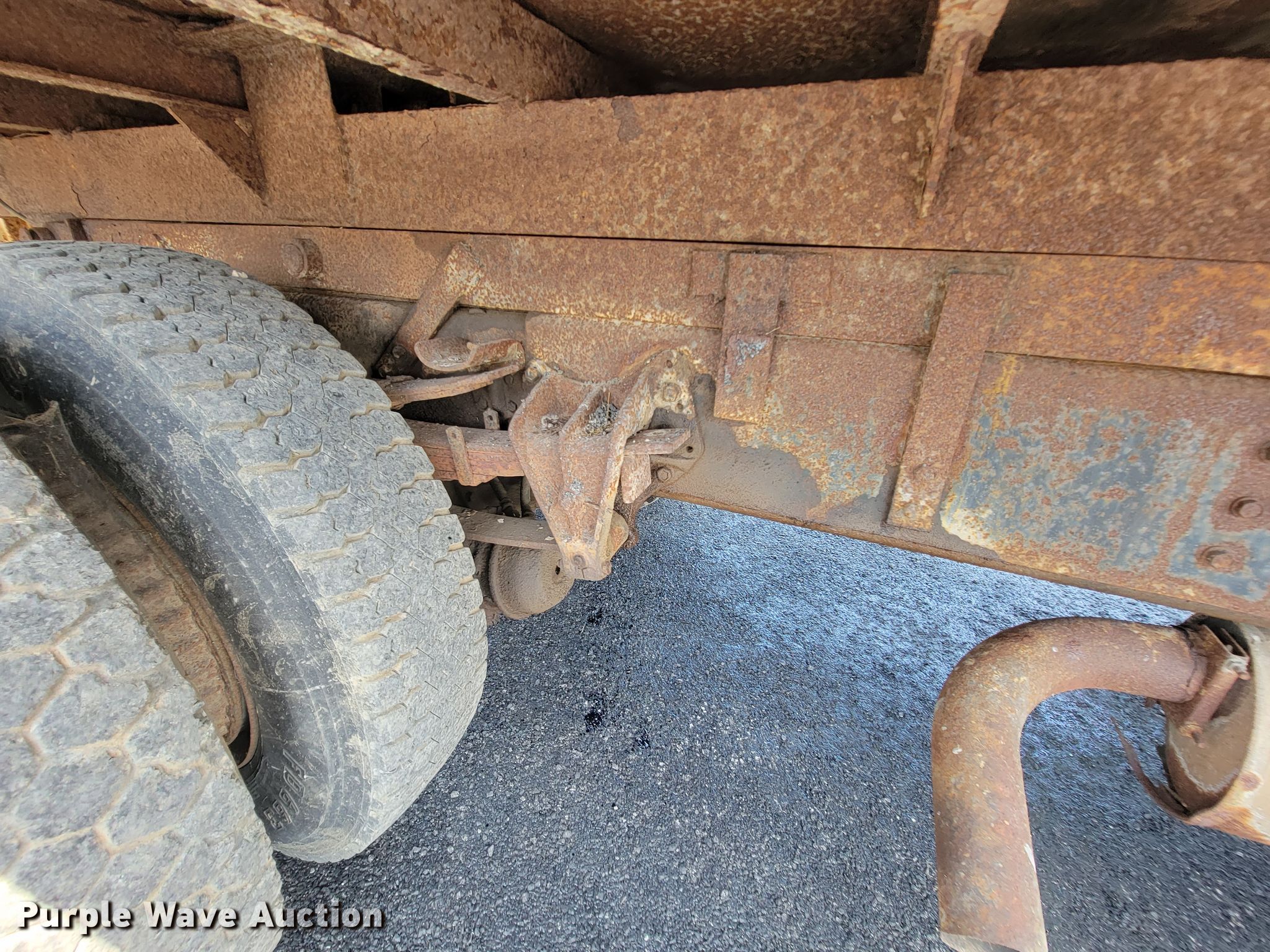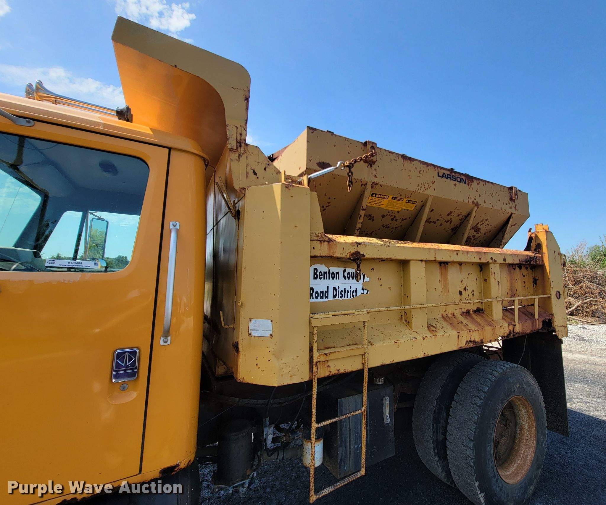 1995 International 4700 dump truck. 113,605 miles on odometer. Engine International DT466, Displacement: 7.6L, Cylinders: 6, Fuel type: Diesel. Transmission Spicer, Manual, Speed: 5, plus 2. Chassis Axles: Single, Suspension: Spring, Brakes: Air, Front mount PTO, GVWR: 29,000 lbs, Wheelbase: 152". Interior Heat. Operational Dump bed Henderson HDSA10X24, 10' L x 8' W, Side board height: 28", Bed type: Aluminum, Ram: Single , End gate: Manual, Spreader Larson. Tires Size: 11R22.5. Missouri title. Title distribution may be delayed up to 14 days from verification of funds. 1HTSCAANXSH641423. Benton County. 30503 State Hwy Mm. Warsaw, MO 65355
