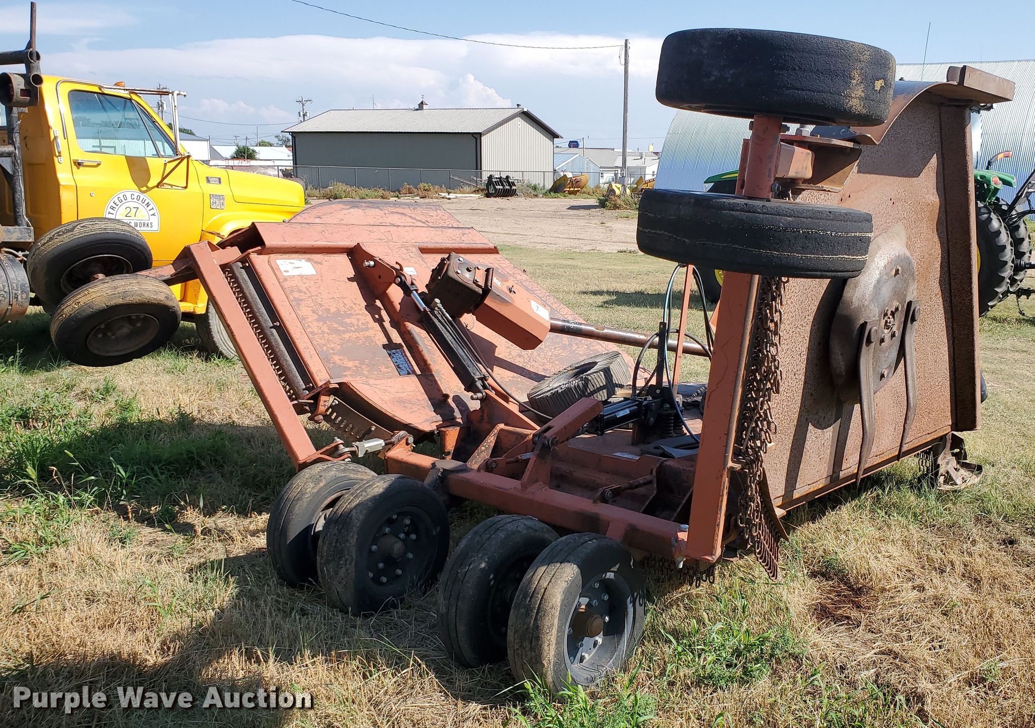 2005 Rhino FM15 batwing rotary mower. Serial: 18028. Operational Width: 15', Hydraulic lift, Hydraulic fold, PTO: 1000. Tires Solid. Wakeeney, KS 67748