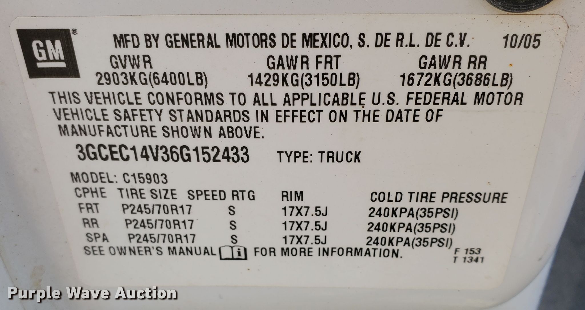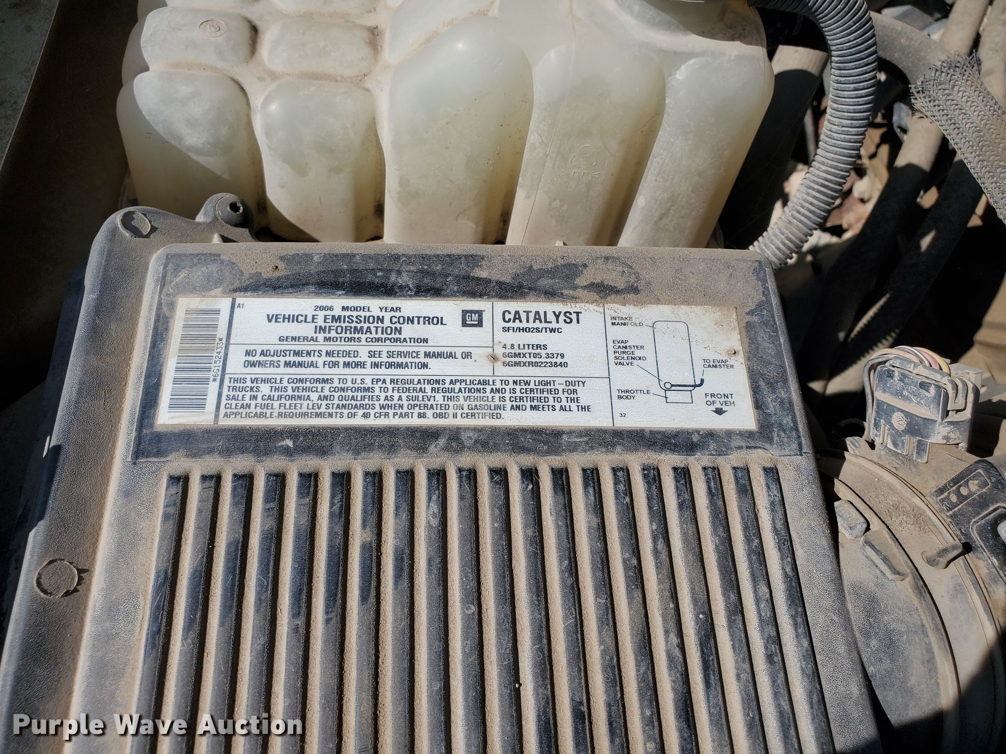 2006 Chevrolet Silverado 1500 pickup truck. 102,373 miles on odometer. Engine Displacement: 4.8L V8 OHV 16V, Cylinders: 8, Fuel type: Gas. Transmission Automatic. Interior AC, Heat. Tires Size: 245/75R17. Notes Auxiliary fuel tank, Dash warning indicator: Air bag. Kansas title. 3GCEC14V36G152433. Wakeeney, KS 67748
