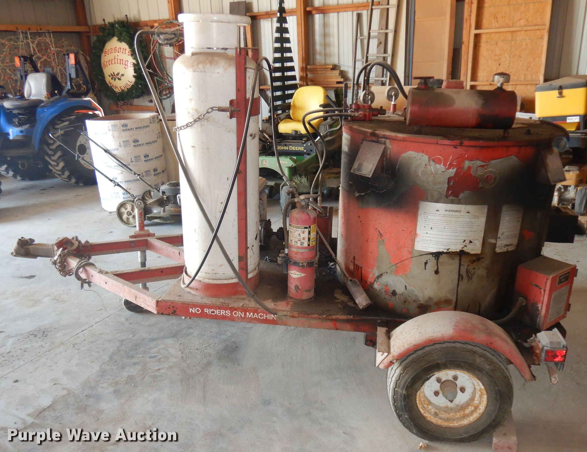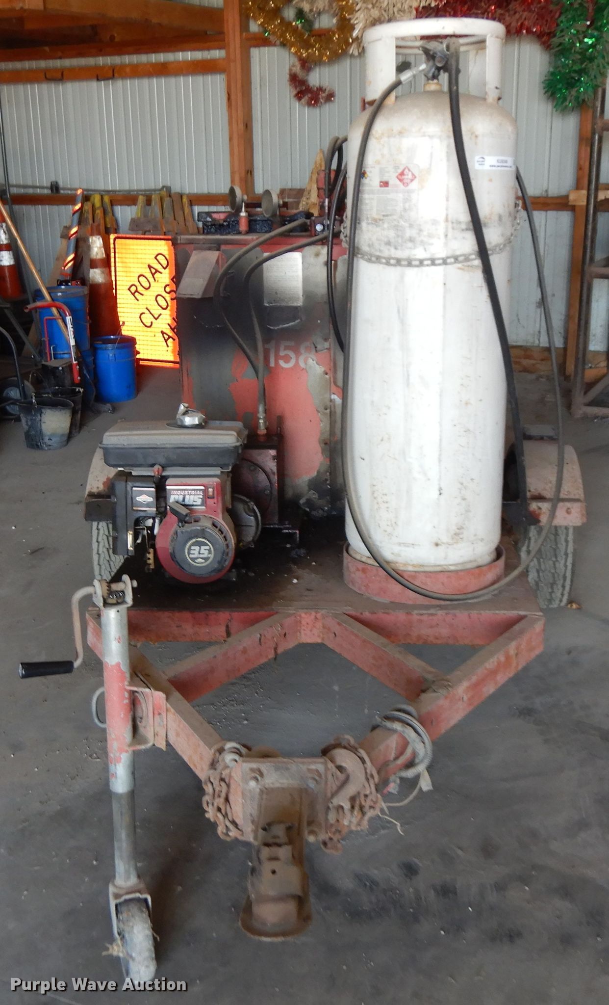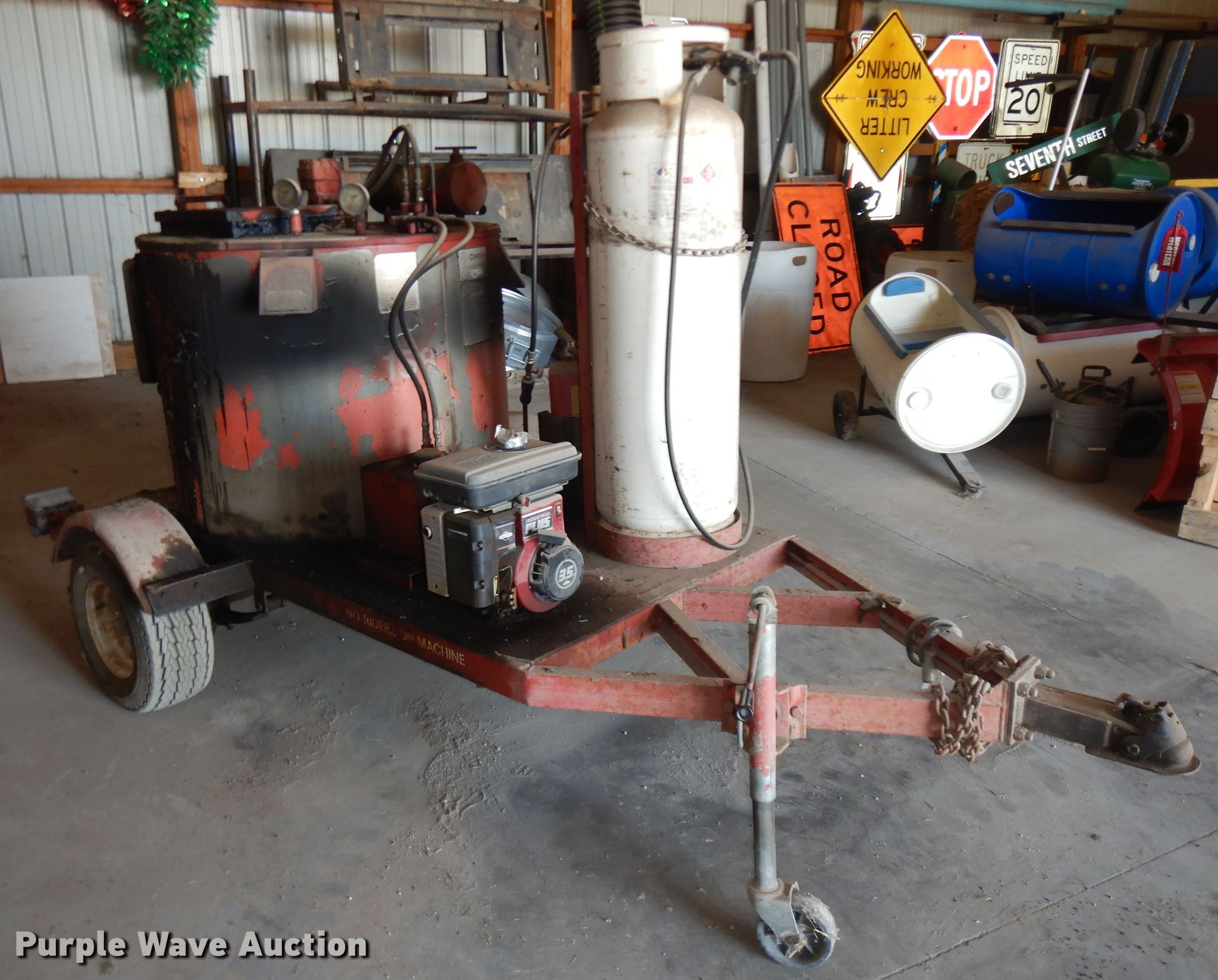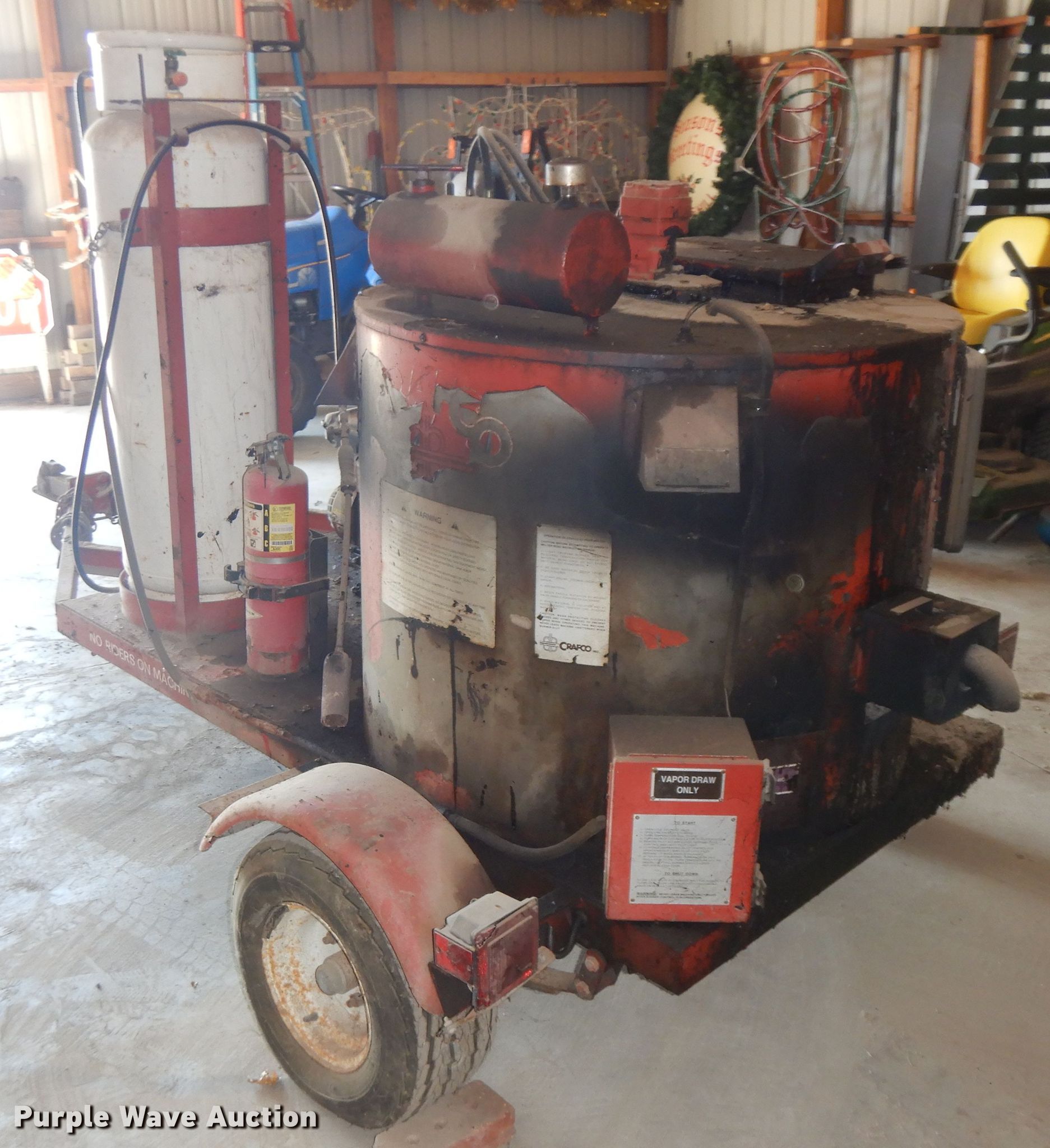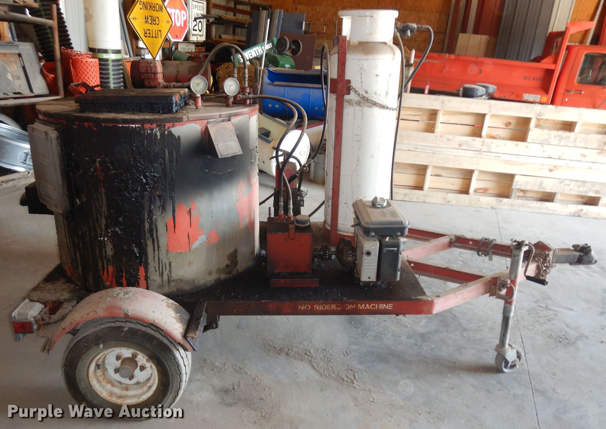 Crafco EZ Pour melter / applicator. Engine. Briggs & Stratton, Fuel type: Gas. Operational Capacity: 50 gallons, Propane fired burner. Trailer 9'6"L x 62"W, Ball hitch, Suspension: Spring. Tires Size: 20.5x8.0-10. This is worksite support equipment and will not come with a title. Transfer of ownership documentation will be a bill of sale. City of Maple Hill. Maple Hill, KS 66507