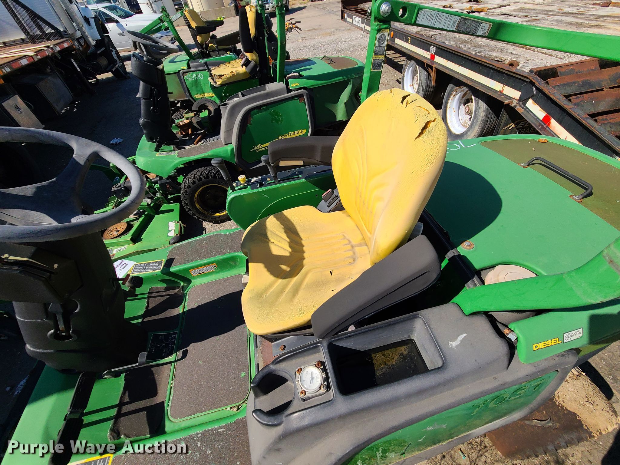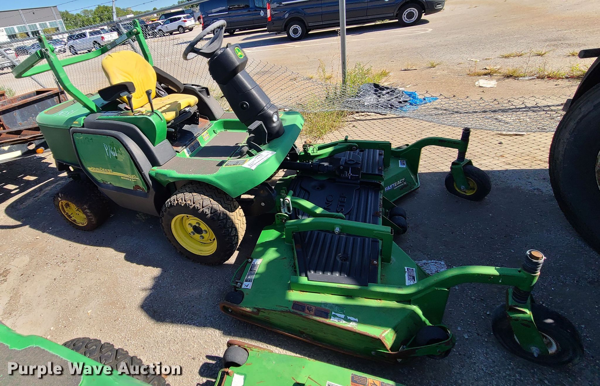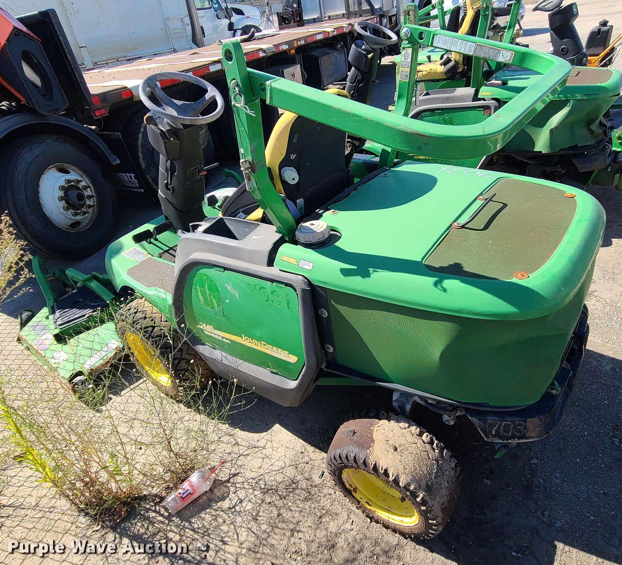 Purple Wave is selling a used Commercial Turf Mower in Missouri. This item is a John Deere 1445 lawn mower with the following: Unknown hours on meter, Cutting width: 72", Unit #: 7031