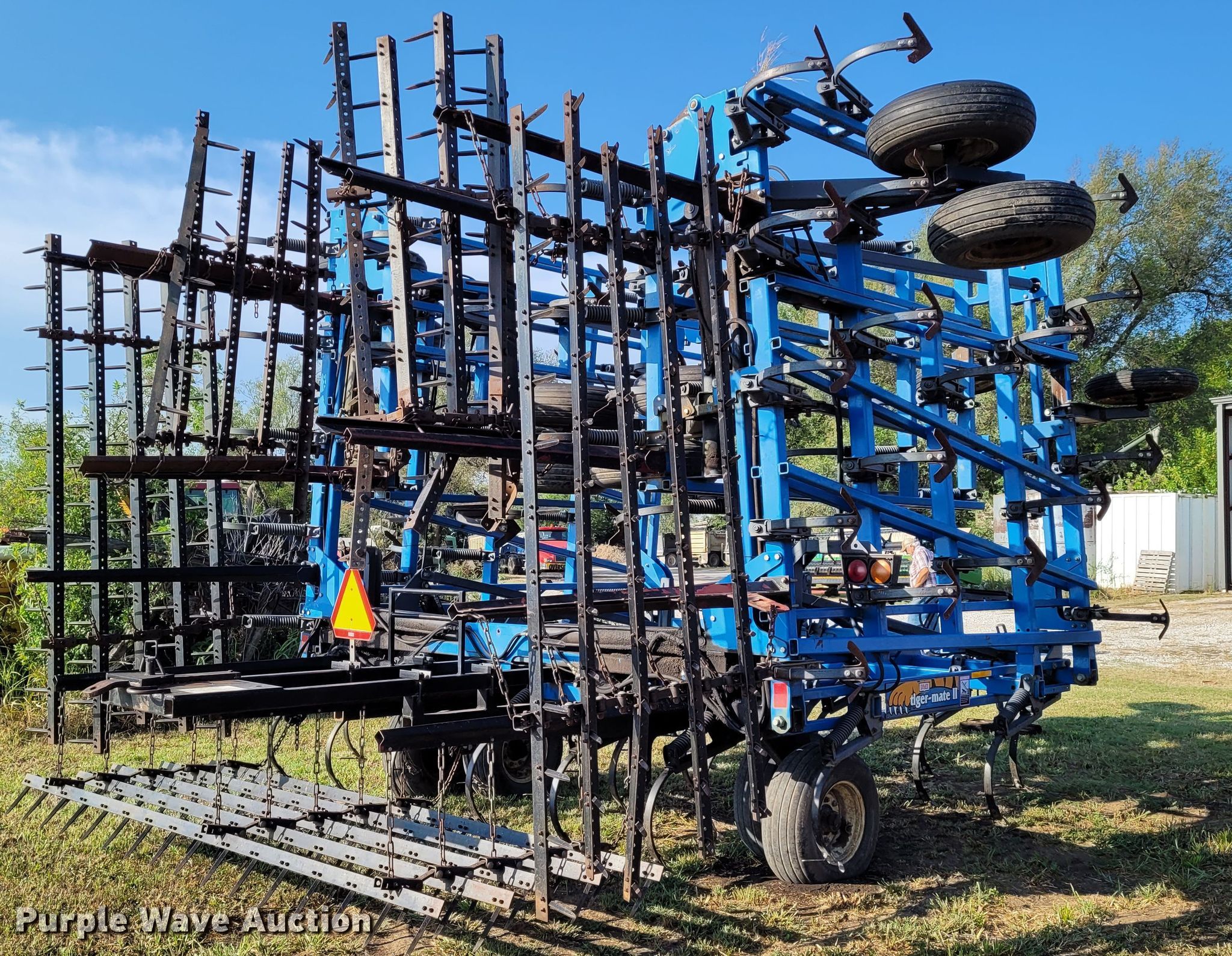 DMI Tigermate II field cultivator. Overall width: 44'. Operational Operation Hydraulic lift, Hydraulic fold, Leveler: Hydraulic, Walking tandem axle, Attachments Spike tooth harrow Harrow bars: 5.. Tires Tire size: 11L-15. Lawrence Family Farms Retirement. Winfield, KS 67156