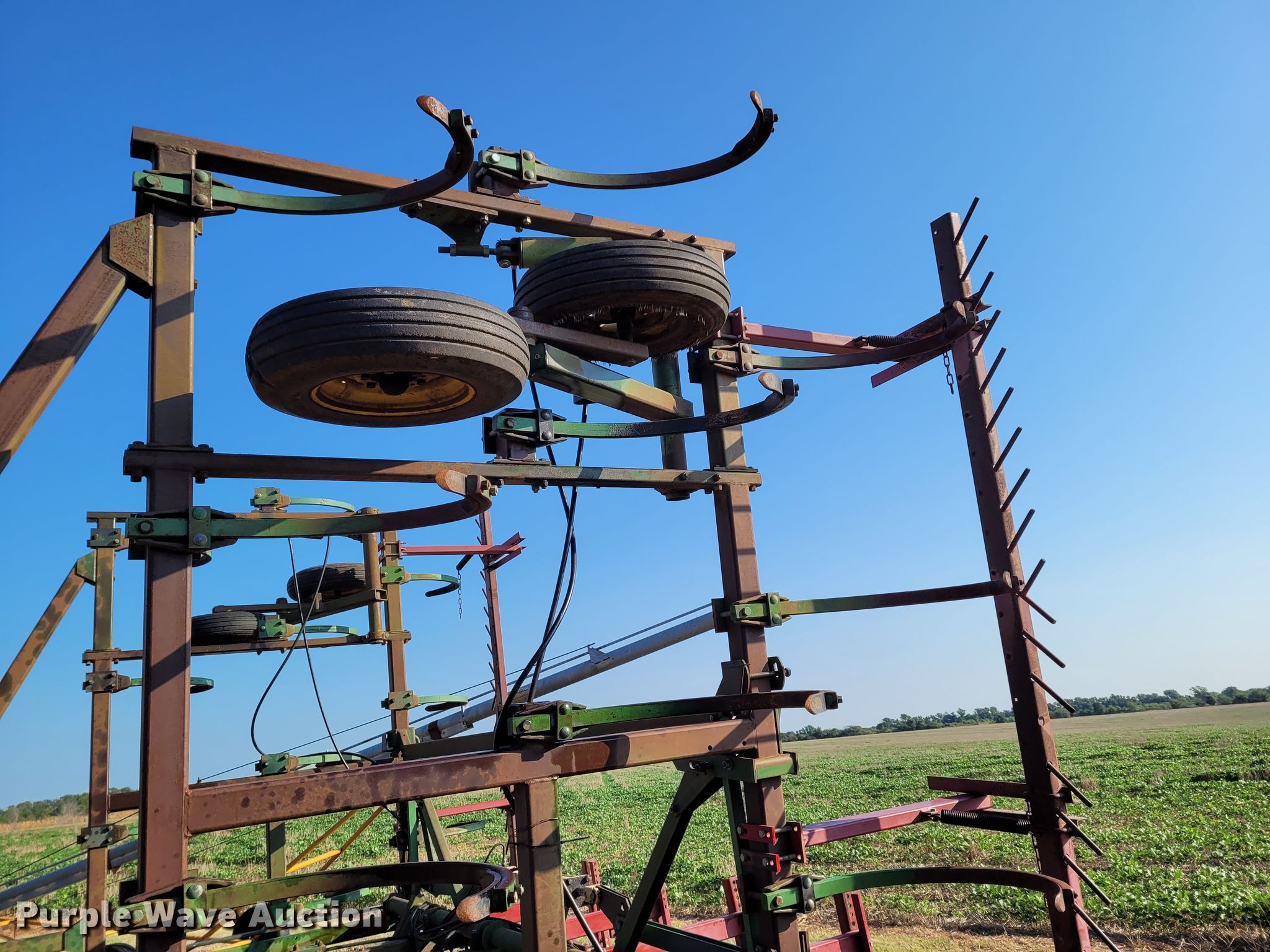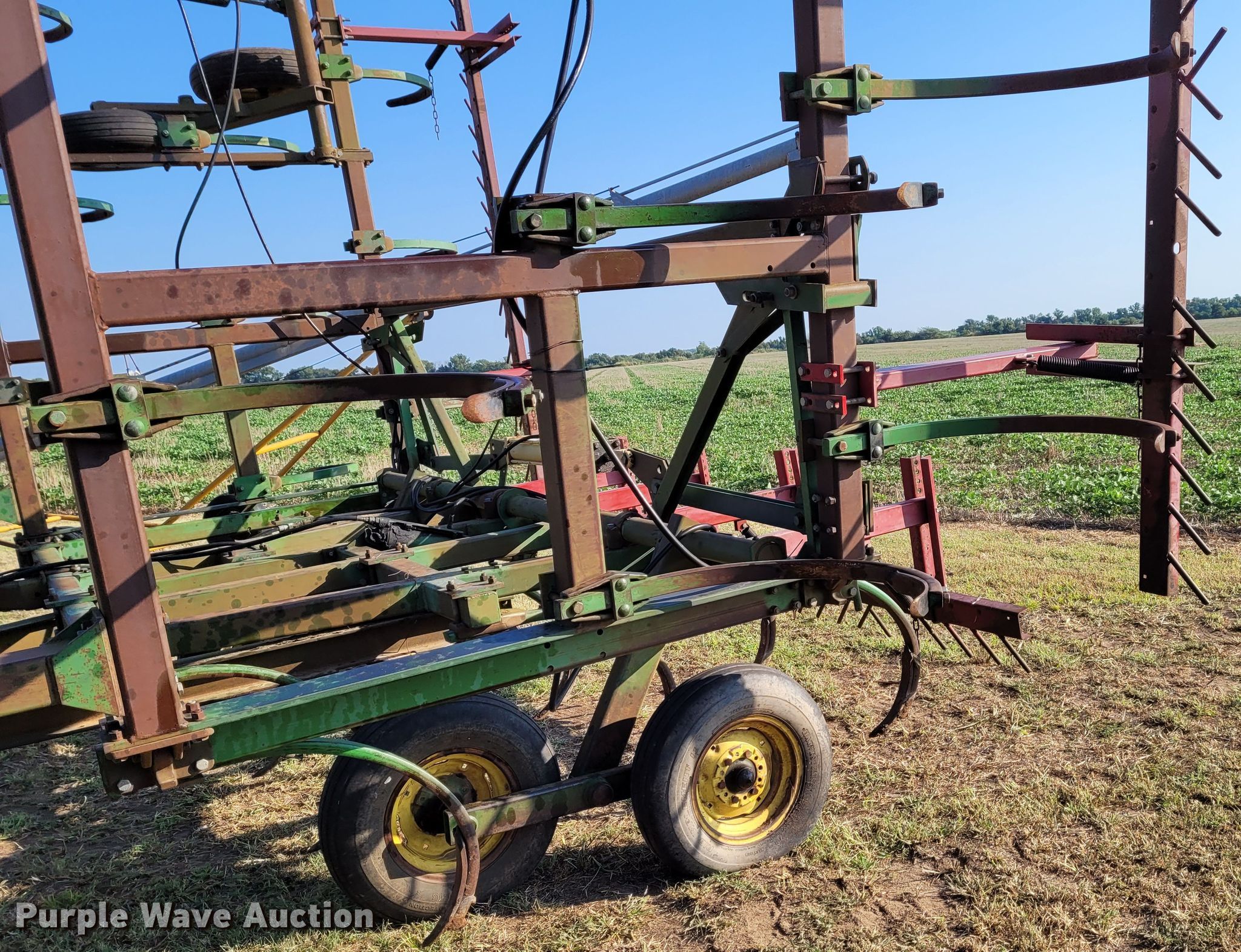 John Deere 1610 chisel. Overall width: 32'. Operational Operation Hydraulic lift, Hydraulic fold, Attachments Spike tooth harrow Harrow bars: 1.. Tires Tire size: 7.60-15. Lawrence Family Farms Retirement. Winfield, KS 67156