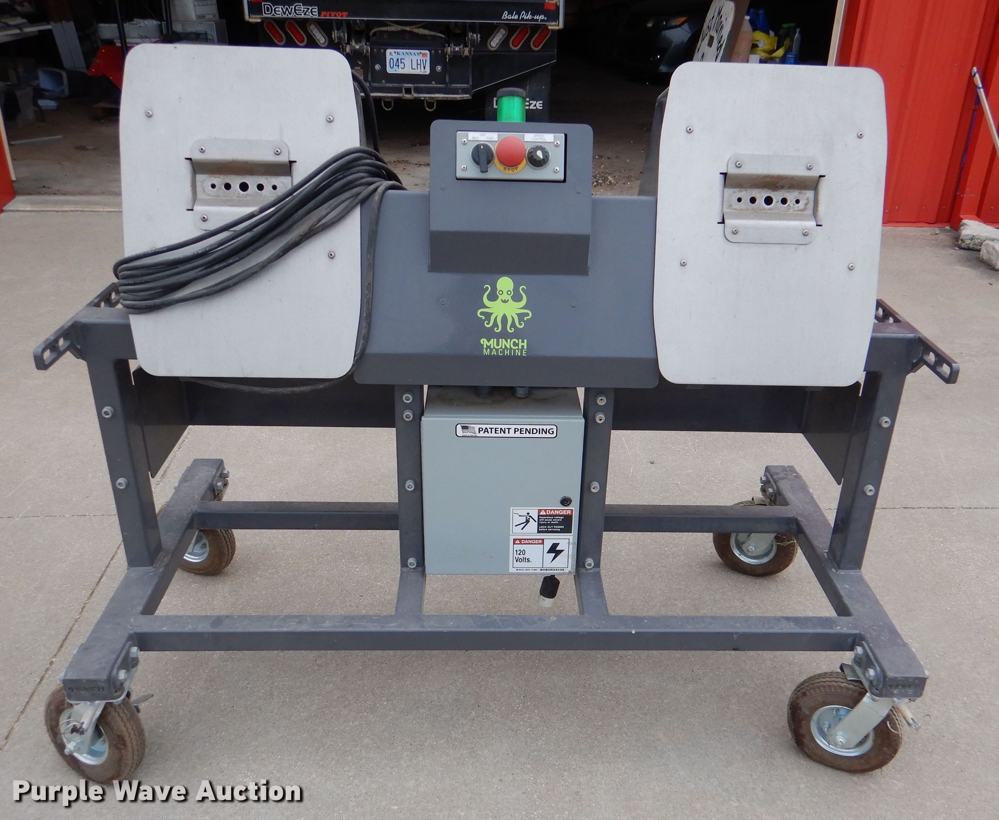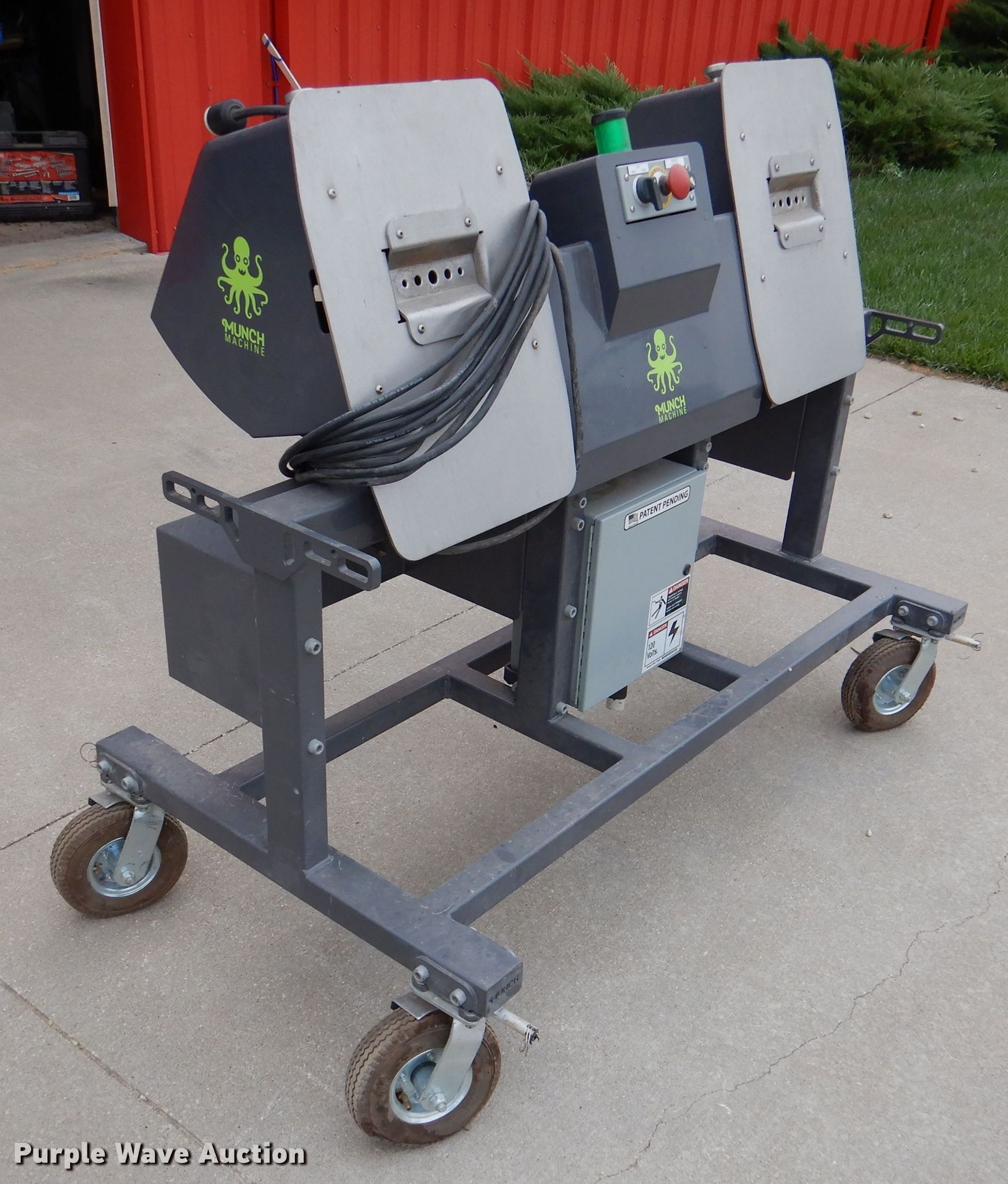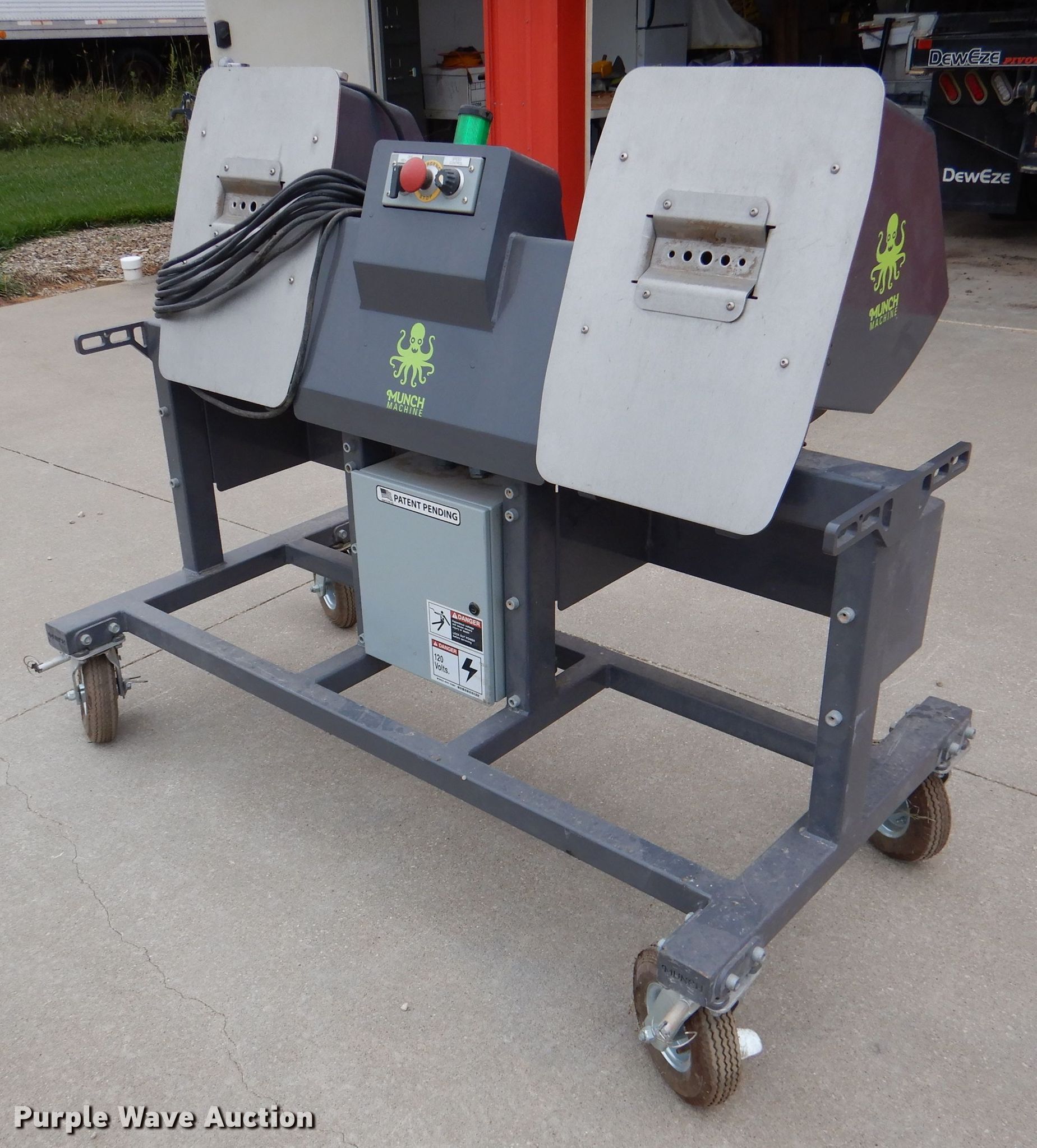 Purple Wave is selling a used Specialty Crop Harvester in Kansas. This item is a Munch Double Bucker hemp stripper with the following: Lenza electric motor, 115 Volt, Dual bucking station, Wet and dry capabilities, Forward/Reverse roller control, Variable speed