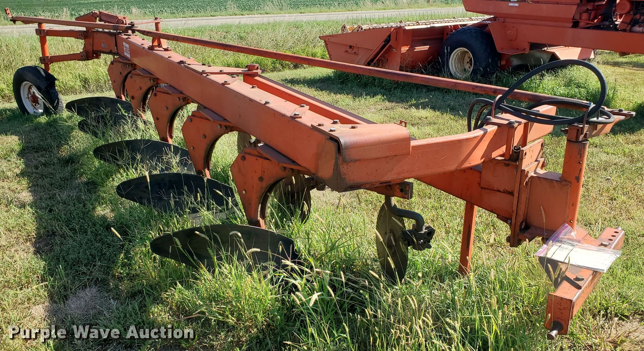 Purple Wave is selling a used Plow in Kansas. This item is a 1975 Case five bottom plow with the following: Spacing: 16", Hydraulic lift, Hitch: Three point