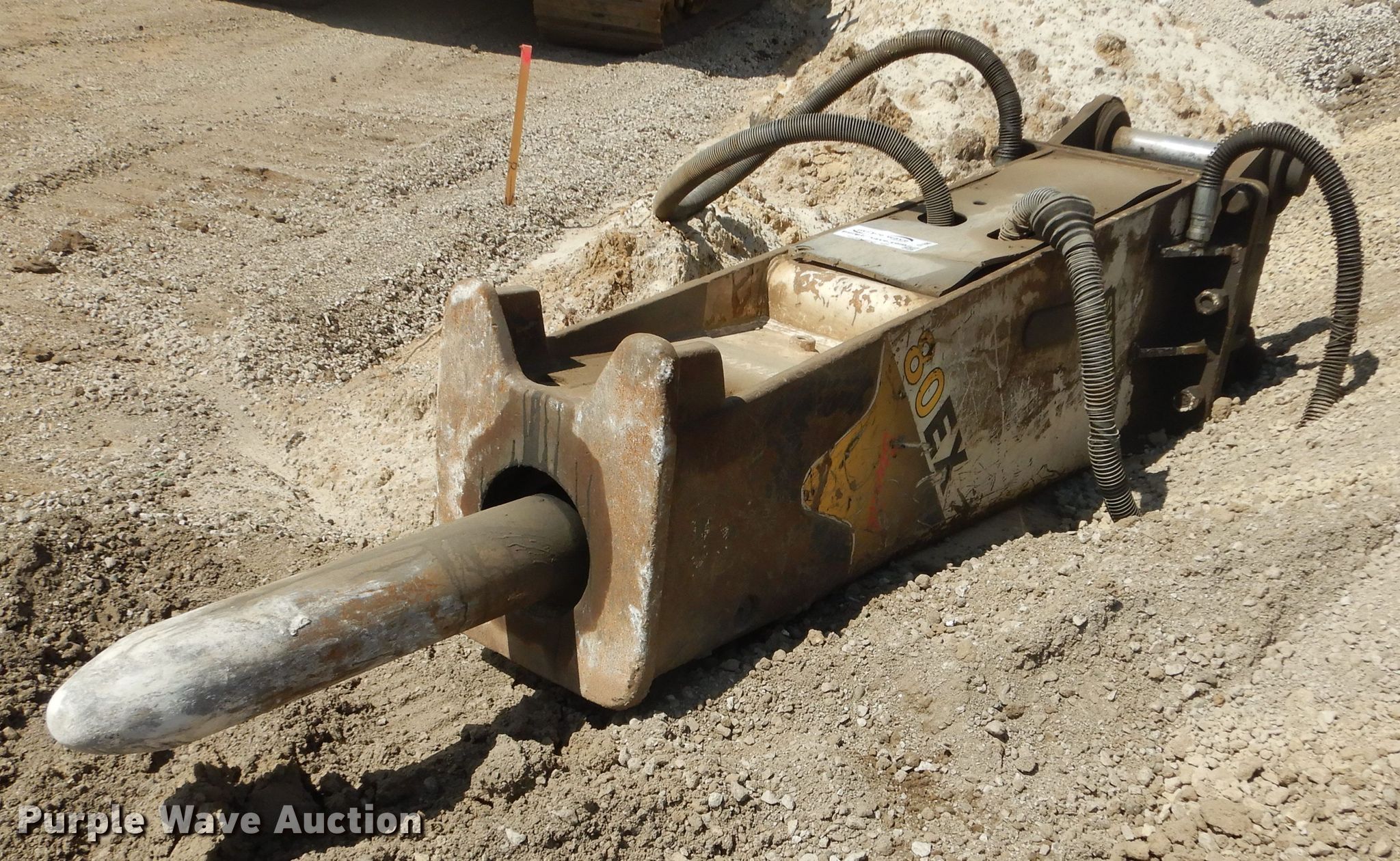 Purple Wave is selling a used Breaker or Hammer in Minnesota. This item is a Stanley 80EX breaker with the following: Bit: 6" diameter, Fits Caterpillar 340 or 336 excavator
