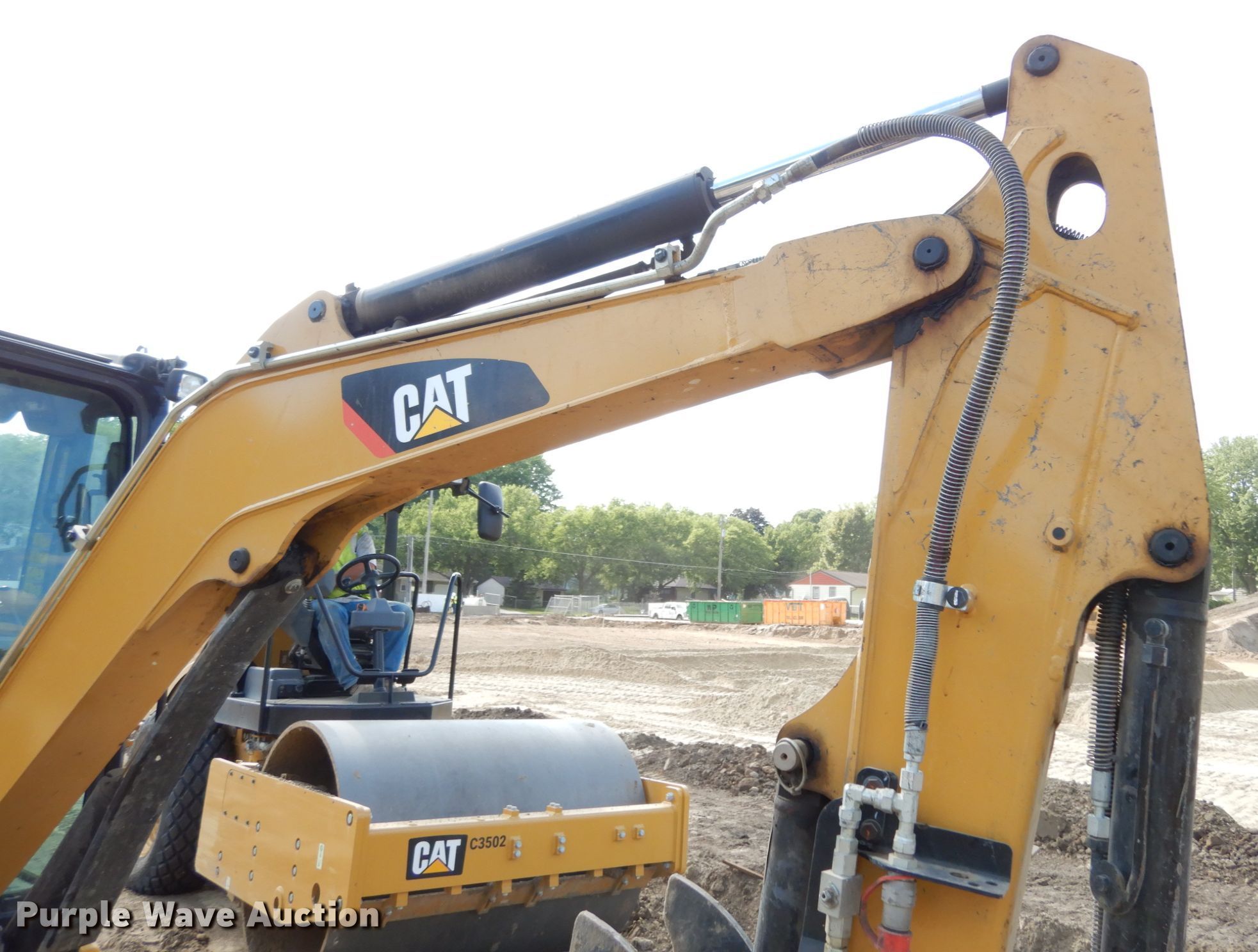 2017 Caterpillar 303.5 E2 mini excavator. 1,838 hours on meter, Hours may vary, unit still in use, Serial: 0JWY01947, Unit #: 1983. Engine Caterpillar C1.7, Cylinders: 3, Fuel type: Diesel. Transmission Hydrostatic. Operators station Enclosed cab, AC, Heat. Operational Auxiliary hydraulics, Backfill blade Width: 70", Boom Swing, Stick Stick length: 5' 3", Thumb: Hydraulic, Bucket Width: 18", Cutting edge: Bolt on, Teeth: 4. Tracks Width: 12", Rubber. Fraser Construction - Open inspection Sept. 27, 28. 3725 Enterprise Dr SW. Rochester, MN 55902