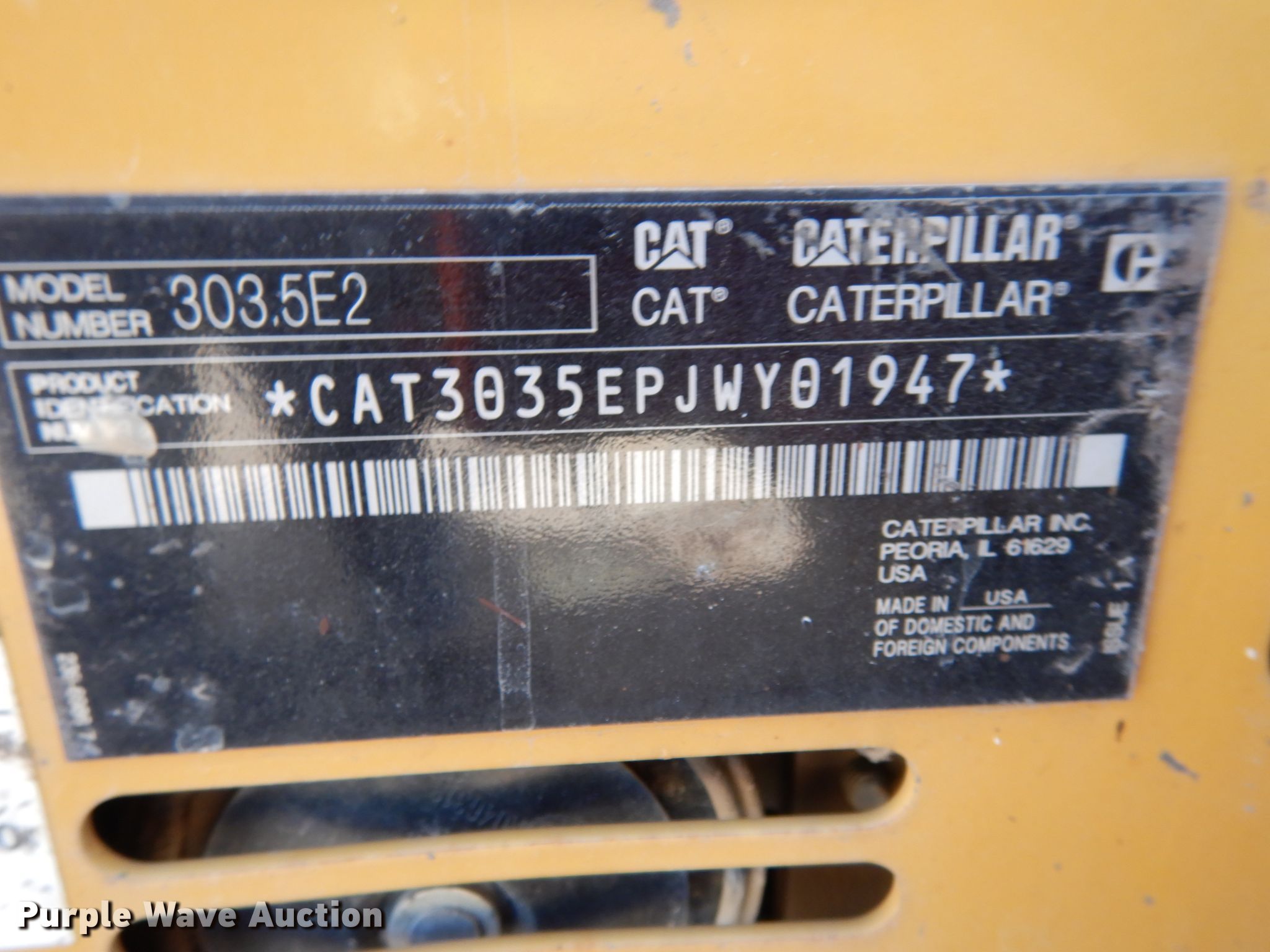 Purple Wave is selling a used Mini Excavator in Minnesota. This item is a 2017 Caterpillar 303.5 E2 mini excavator with the following: 1,838 hours on meter, Hours may vary, unit still in use, Serial: 0JWY01947, Unit #: 1983